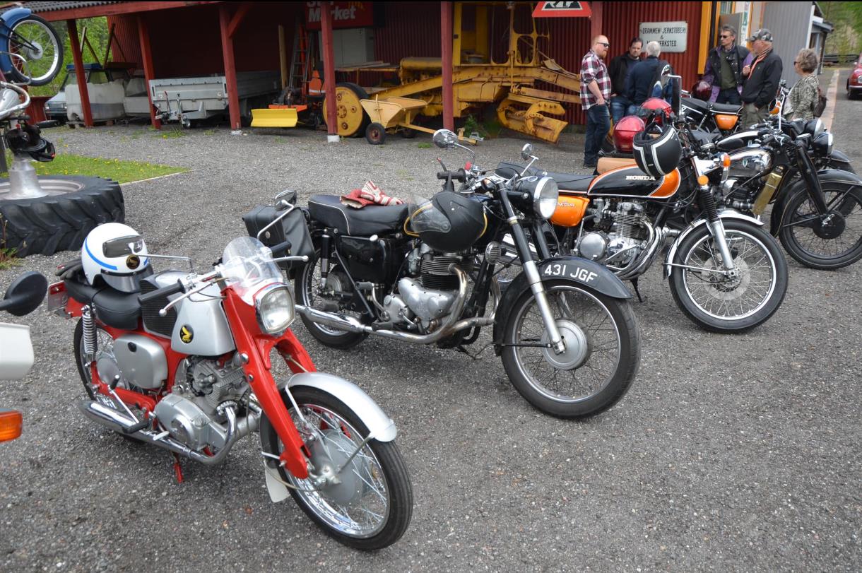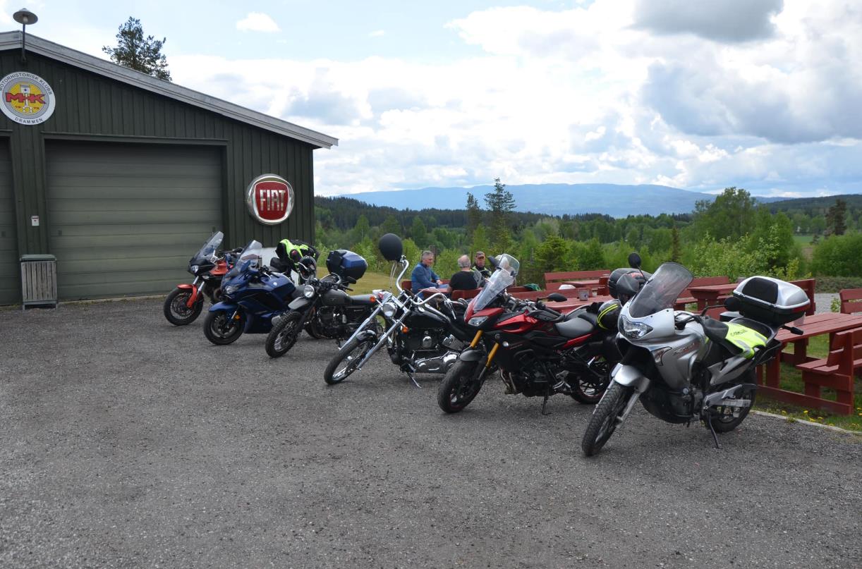 Rundt 30 sykler i ulik alder hadde møtt frem på Norsk Motorhstorisl senter på Burud. Blant disse f.eks to stk Harley Davidson som var over 100 år gamle. Begge kom for egen maskin til treffet. Imponberende å se for oss som liker ting som durer.