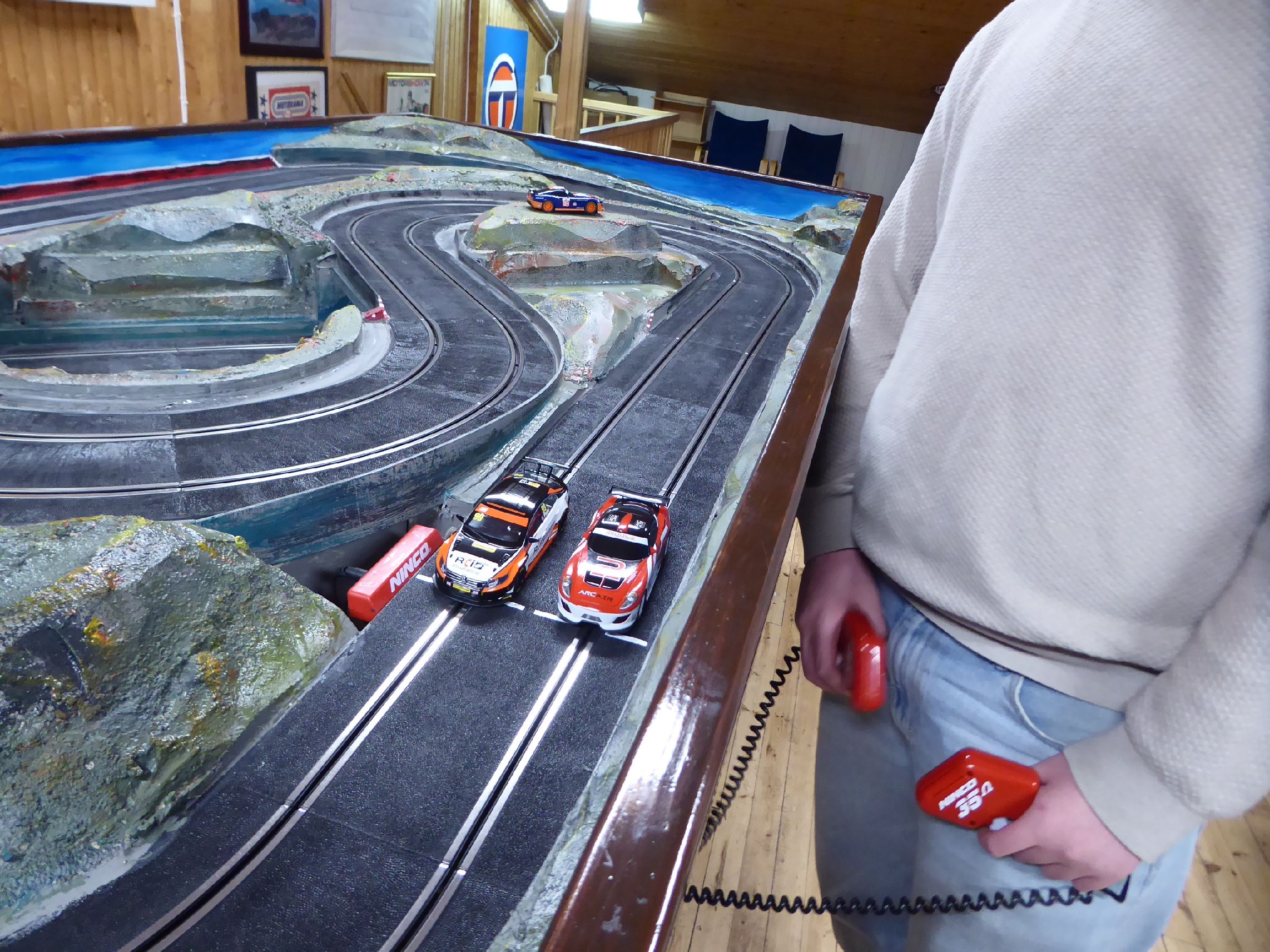 Kappkjøring på minirace-banen blei det likevel, og mange fikk prøvd seg på banen, og skravla gikk mellom slagene rundt langbordet.