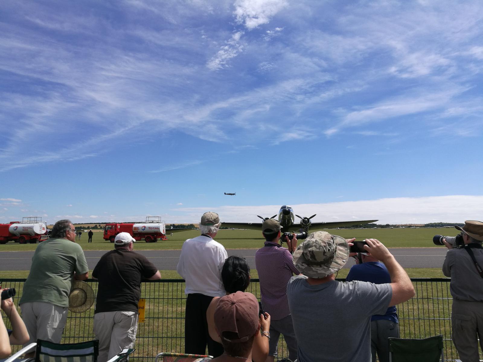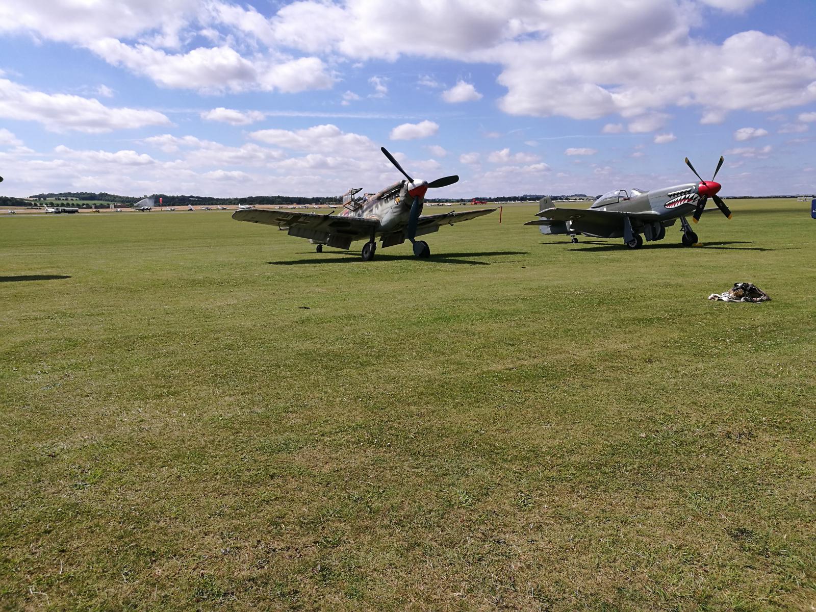 Vil du oppleve ekte flynostalgi, så ta en tur til Duxford Airshow i næheten av Cambridge. Ikke mindre enn 9 Spitfires på vingene samtidig, sammen med bl.a. Mustanger, Messerschmidt, Thunderbolt og B17 Flygende Festning. Masser av godlyd og deilig eksos. En Mustang gikk i åkeren, men det gikk bra med flygeren.