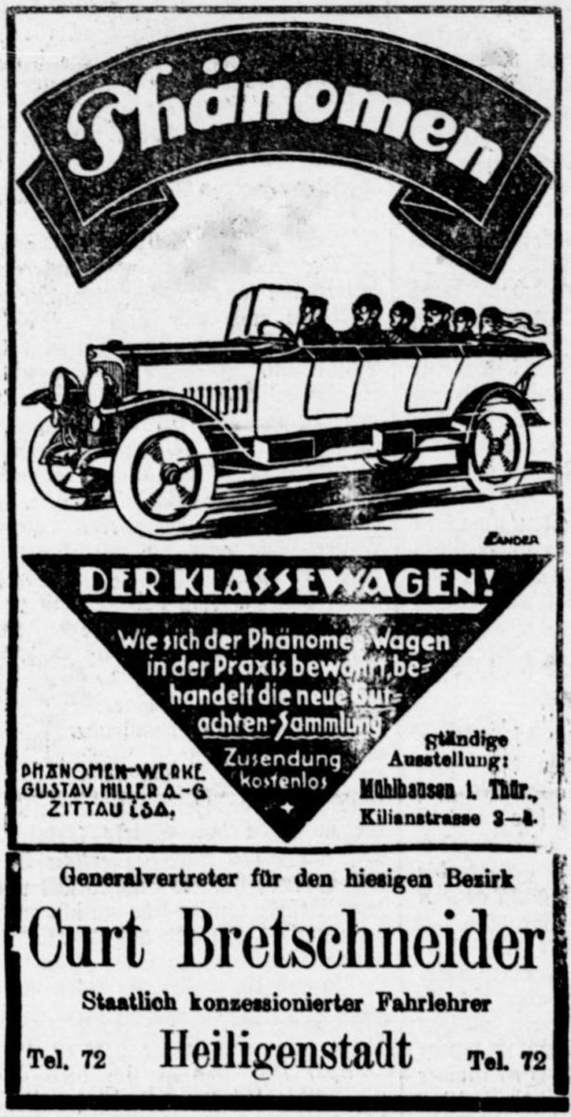 Ved en ren tilfeldighet dukket det i registeret for 1925 opp ei drosje i Tønsberg med reg-nr. G-206. Tilhørende hotelleier Baglo, registrert som Gustav Hiller. Mon tro om det var en tilsvarende bil. Så vidt vites er det pr i dag kun registrert en Phänomen i Norge. En lett motorsykkel fra 1938, men det skal finnes både sykkel, lastebil, sykebil og aggregat.