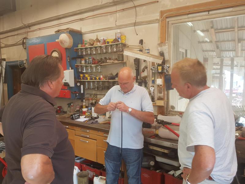 En lang og hyggelig dag fikk en lykkelig slutt. Får man plunder med noe gammalt ræl når man er på tur så kjenner man alltid noen som kjenner noen. Så får man nye bekjentskaper, lærer noe nytt og får snudd noe negativt til noe positivt. Bekjentskaper og gode venner er gull verdt. Tusen takk til alle sammen. På bildet ser vi Magne Skredderberget i arbeid med Knut Horgen og Hans Gjengedal som ivrige tilskuere.