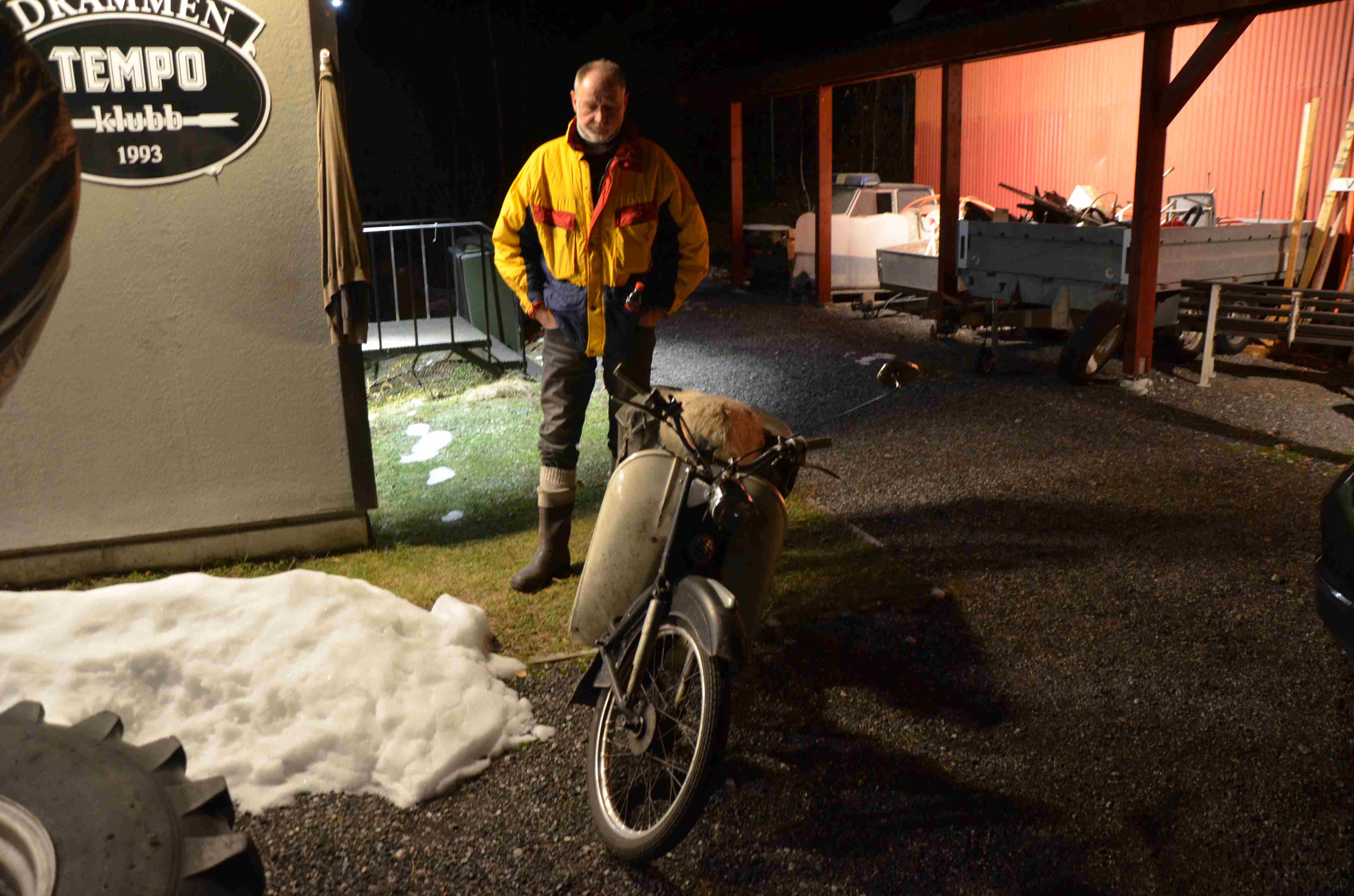 Senteret benyttes også av flere merkeklubber. Denne kvelden var det Tempo klubben som hade sitt møte. Man skulle kanskje tro at medlemmene i Tempoklubben kom på to hjul. Men i kveld var det kun en kar som var tøff nok til å komme på mopeden sin. En tregiret Tempo Corvette 290 fra 1962. Eieren som har hatt denne Tempoen i over 20 år er Bjørn Skretteberg fra Solbergelva. Han syntes at turen fra Solbergelva til Burud ikke var noe problem. Han fortalte meg om turer både til Trøndelag og Vestlandet på nettopp denne mopeden. En riktig mopedentusiast.