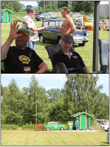 En liten hjulbeint grisefanger med fastmontert ekorn under nesa insisterte på at Mini-treffet i Solbergelva måtte besøkes etter avsluttet arbeid på Burud. Så gjort. På Buskeruds flateste plen fant vi en masse små biler og deres lykkelige eiere. Vi var litt sent ute så vi fikk ikke se alle, men ble av den harde kjerne fortalt at der hadde det vært mange.