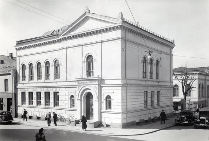 Vi får vel anta at bilene på bildet er borte. Og synd er det. Amerikaneren med rompa til i Amtmand Blomsgate, fra slutten av trettiårene er ikke lett å identifisere. De var jo noenlunde like de fleste merker, men det er vel ikke helt fjernt å tippe at det er en bil fra GM-konsernet. At bilen i Nedre Torggate er en Rockne er det ingen tvil om. En bil fra Studebaker markedsført under eget navn. Bilen var oppkalt etter Knut Rokne fra Voss. Han var for snart hundre år siden like vellykket fotballtrener som Ole Gunnar Solskjær er i dag. Men vi snakker om amerikansk fotball selvsagt. Ca 30.000 Rockne ble bygd fra 1931 til 1934. Lastebilen kan være en GMC. Men kanskje er det verre at bygningen er borte enn bilene. Drammens Folkebibliotek er en av bygningene i Drammen aldri skulle vært revet. For å bli erstattet av platt dusinvare. Utviklingen kan vi ikke stanse, men at både biler og bygninger var penere før er nok manges oppfatning.
