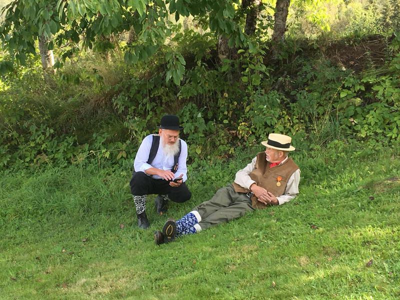 Hva passer da bedre enn et tilbakeblikk på sommeren. Helst skulle vi sett noen barmfagre og brunstige budeier som gjorde seg lekre i timoteien, men de er jo flotte disse to karene her også. Og ikke minst er er de verdige representanter for alle de fargerike folkene vi har i klubben vår, herrene Paulsen & Holm. Skal prøve å lure dem til et tilsvarende vinterbilde på samme sted og i samme antrekk.