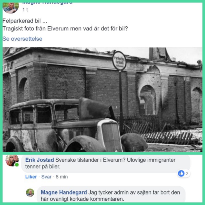Utbrent 1934 Strømmen-Dodge på Elverum i 1940 var jo ikke særlig hyggelige saker, men selv alvorlige ting kan tåle en spøk nesten åtti år senere. Med mindre man er svensk da. Svensken la ut et bilde og Erik Jostad. sønnen til en av MHKD's stiftere traff spikeren på huet med en ovanligt bra kommentar. Det likte ikke svensken. Haha. Humor på sitt aller aller beste synes redaktøren.