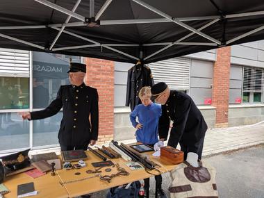 Det var Politiets dag i Drammen 31. august. Om hensikten med arrangementet var å rekruttere nye banditter vites ikke, men det var masse unger med potensiale der. Hyggelig er det uansett at vi blir forespurt om bruk av klubbens to politibiler. Folkevogna har vi jo i sin tid fått av kammeret i Drammen og Transiten er ikke ulik bilen som var i bruk på 1970-tallet. Politihistorikerne Torbjørn Pettersen og Jon Vegar Haugaasen tok seg av den historiske delen av arrangementet. Etter folkevrimmelen å dømme må det hele ha vært en suksess.