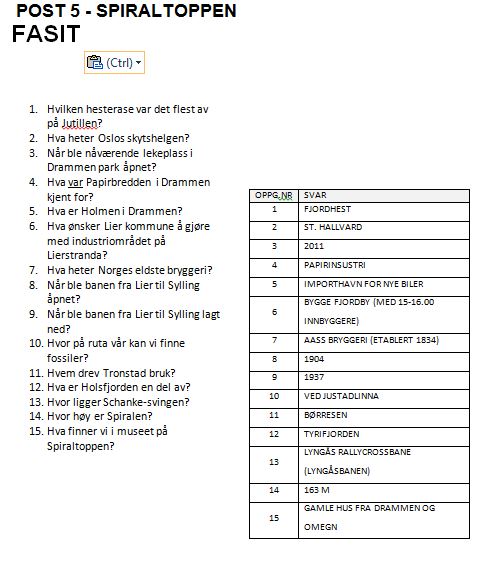 Årets Spiralløp gikk i hovedsak i Lier Kommune. Vi startet som vanlig fra Drammen Park, kjørte over Øvre Sund bru, ned til Holmenbrua og videre ut til post 1 på Biltilsynet i Jensvollveien. God plass, fin oppgave og ingen kø.