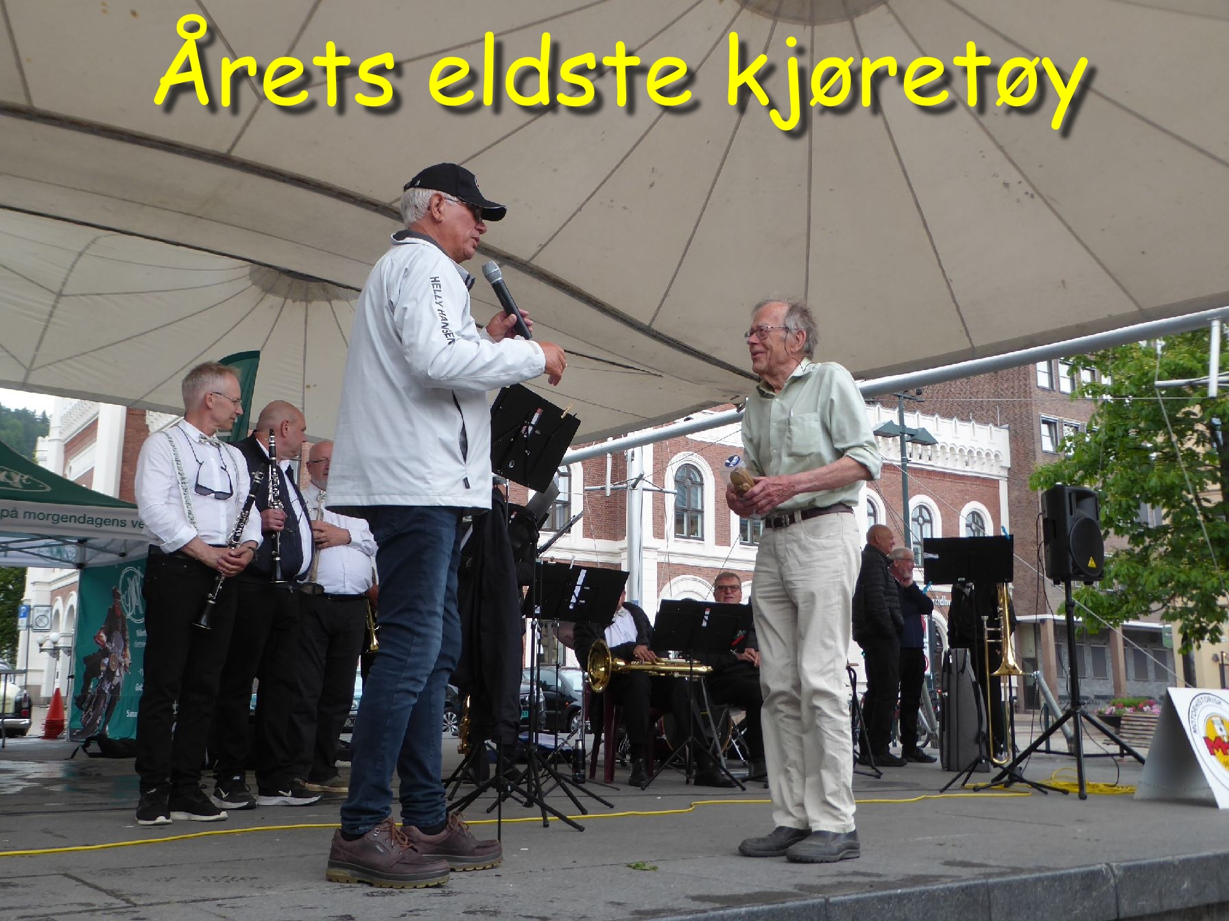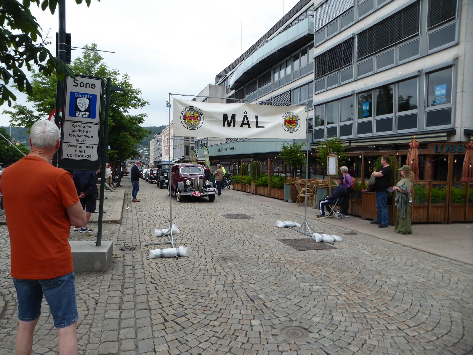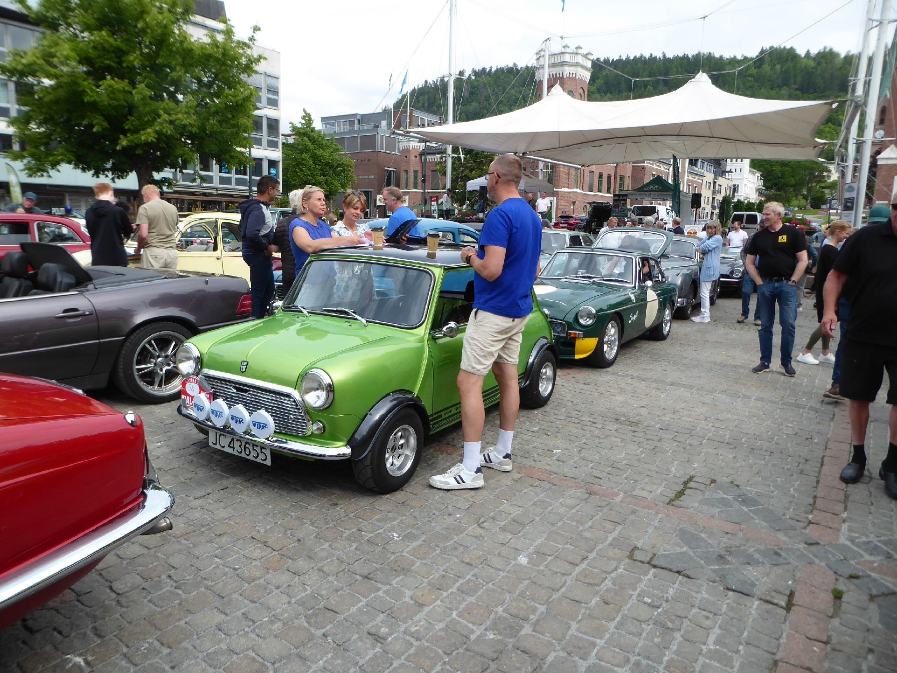 Ved innkomst på torget ble det litt "dekksparking" og erfaringsutveksling mellom deltakerne før Landfaldøens Blæseorkester underholdt fra torgscenen. Et artig og for de fleste, overraskende innslag var Dr. Solbergs foredrag om bilismens innvikning på vår helse, framføring av hylningsdikt til Spiralløpet og avslutningsvis en "dans" til ære for løpet.
