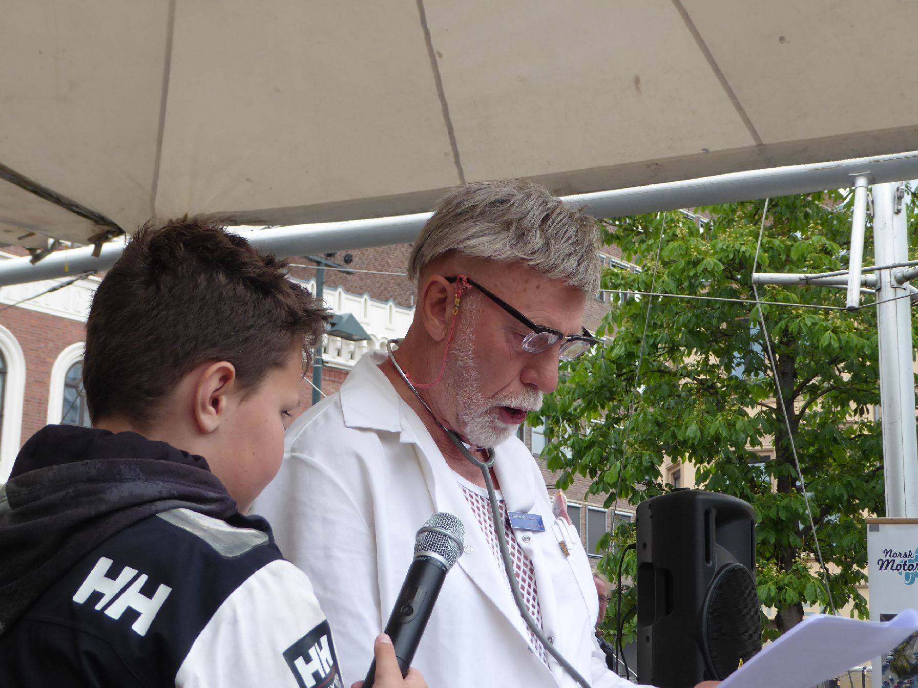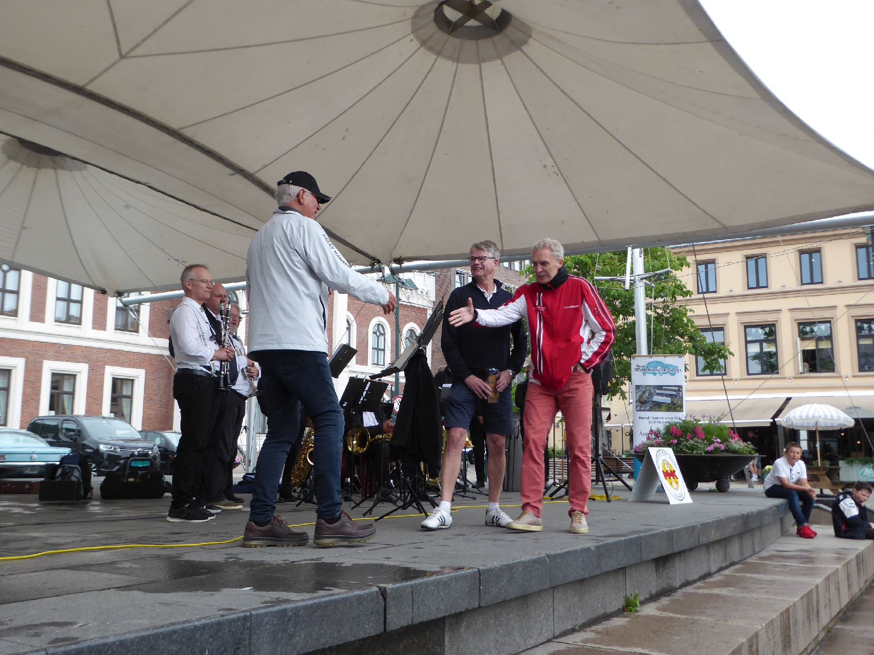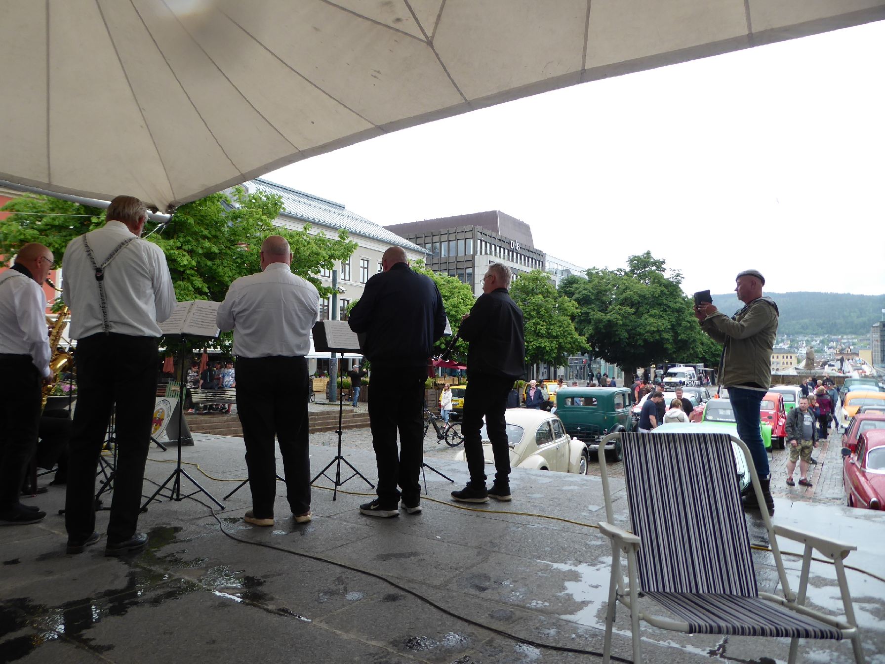 Ved innkomst på torget ble det litt "dekksparking" og erfaringsutveksling mellom deltakerne før Landfaldøens Blæseorkester underholdt fra torgscenen. Et artig og for de fleste, overraskende innslag var Dr. Solbergs foredrag om bilismens innvikning på vår helse, framføring av hylningsdikt til Spiralløpet og avslutningsvis en "dans" til ære for løpet.