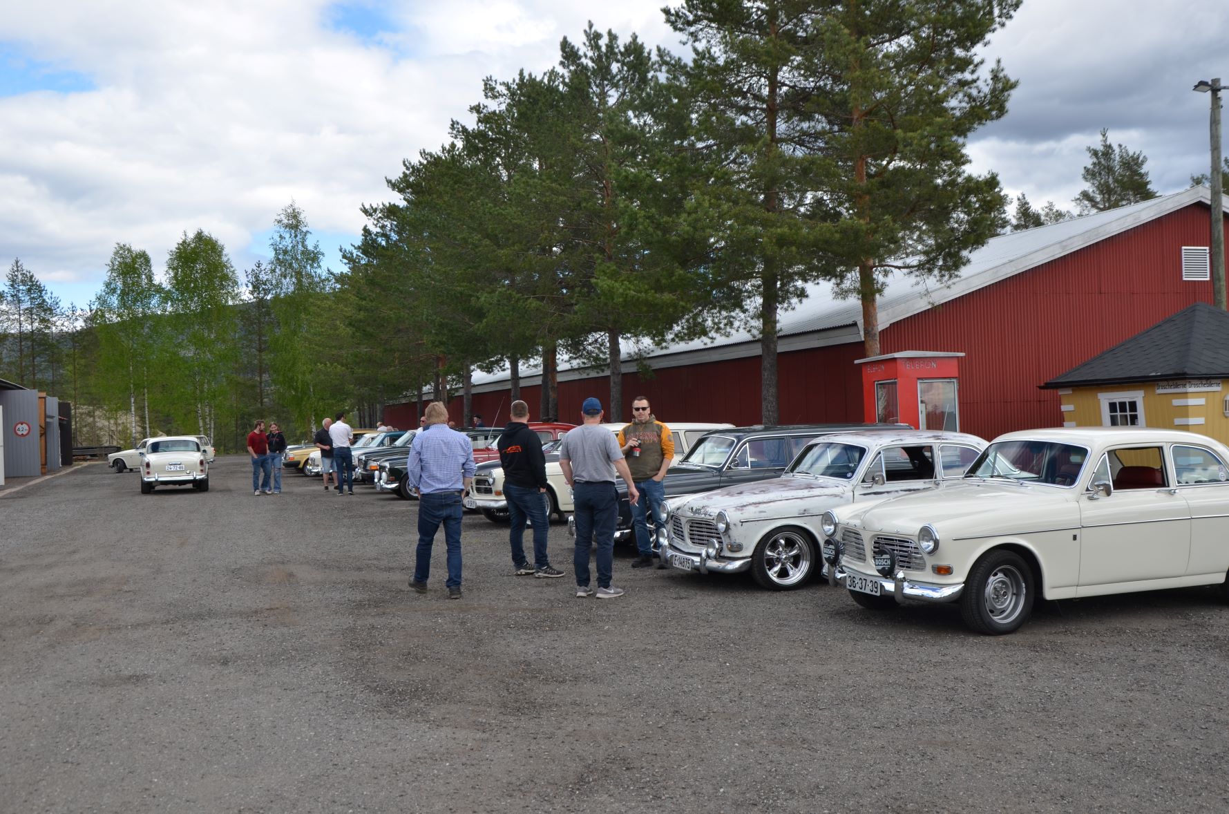 På søndag 15. mai ble det en formiddag med mange eldre svensker på besøk. I tolvtiden rullet det inn en hel rekke med klassiske Volvo Amazon. Her var det mange biler som tilsynelatende var holdt helt i original stand, men også noen med litt godbrom. En herlig blanding av legendariske herregårdsvogner og personbiler. Noen biler kjente jeg igjen fra Burudonsdagene, men også biler som for meg virket ukjente. Hyggelig at også biler vi ikke tidligere har sett på Burud hadde tatt turen. Vi ønsker selvfølgelig alle sammen hjertelig velkomne tilbake.
