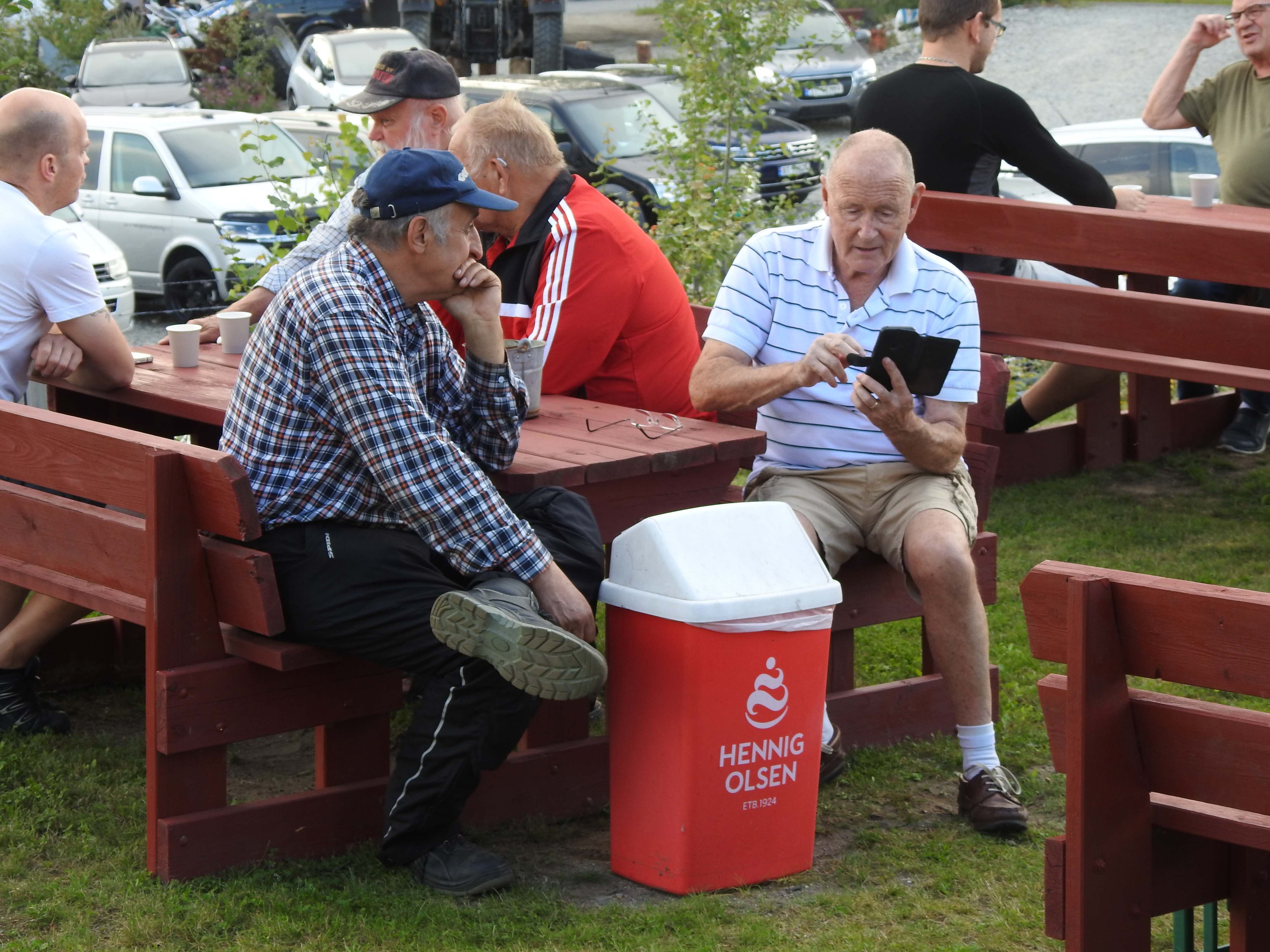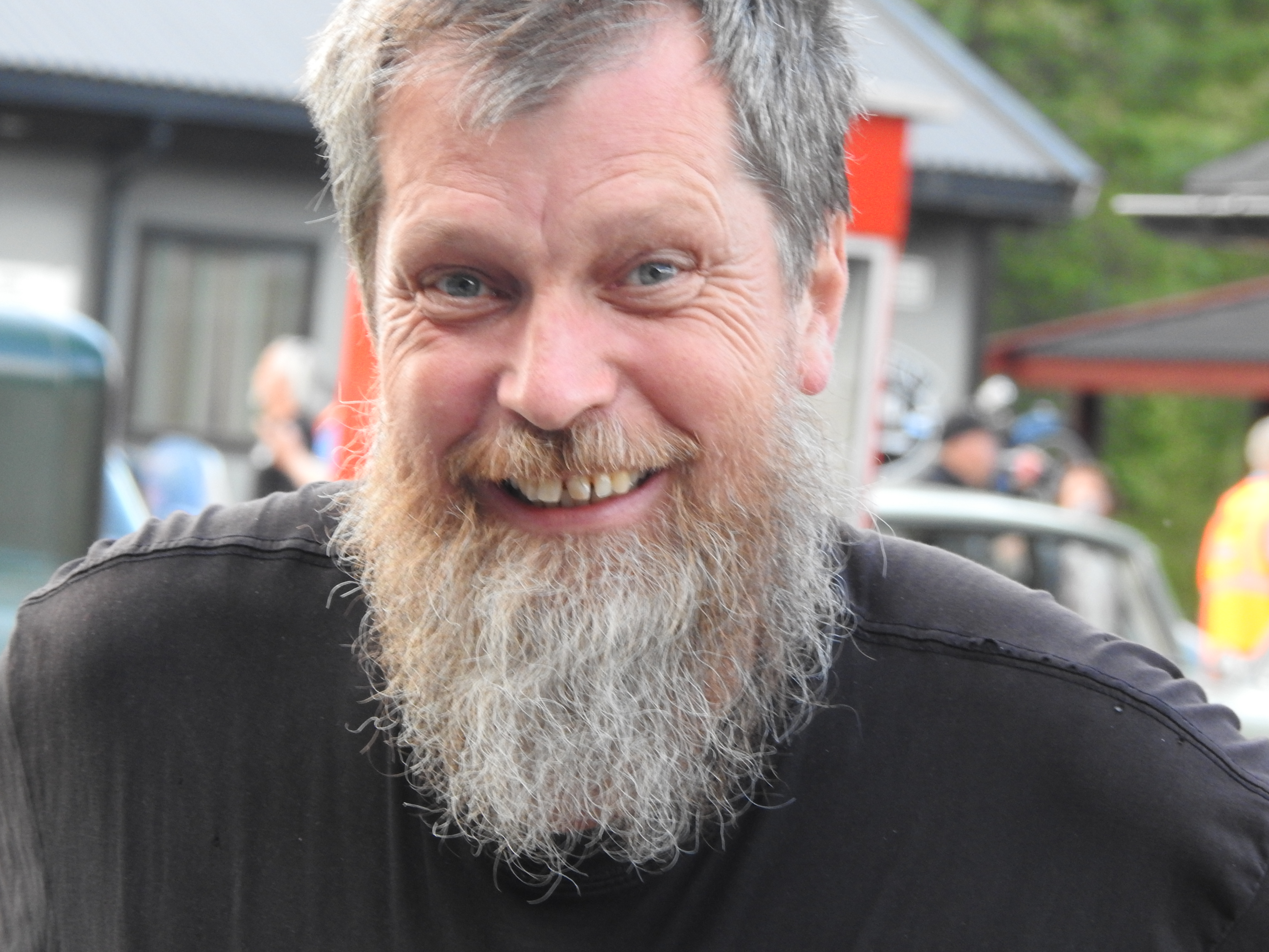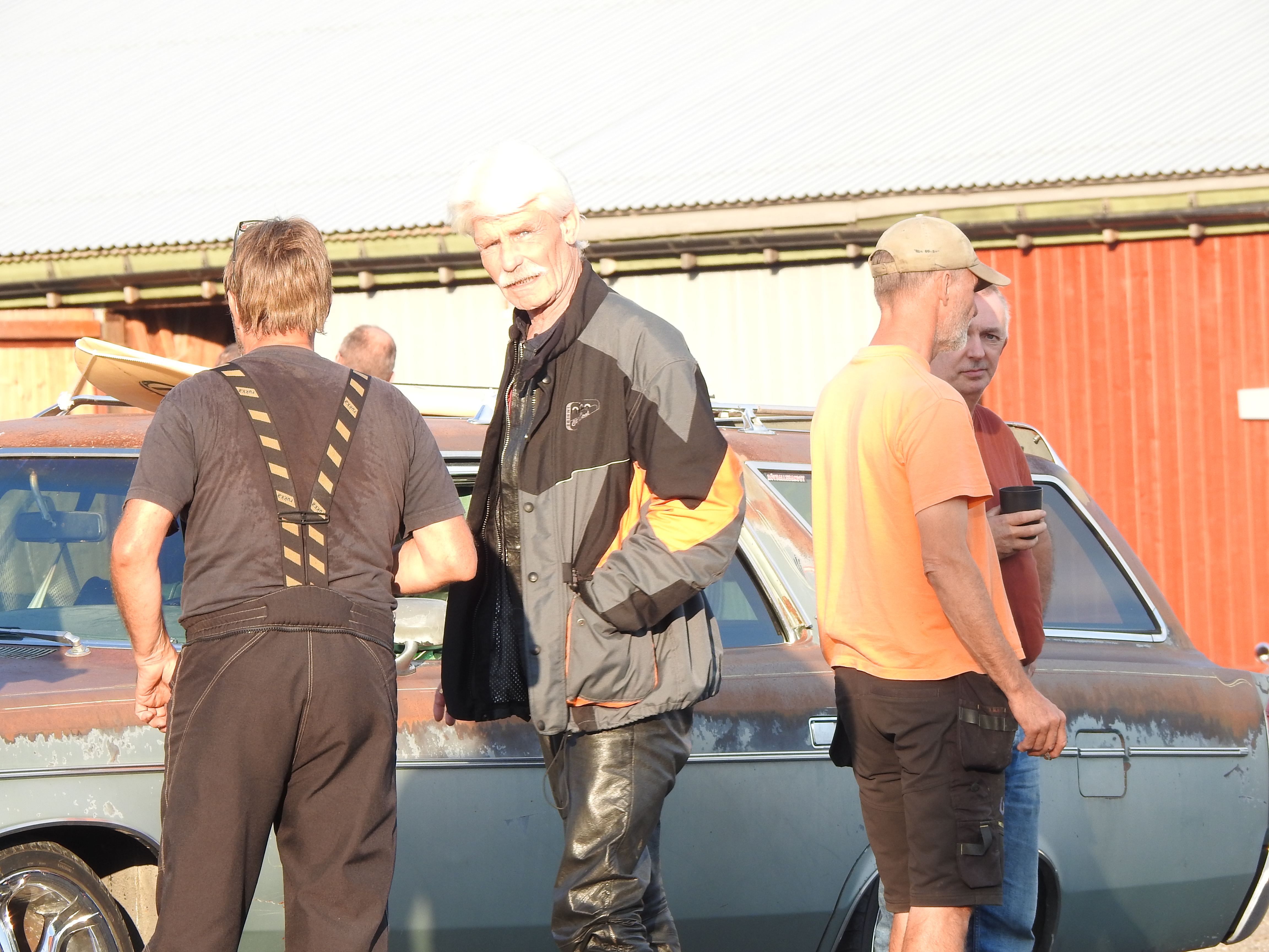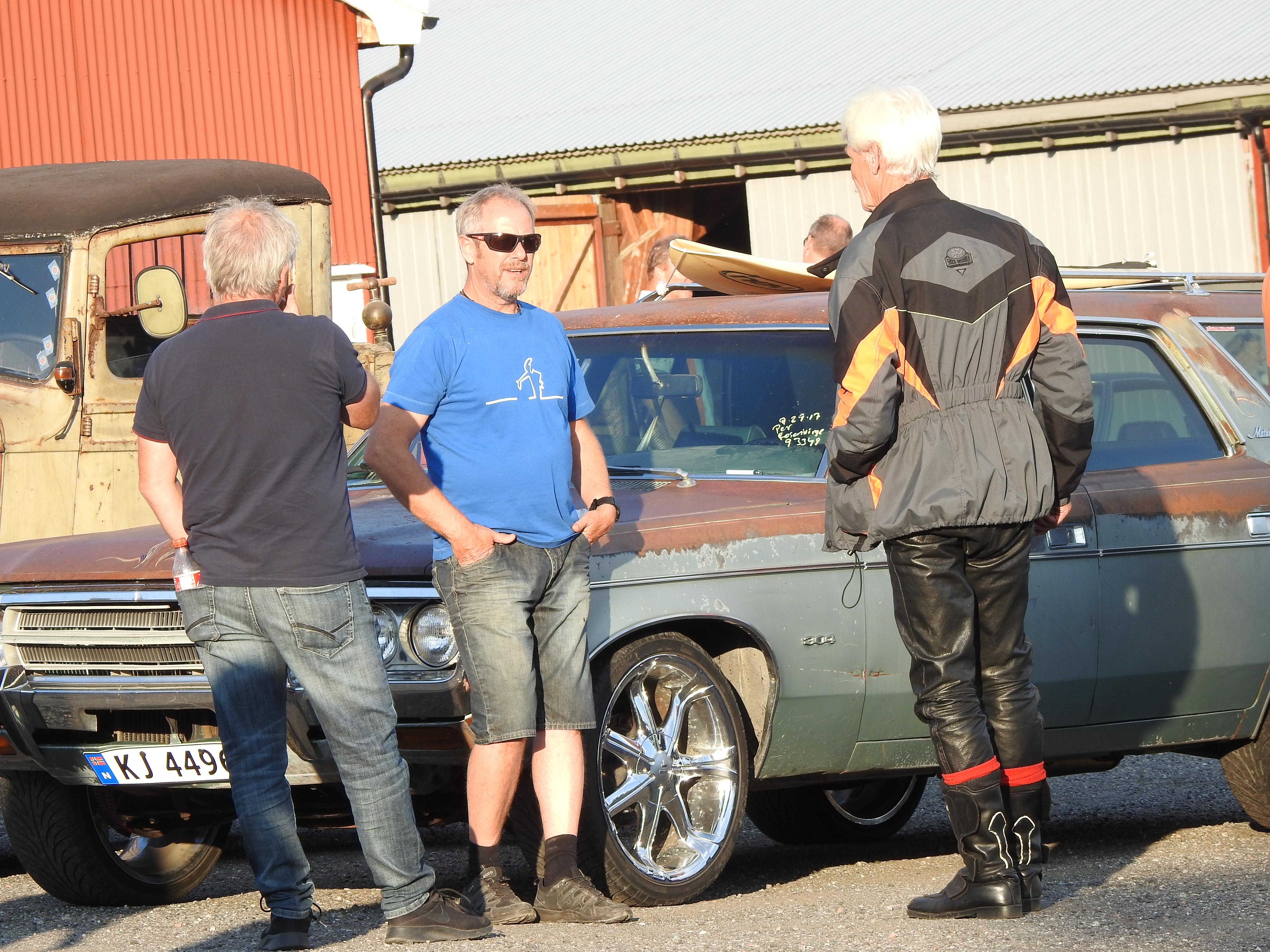 Masse gamle kjente og masse nye folk og kjøretøyer. Vi fikk se alt fra moped til militær lastebil. Den som gjorde mest inntrykk var en kar som kjørte gammel Harley uten fjæring bak. Han hadde ikke sete heller, satt rett på bakskjermen. Neppe noen nytelse, men småtøft var det.