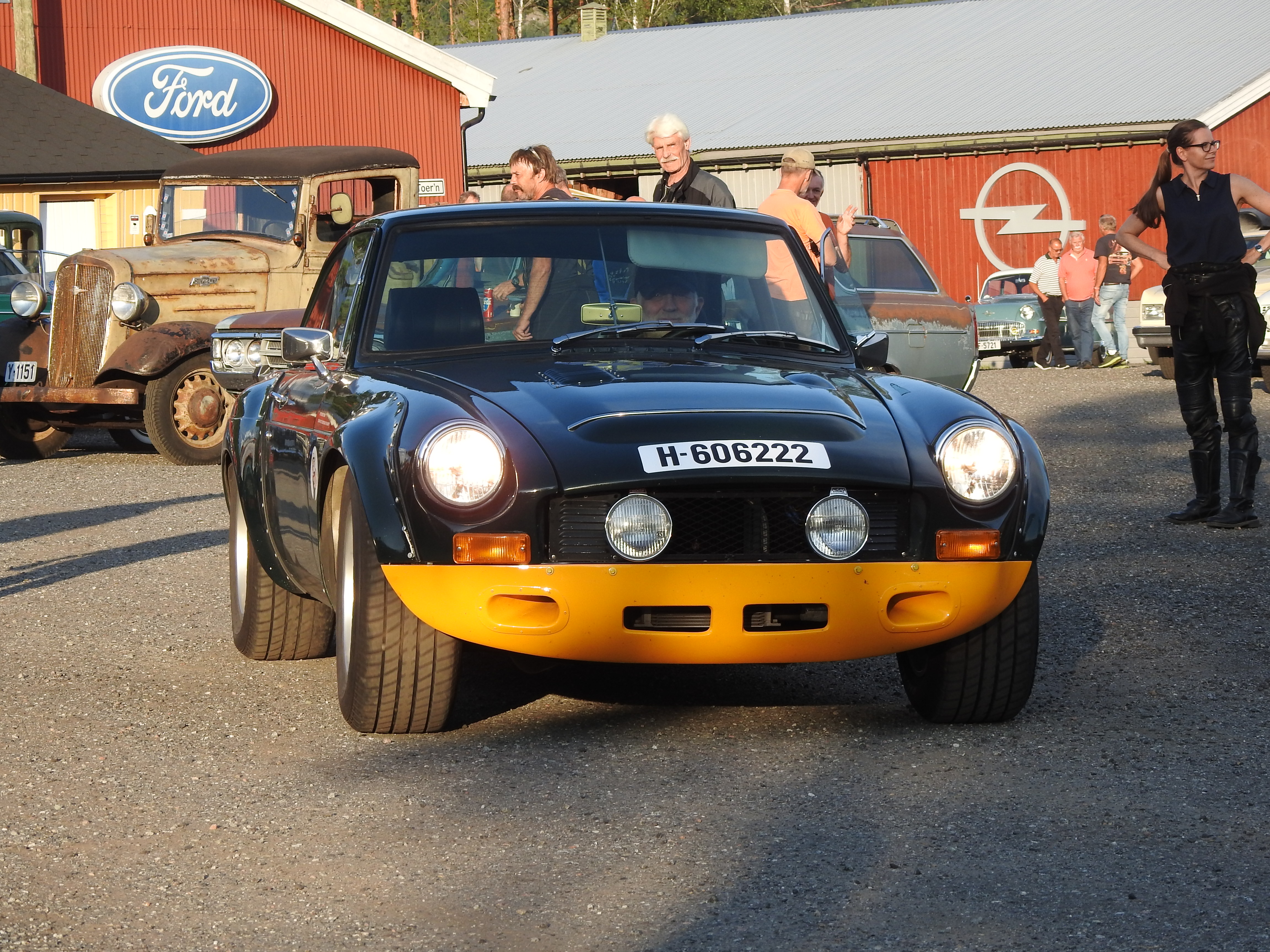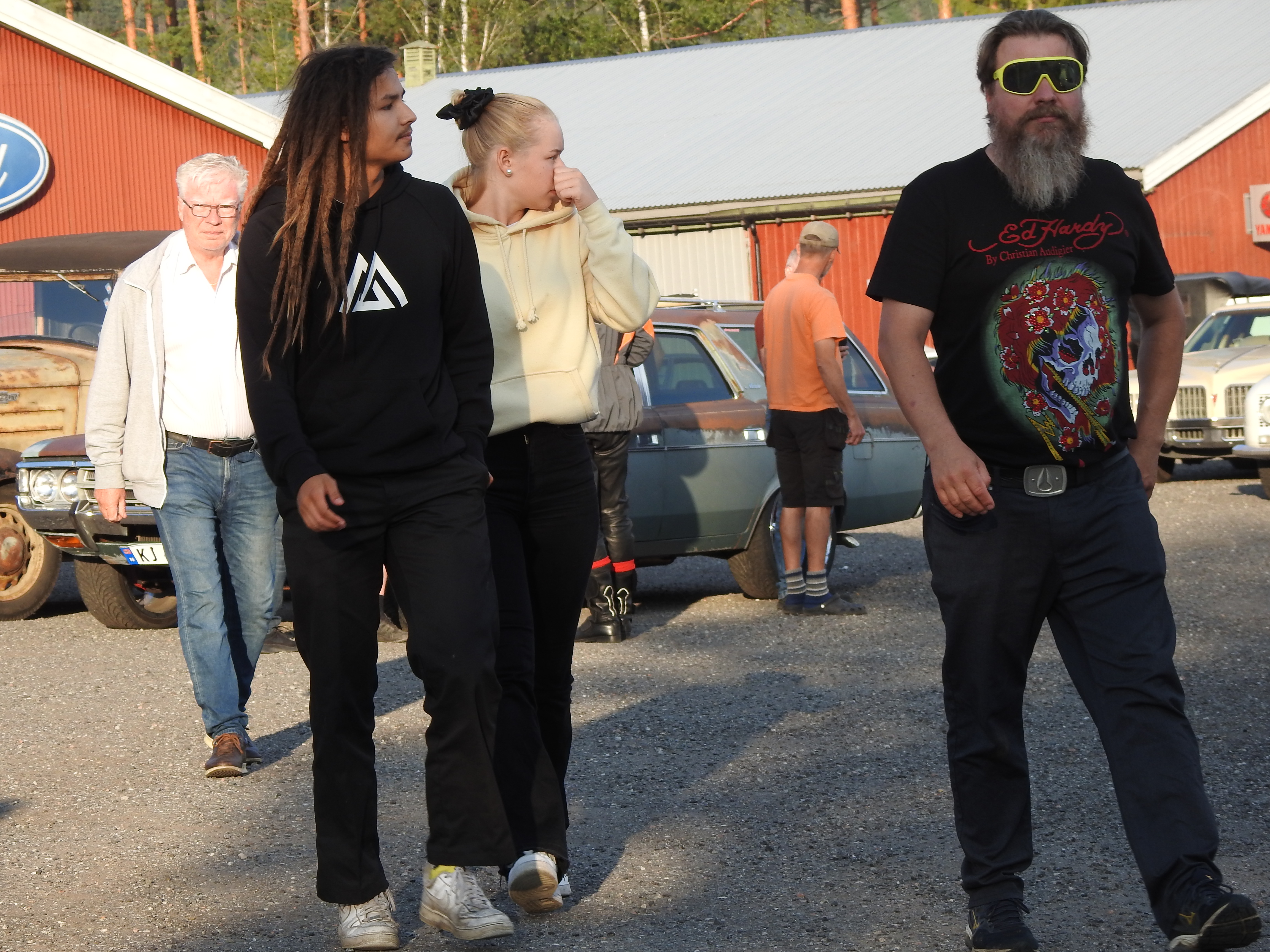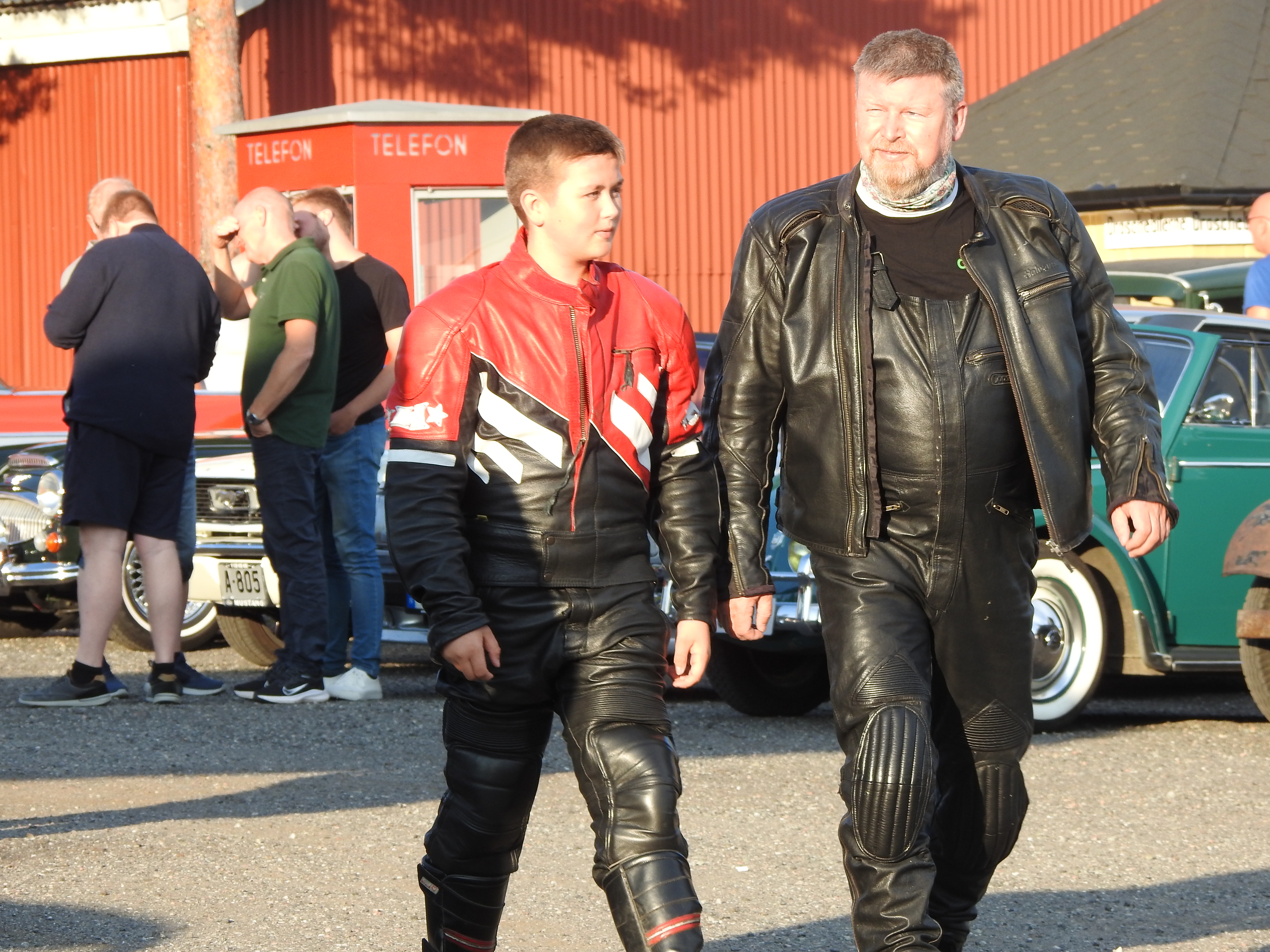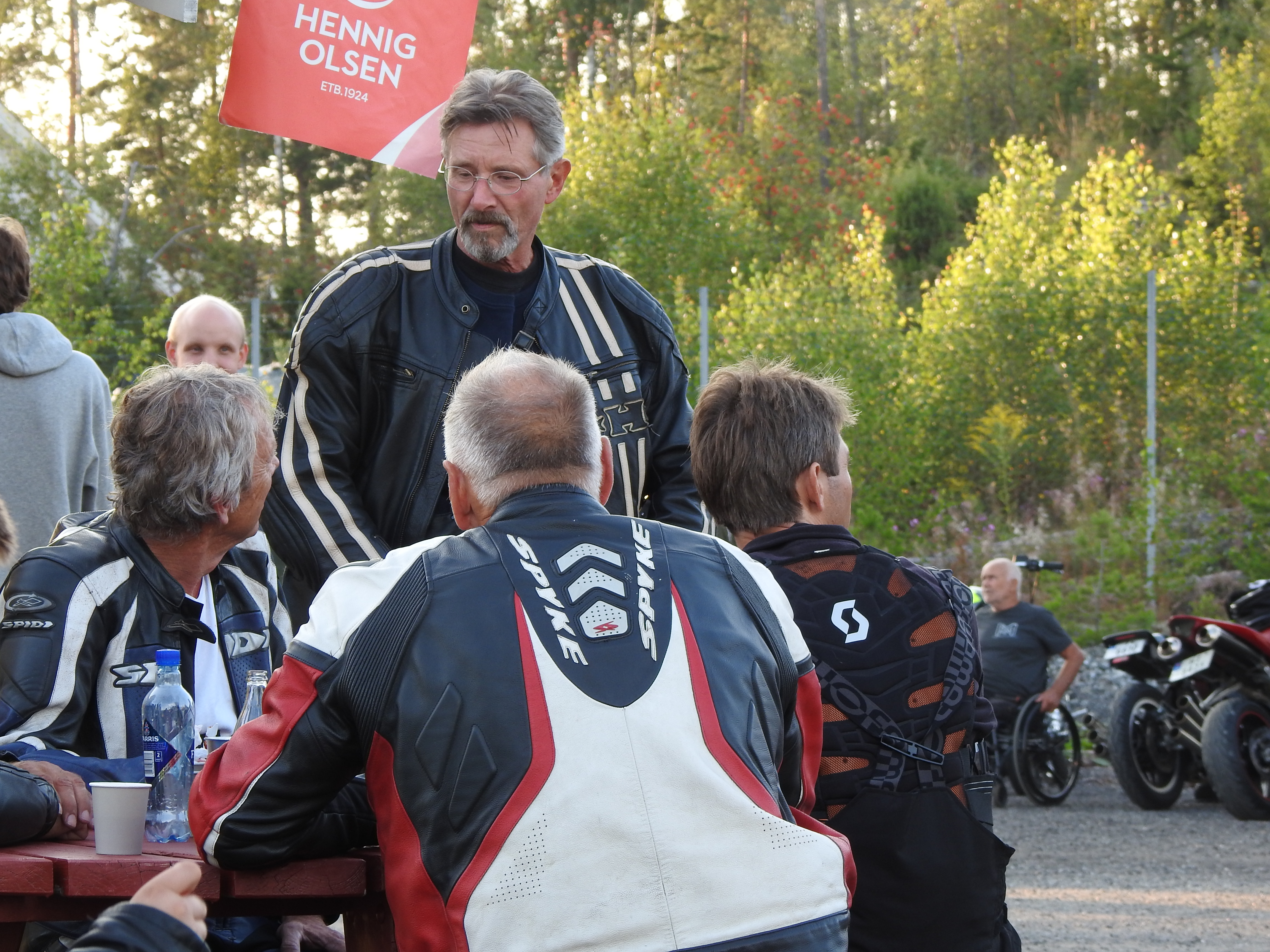 Masse gamle kjente og masse nye folk og kjøretøyer. Vi fikk se alt fra moped til militær lastebil. Den som gjorde mest inntrykk var en kar som kjørte gammel Harley uten fjæring bak. Han hadde ikke sete heller, satt rett på bakskjermen. Neppe noen nytelse, men småtøft var det.