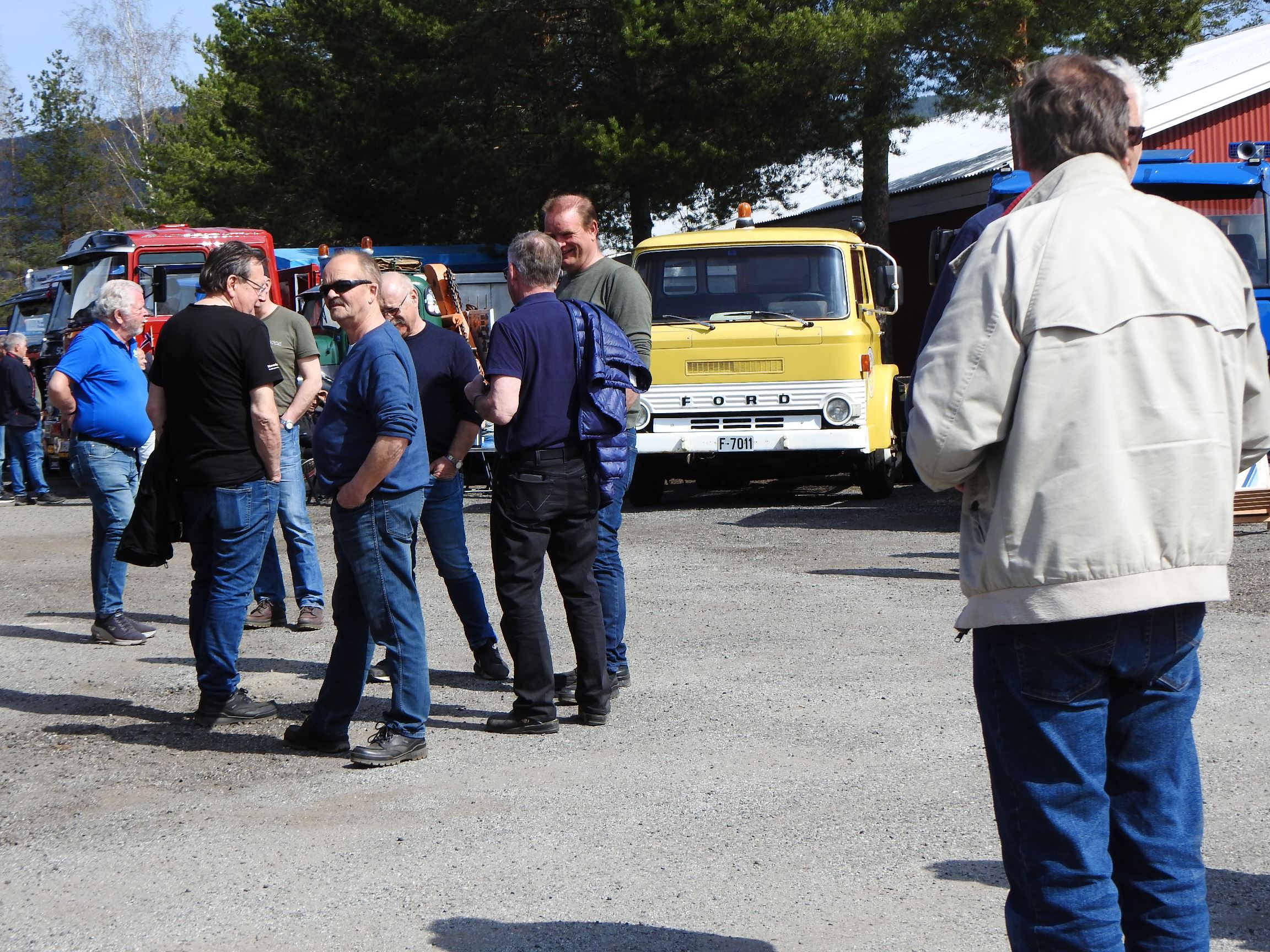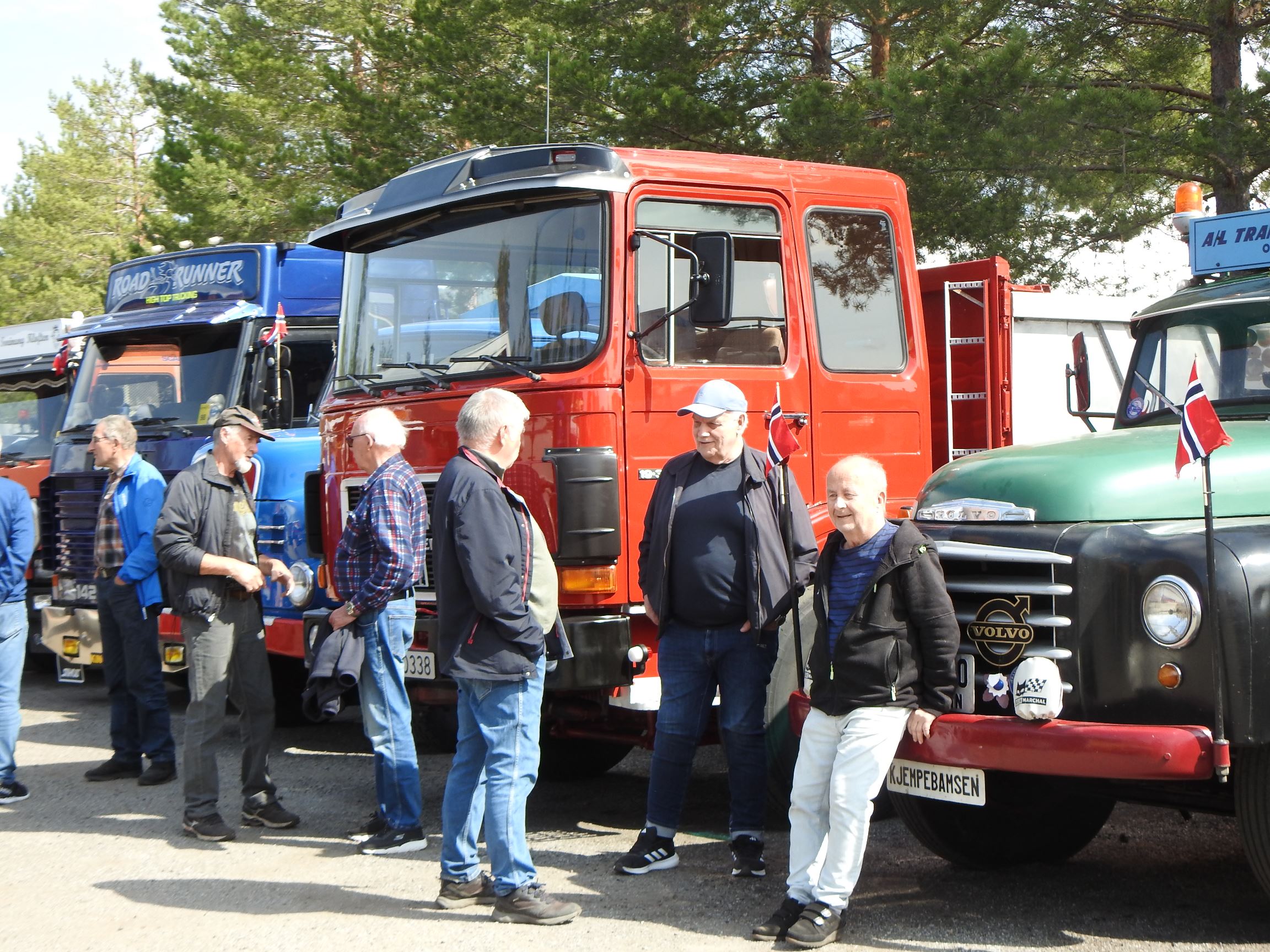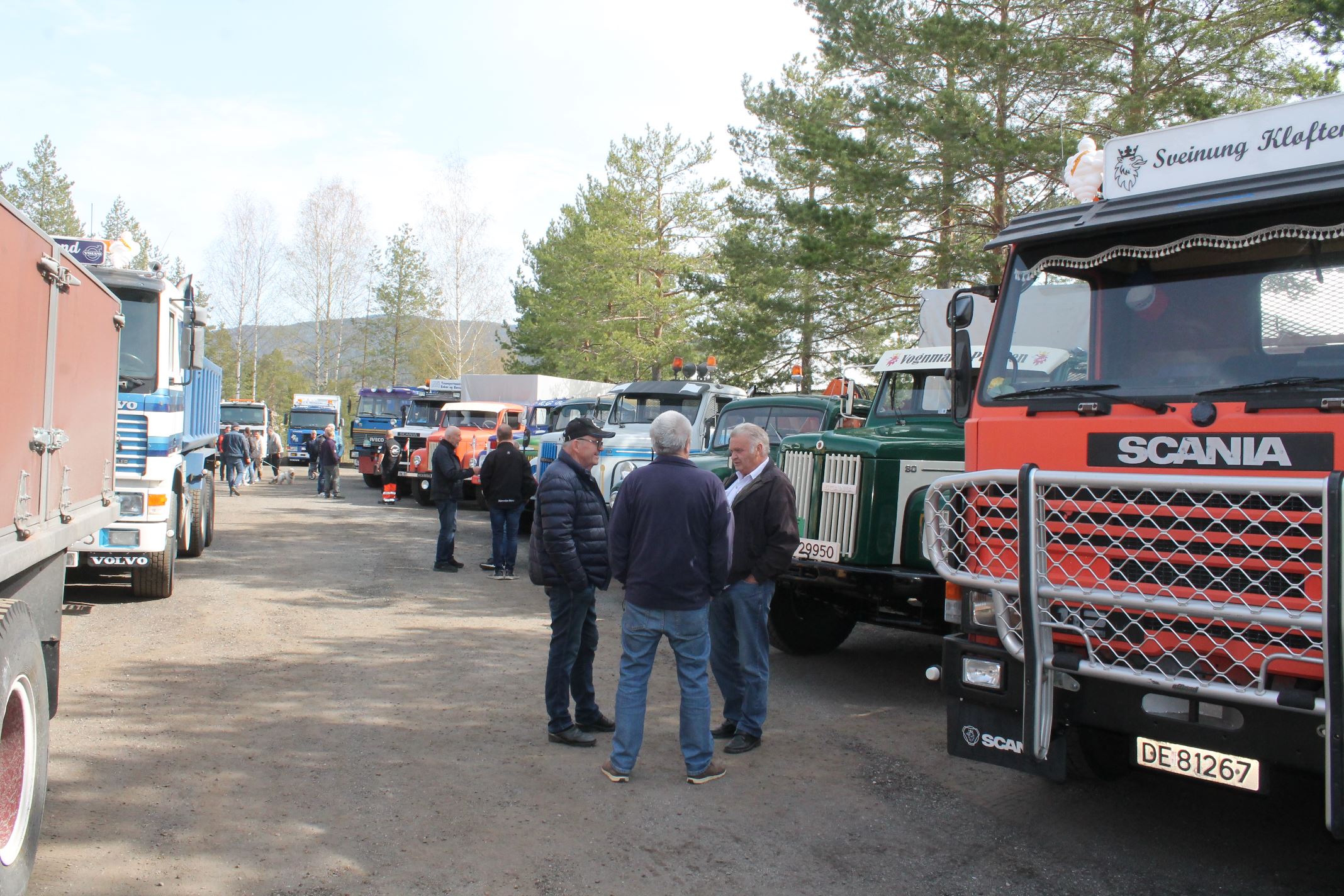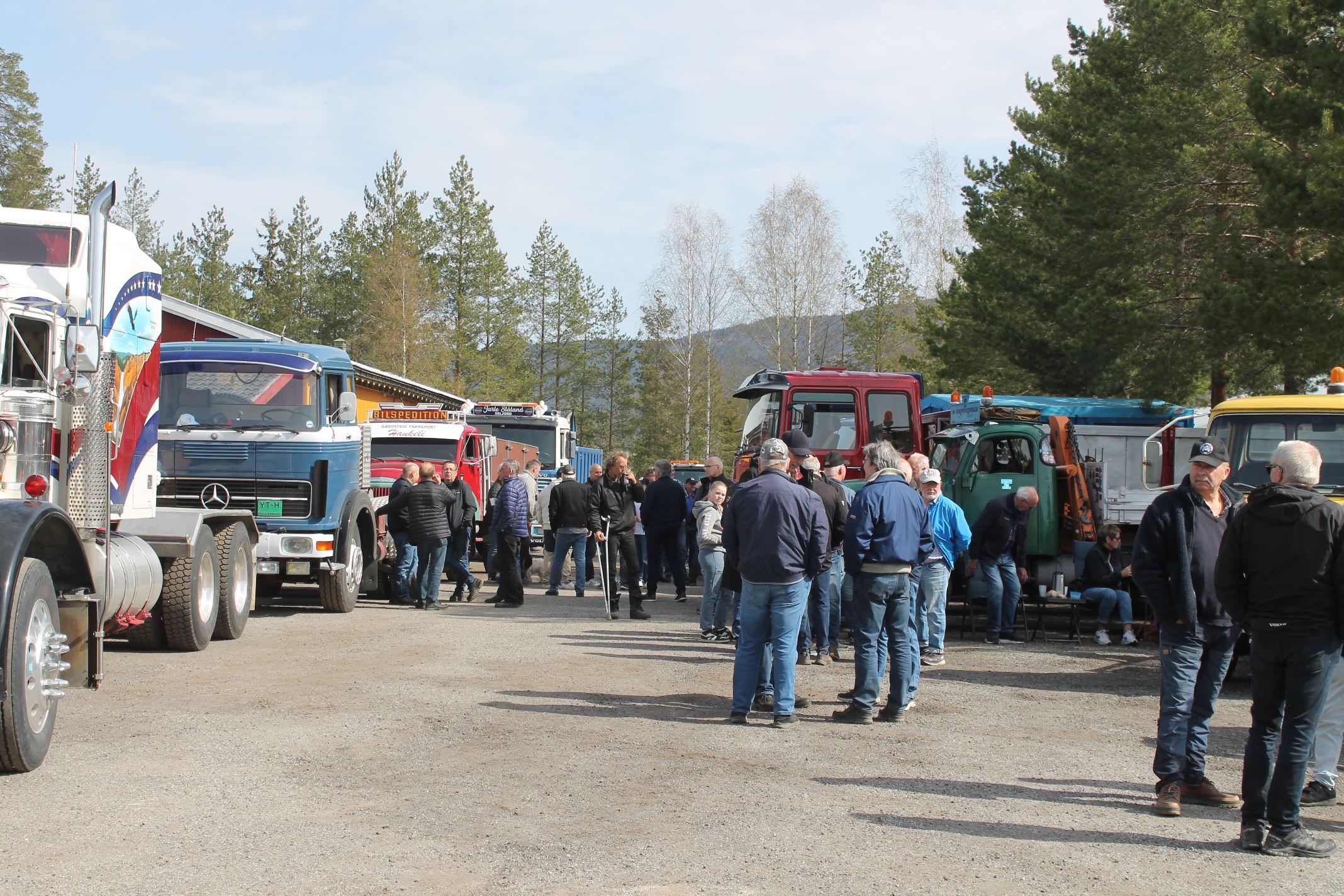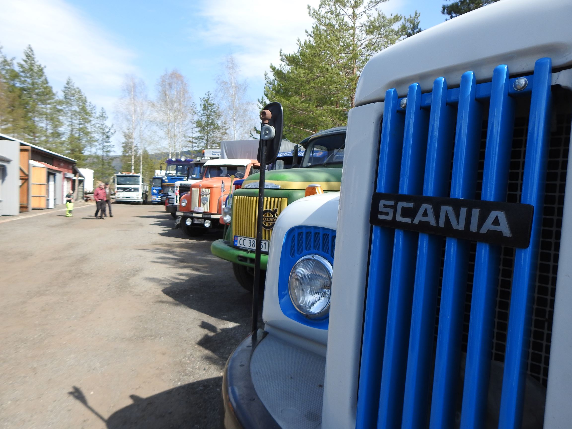 Dagen opprant med perfekt vær og det begynte å strømme på sakte, men sikkert en god stund før offisiell åpningstid. Som vanlig mye Volvo og Scania i alle mulige variasjoner, en god ladning med Mercedes, MAN og Ford og noen Folkevogner ispedd mer sjeldne fugler som trehjuls Tempo, pedaldrevet Paulsen-cycle, Steyr, Magirus, Studebaker, Willys og Renault. Treffets eneste tilreisende buss var også eneste DAF. En eneste førkrigs bil var skuffende alene, men Chevrolet’en fra midt på trettitallet hadde selskap av en slektning fra det første etterkrigsåret. Alltid er det imponerende å se uoversiktlige amerikanske lastebiler med akselavstand lik verdensrekorden i tresteg og med sving som en agurk med EU-standard, imponerende å se hvordan de blir håndtert under trange forhold. I fall det skulle oppstå vanskelige situasjoner var det selvsagt både politibil og ambulanse på plass. Og ikke mindre enn tre tungbergere. Her skulle alt kunne løses.