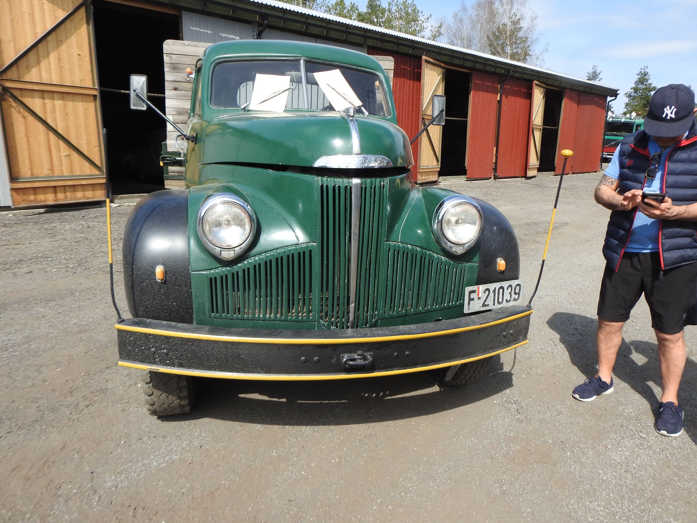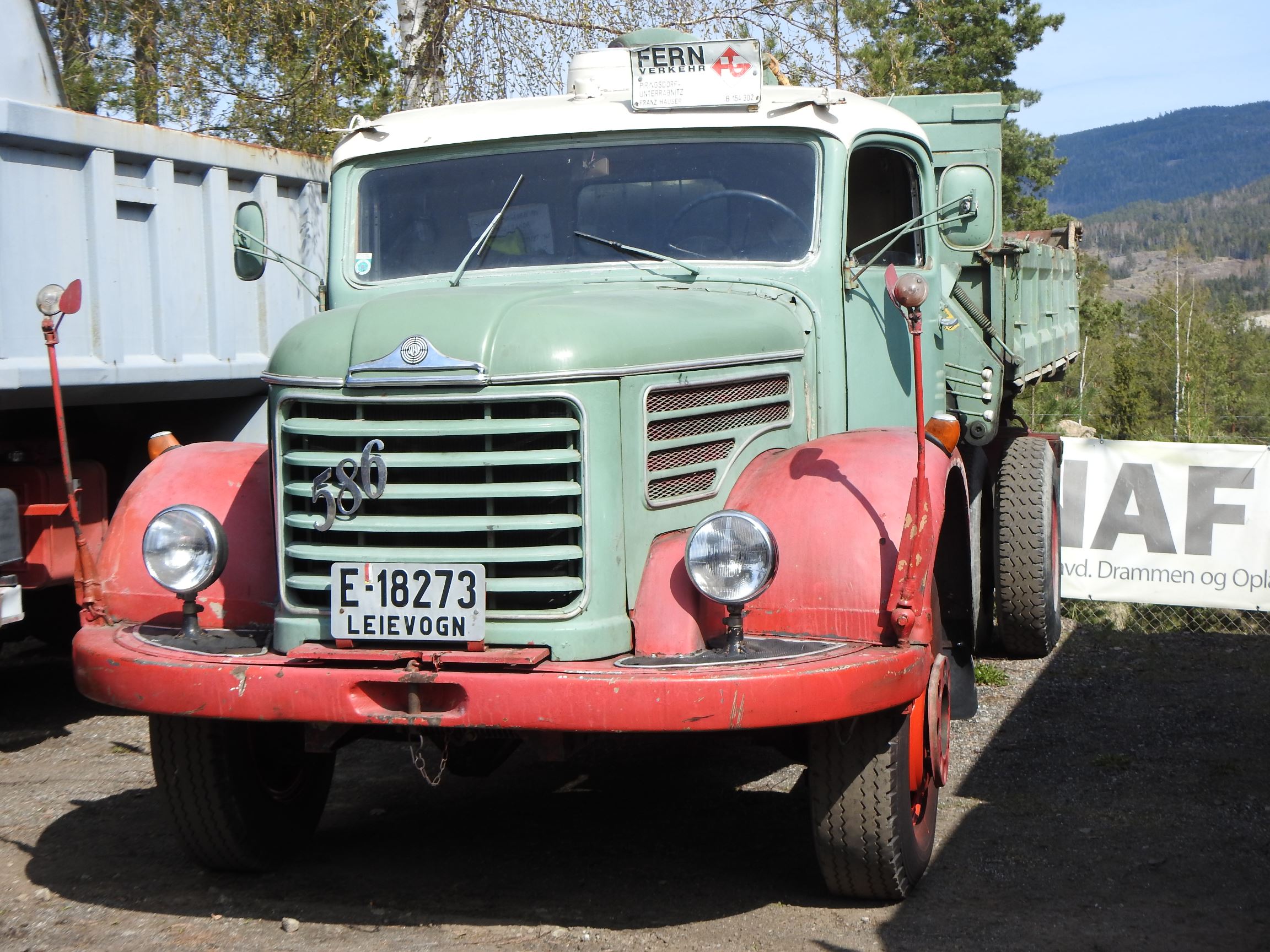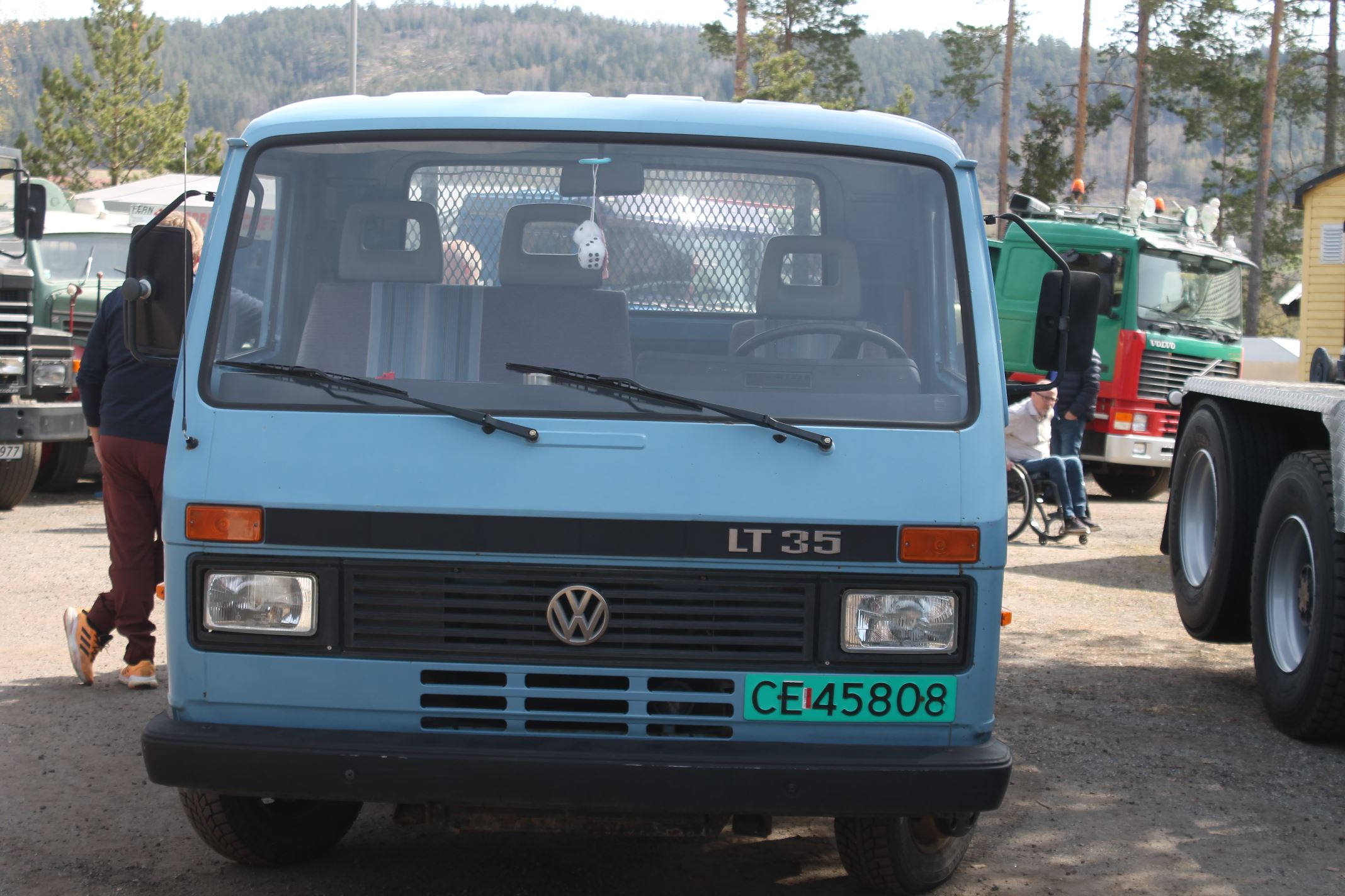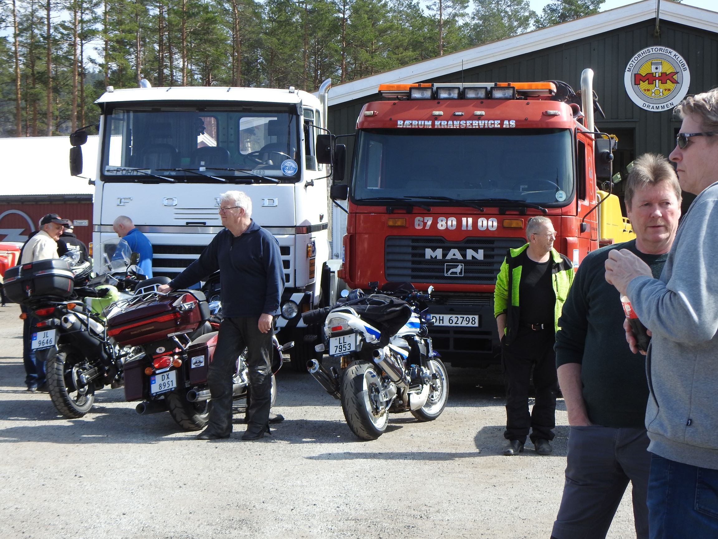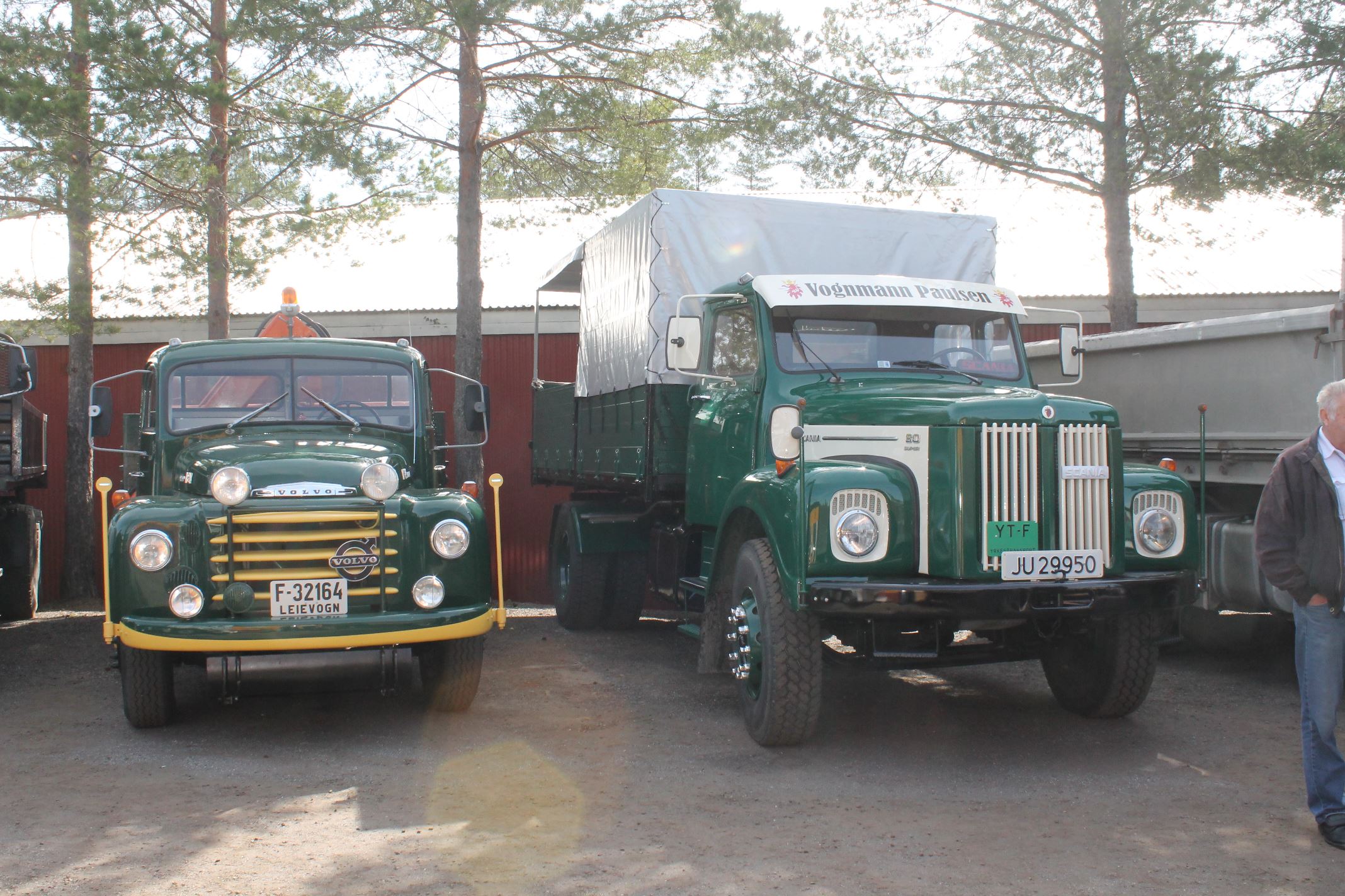 Dagen opprant med perfekt vær og det begynte å strømme på sakte, men sikkert en god stund før offisiell åpningstid. Som vanlig mye Volvo og Scania i alle mulige variasjoner, en god ladning med Mercedes, MAN og Ford og noen Folkevogner ispedd mer sjeldne fugler som trehjuls Tempo, pedaldrevet Paulsen-cycle, Steyr, Magirus, Studebaker, Willys og Renault. Treffets eneste tilreisende buss var også eneste DAF. En eneste førkrigs bil var skuffende alene, men Chevrolet’en fra midt på trettitallet hadde selskap av en slektning fra det første etterkrigsåret. Alltid er det imponerende å se uoversiktlige amerikanske lastebiler med akselavstand lik verdensrekorden i tresteg og med sving som en agurk med EU-standard, imponerende å se hvordan de blir håndtert under trange forhold. I fall det skulle oppstå vanskelige situasjoner var det selvsagt både politibil og ambulanse på plass. Og ikke mindre enn tre tungbergere. Her skulle alt kunne løses.