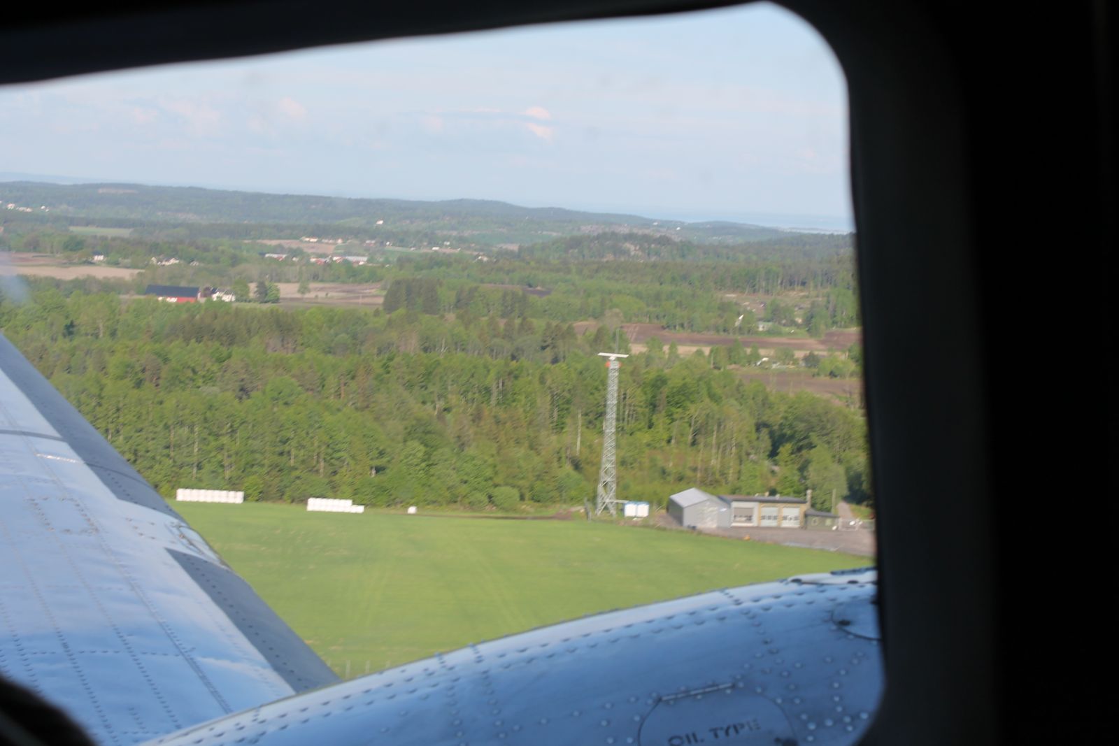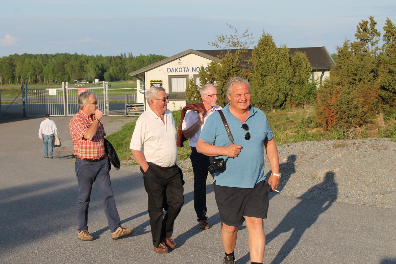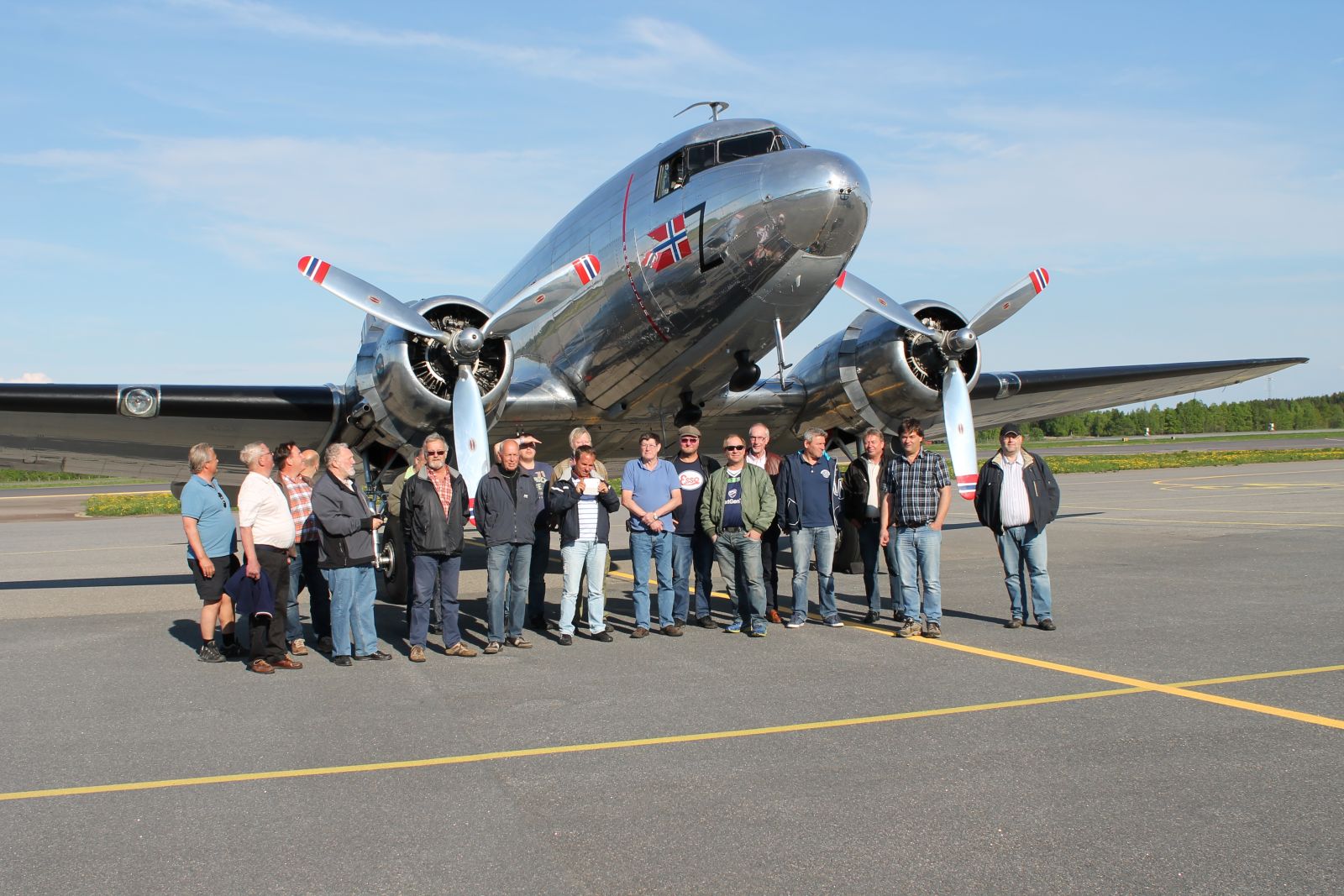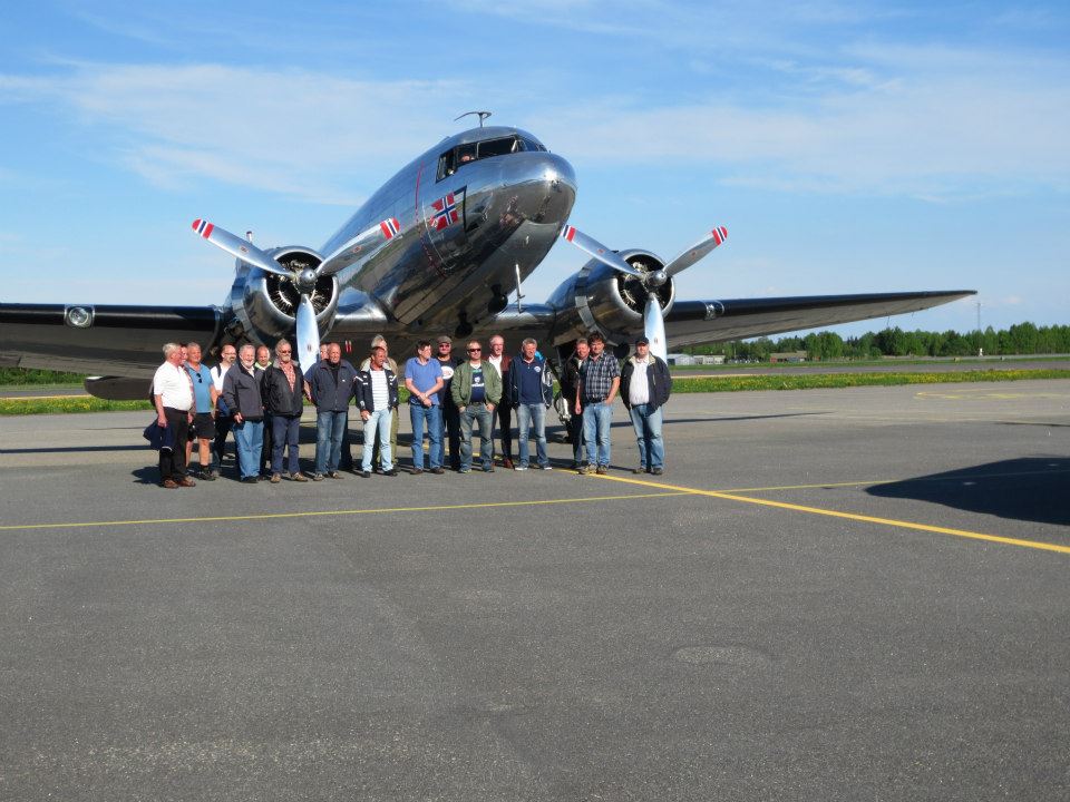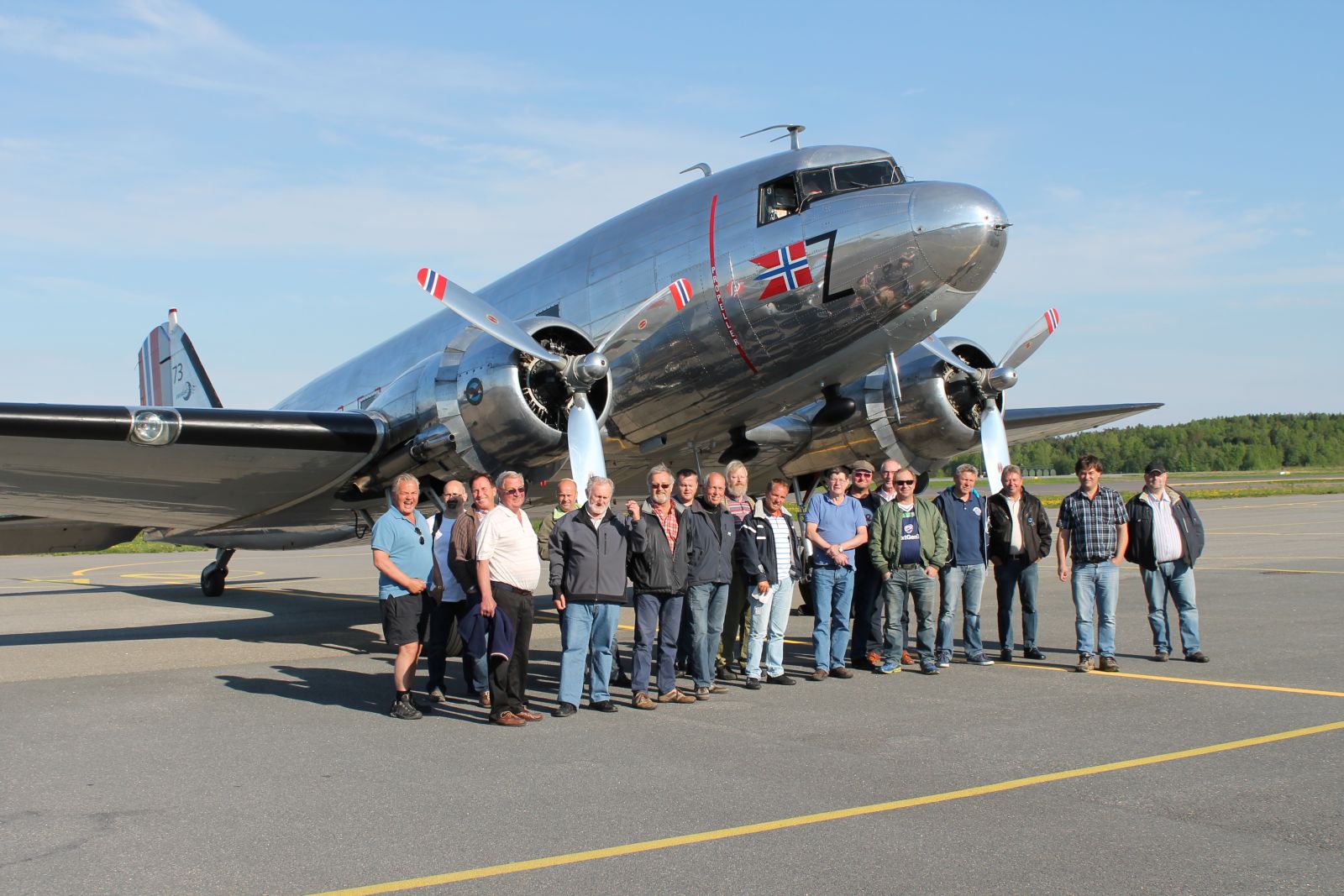 Mandag 27. mai opprant med et ufyselig vær. Vi hadde for mange måneder siden bestemt at denne dagen skulle vi fly Dakota. Utpå ettermiddagen sprakk skydekket opp og 19 mann kastet seg i klubbens buss og satte kursen for Torp. Innen vi kom dit var været helt strålende. Inn i den 70 år gamle maskinen strømmet vi forventningsfulle mannfolk. Flyet er voksen i alder, men den ene piloten ombord var eldre - han var 80 år. Samme pilot som fløy oss i 1993. Vi fløy kysten oppover, inn over Hurumlandet og opp Drammensfjorden. Gjorde en stor sving over Drammen, en stor sving over Konnerud før vi fortsatte videre til Hokksund og tok en æressving over der også. En drøy time med kos av høy kvalitet. Ingen frykt for gærninger i cocpit her, neida vi var alle der. Koselig og en smule eindommelig er det også å se piloten sitter med armen ut av vinduet. På vei hjem stoppet vi og nøt øl og krem på ei veikro. Bussen ble atter parkert under tak på Burud og en lang flott kvekld var brakt til ende. Stor suksess og jækla moro.