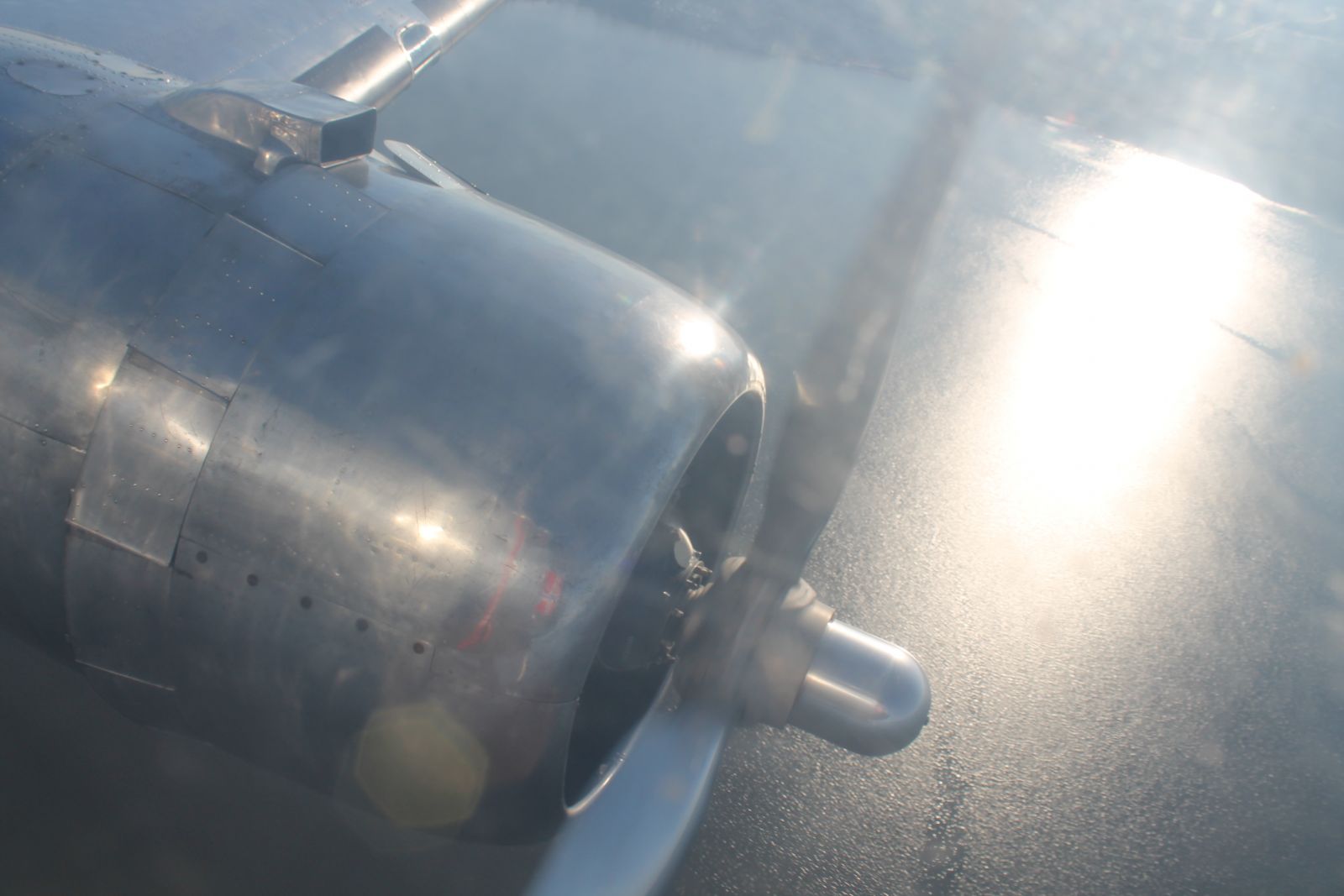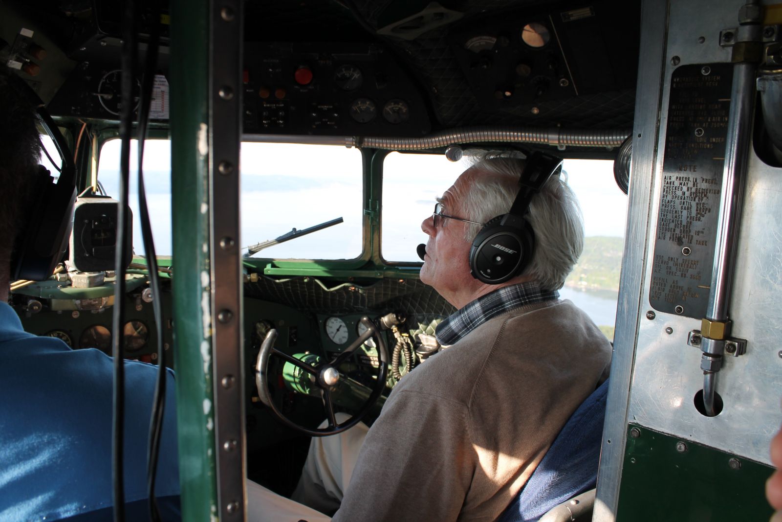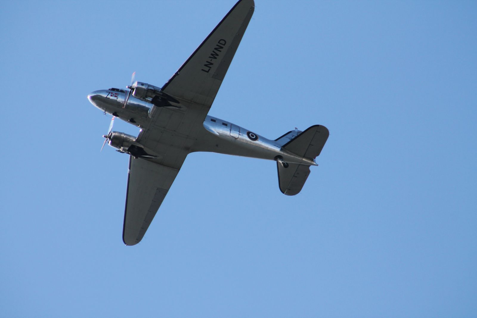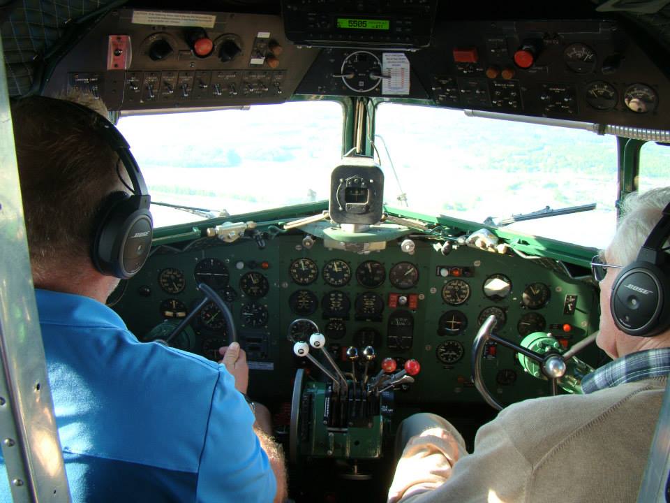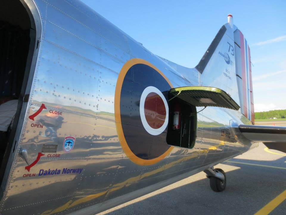 Mandag 27. mai opprant med et ufyselig vær. Vi hadde for mange måneder siden bestemt at denne dagen skulle vi fly Dakota. Utpå ettermiddagen sprakk skydekket opp og 19 mann kastet seg i klubbens buss og satte kursen for Torp. Innen vi kom dit var været helt strålende. Inn i den 70 år gamle maskinen strømmet vi forventningsfulle mannfolk. Flyet er voksen i alder, men den ene piloten ombord var eldre - han var 80 år. Samme pilot som fløy oss i 1993. Vi fløy kysten oppover, inn over Hurumlandet og opp Drammensfjorden. Gjorde en stor sving over Drammen, en stor sving over Konnerud før vi fortsatte videre til Hokksund og tok en æressving over der også. En drøy time med kos av høy kvalitet. Ingen frykt for gærninger i cocpit her, neida vi var alle der. Koselig og en smule eindommelig er det også å se piloten sitter med armen ut av vinduet. På vei hjem stoppet vi og nøt øl og krem på ei veikro. Bussen ble atter parkert under tak på Burud og en lang flott kvekld var brakt til ende. Stor suksess og jækla moro.
