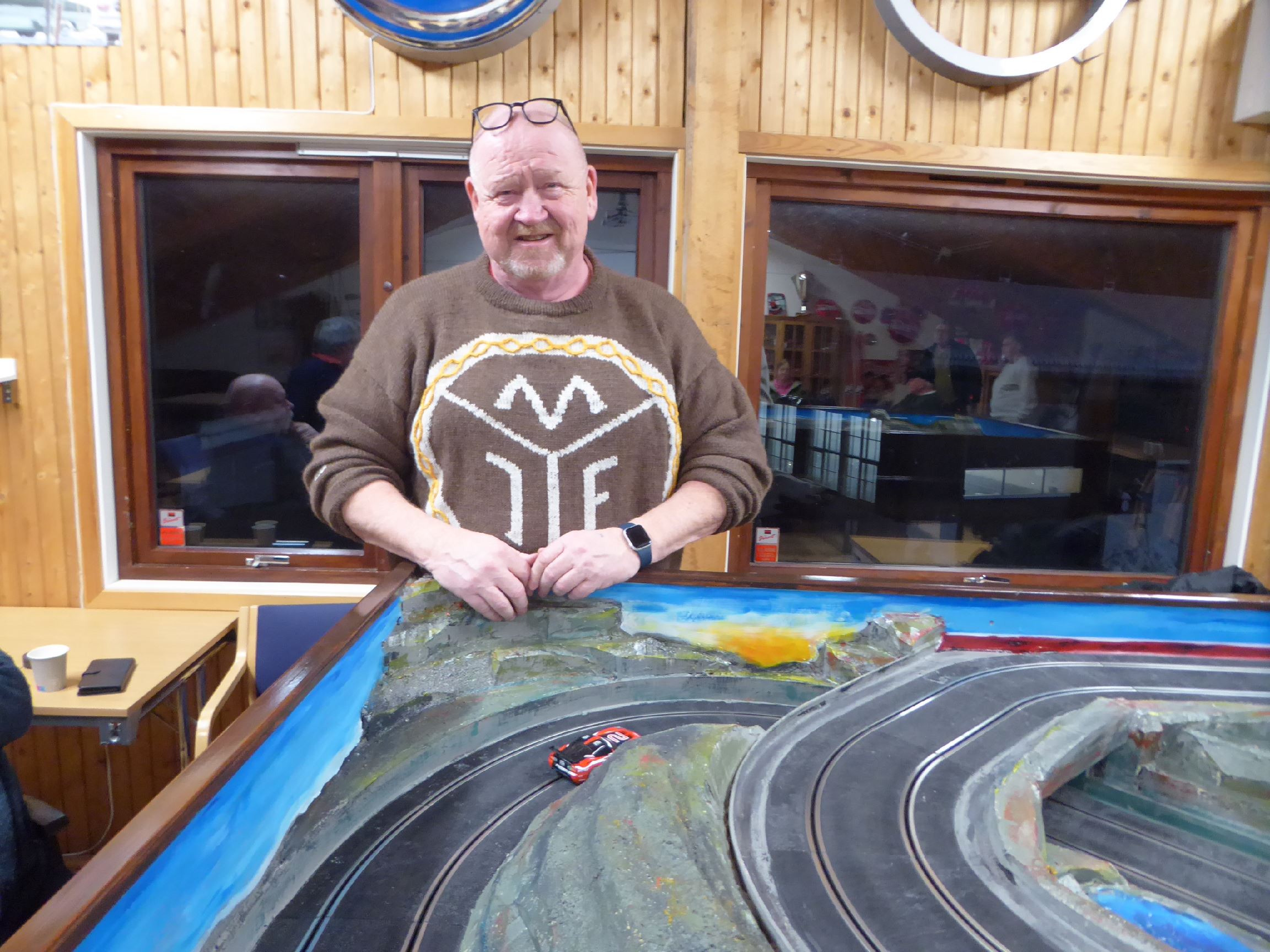 Kappkjøring på minirace-banen blei det likevel, og mange fikk prøvd seg på banen, og skravla gikk mellom slagene rundt langbordet.