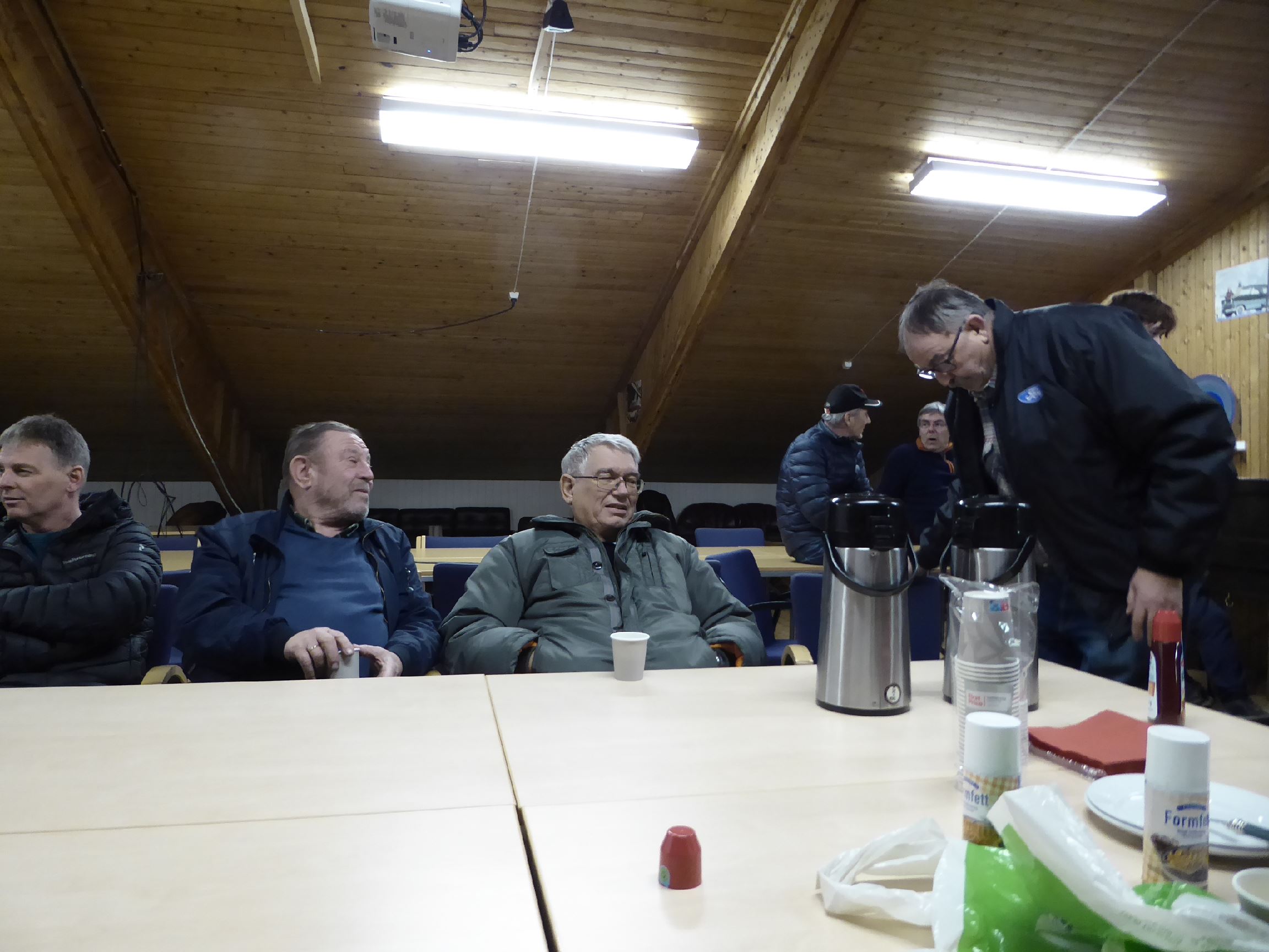 Omtrent 20 vaffelsultne sjeler hadde innfunnet seg i "Tre'ern" klokka 18 blank ikveld, og ventet tålmodig og lenge på at klubbens egen råkjører og vaffelrøre-leverandør skulle dukke opp. Til slutt måtte vi ringe til'n, men han hadde misforstått og trudde det var NESTE onsdag røra skulle leveres. Så der satt vi da, med varmt vaffeljern og tilhørende syltetøy, men uten vaffelrøre. Nå var gode råd dyre, men vi hadde en boks med amputerte pepperkakemenn og vi prøvde både å spise dem med bringebærsyltetøy og å steike dem i vaffeljernet, men det kom nok ikke opp mot de lovede nystekte vaflene. Vi må nok prøve å kvalitetsikre vaffelrøreleveransen neste gang....