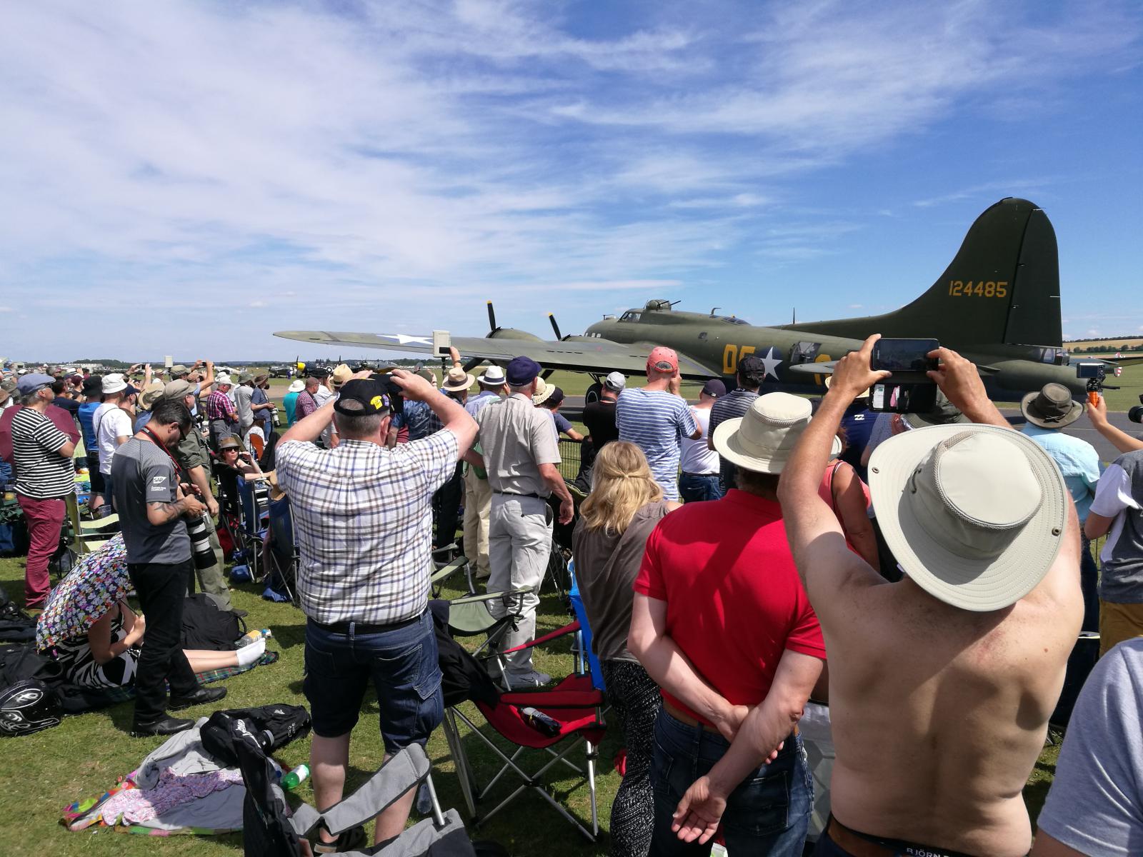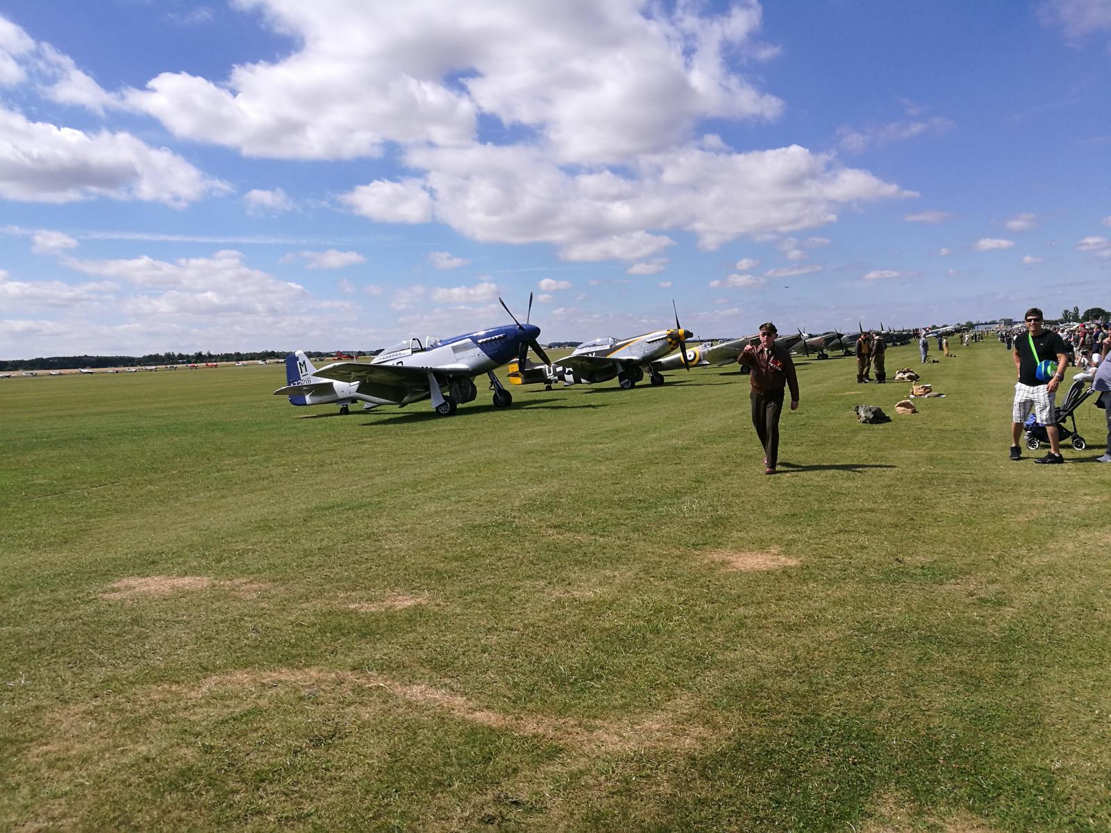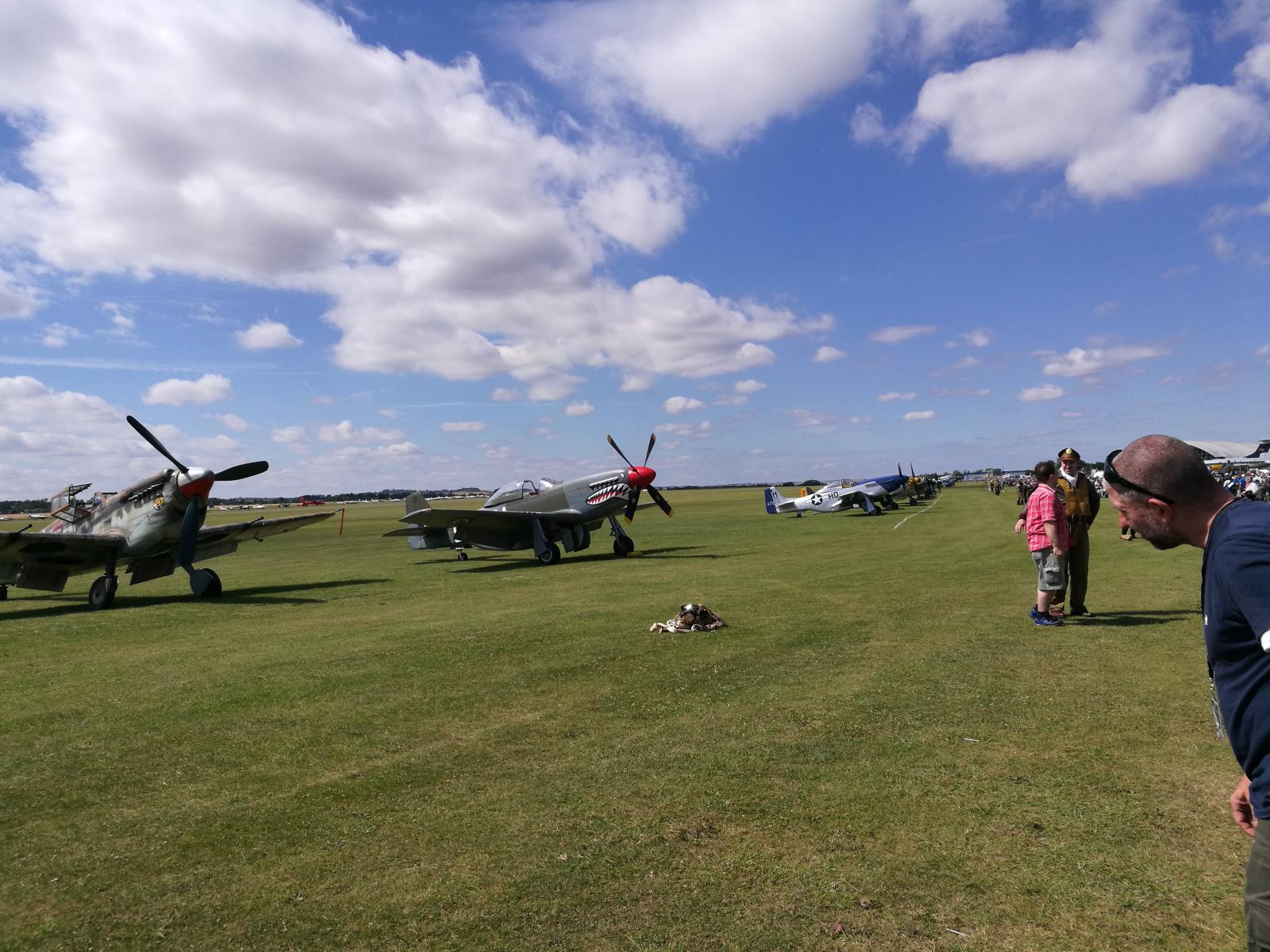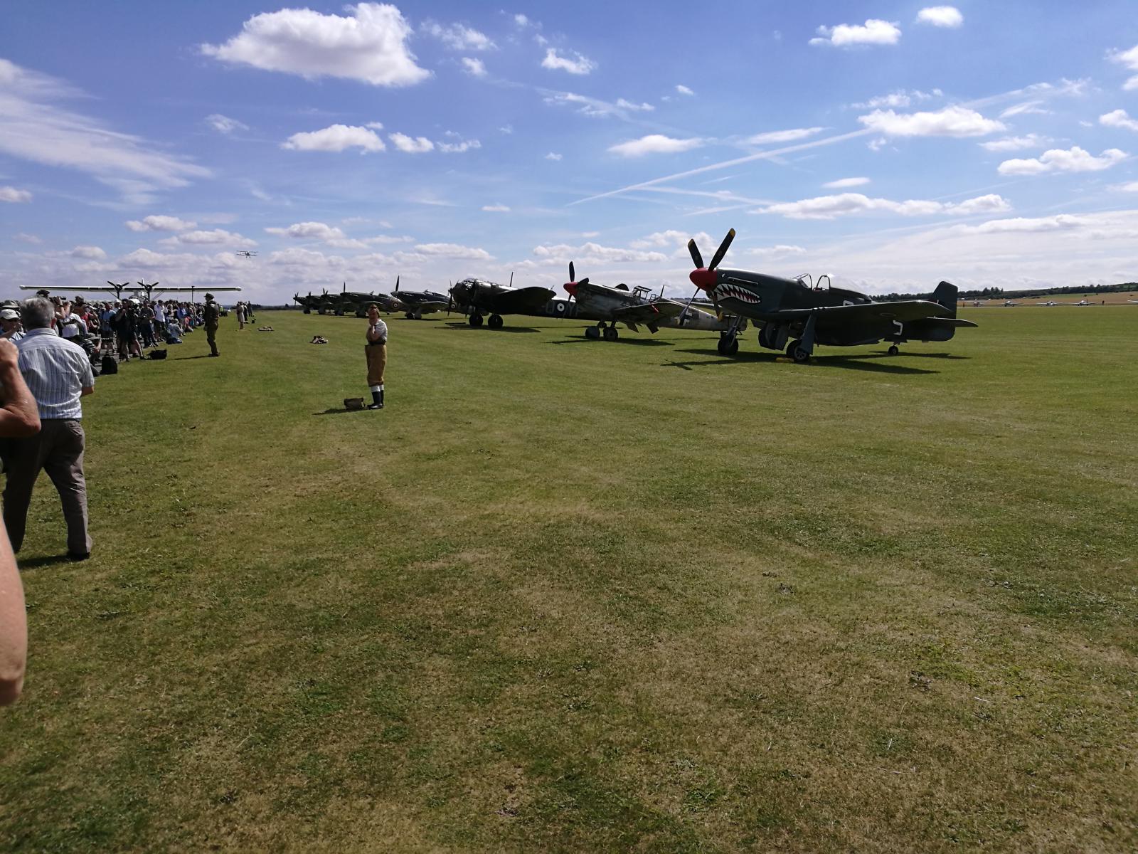 Vil du oppleve ekte flynostalgi, så ta en tur til Duxford Airshow i næheten av Cambridge. Ikke mindre enn 9 Spitfires på vingene samtidig, sammen med bl.a. Mustanger, Messerschmidt, Thunderbolt og B17 Flygende Festning. Masser av godlyd og deilig eksos. En Mustang gikk i åkeren, men det gikk bra med flygeren.