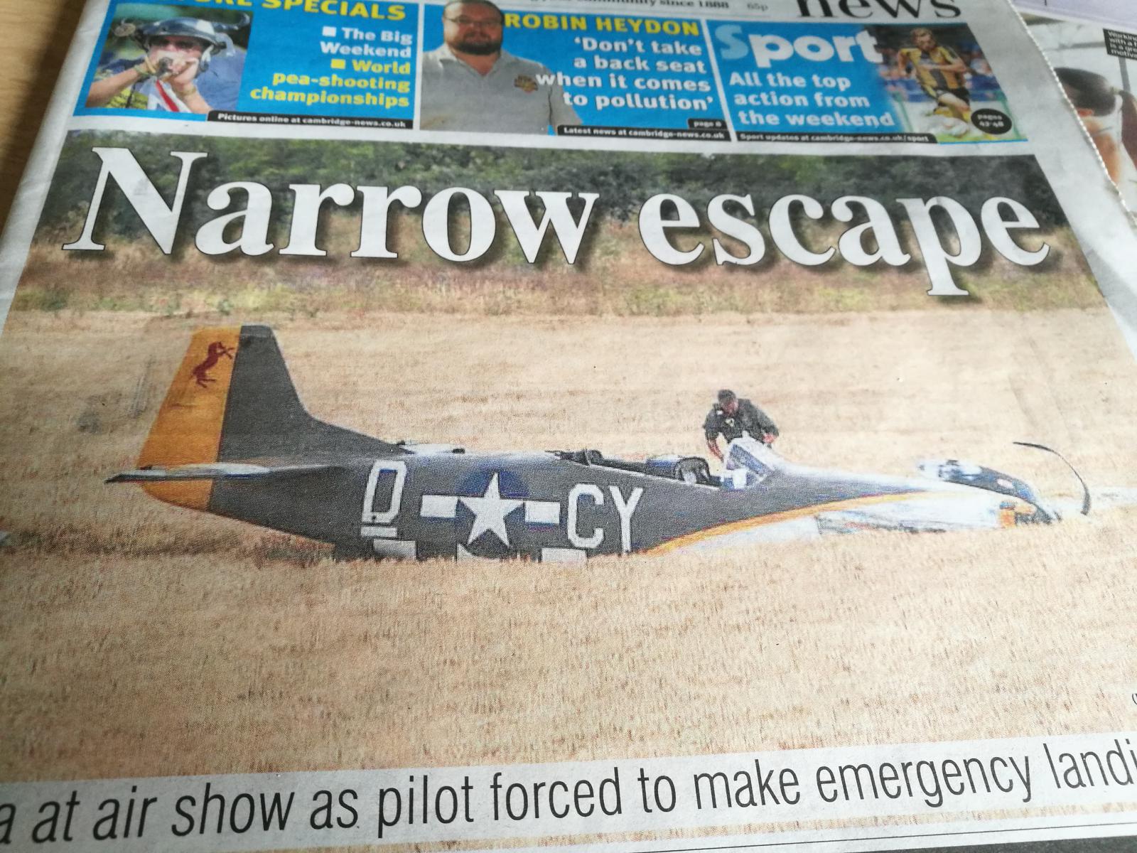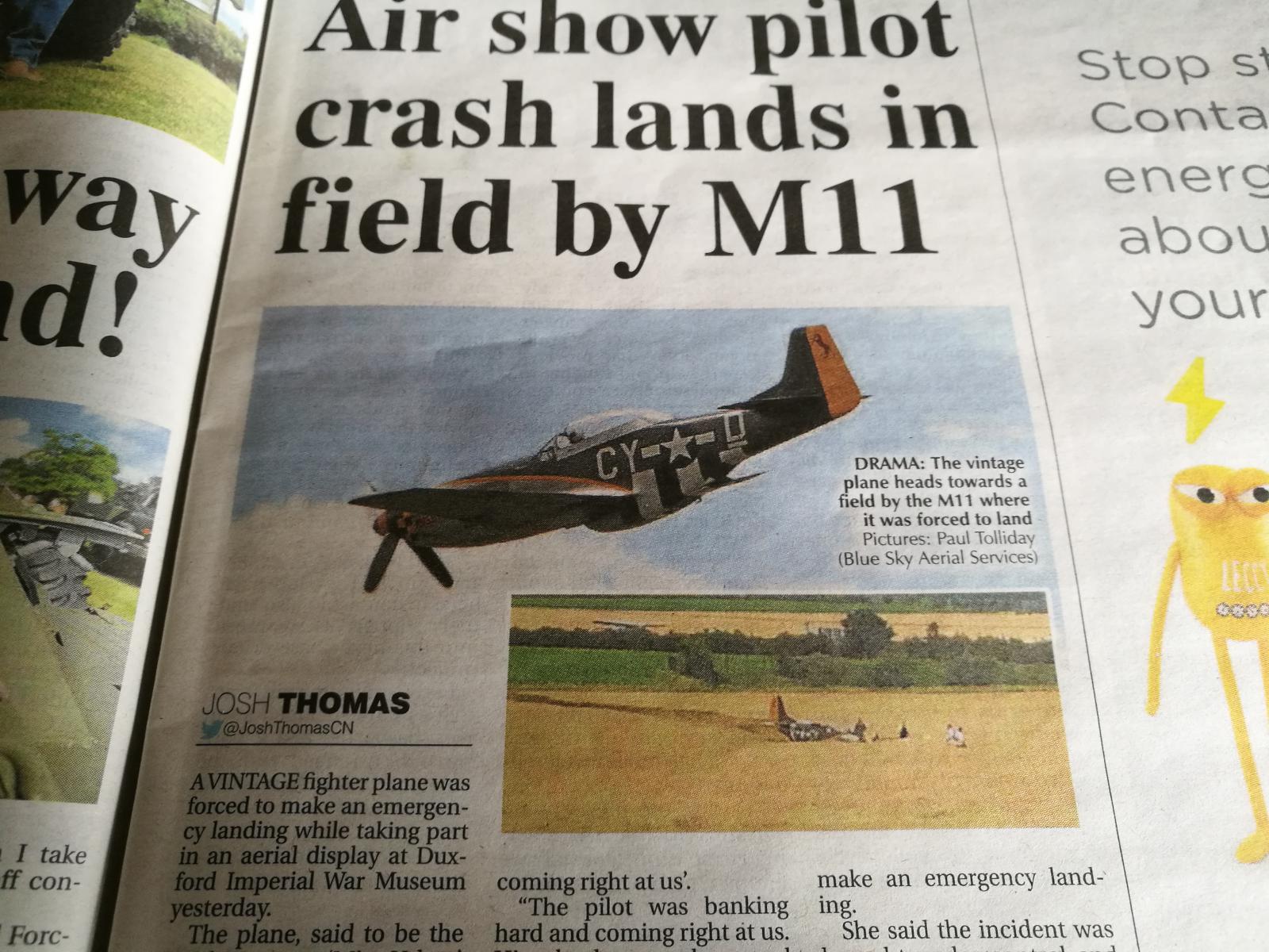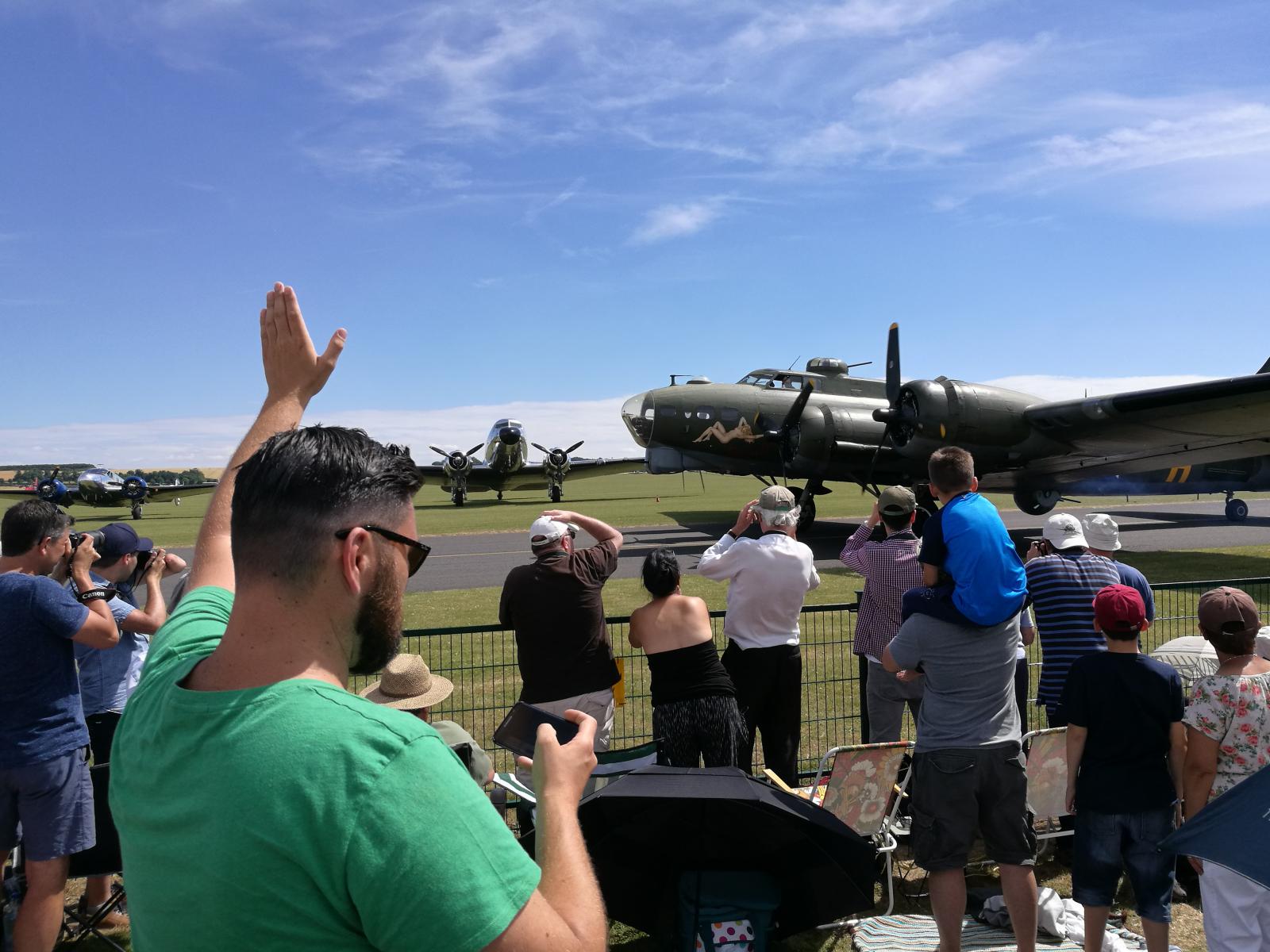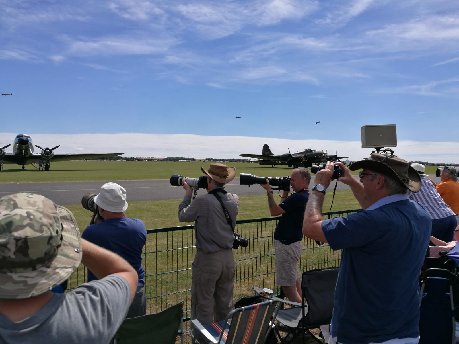 Vil du oppleve ekte flynostalgi, så ta en tur til Duxford Airshow i næheten av Cambridge. Ikke mindre enn 9 Spitfires på vingene samtidig, sammen med bl.a. Mustanger, Messerschmidt, Thunderbolt og B17 Flygende Festning. Masser av godlyd og deilig eksos. En Mustang gikk i åkeren, men det gikk bra med flygeren.