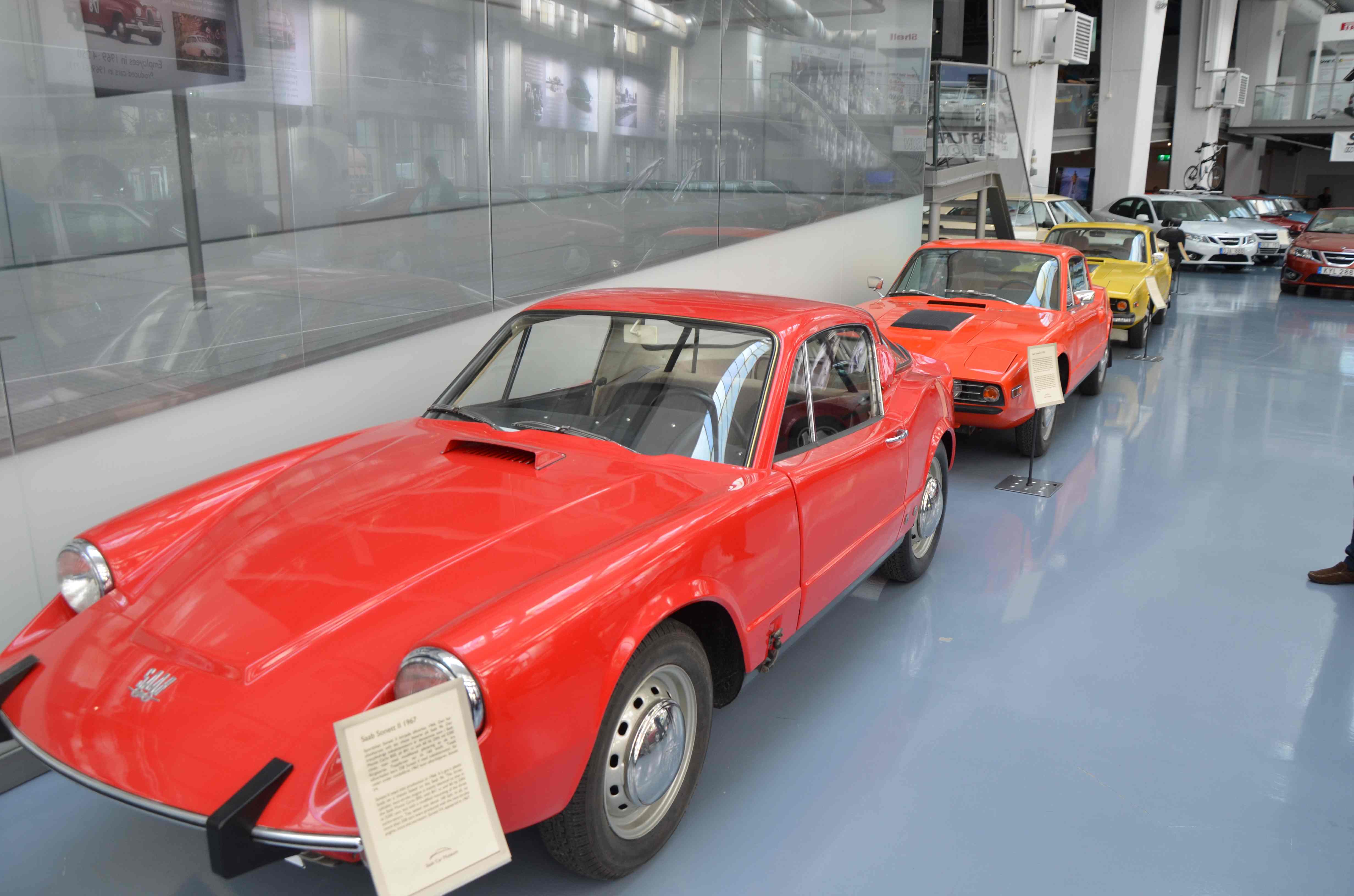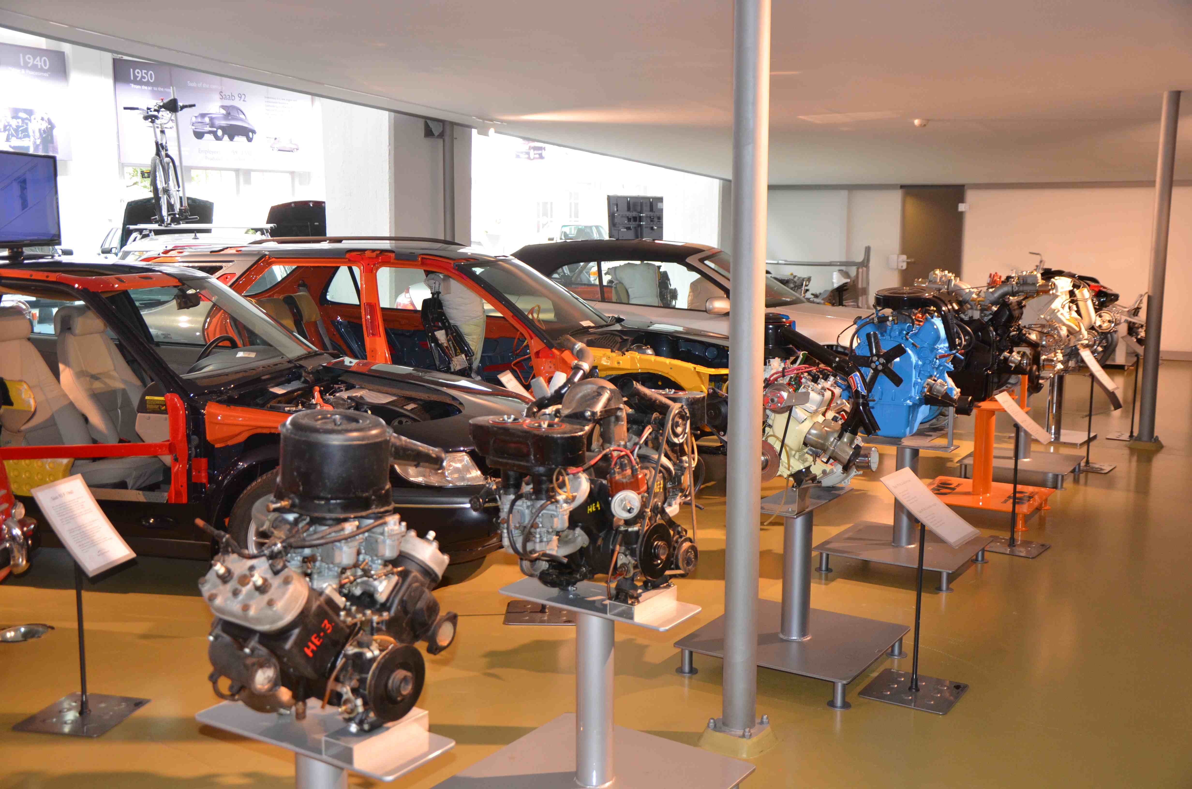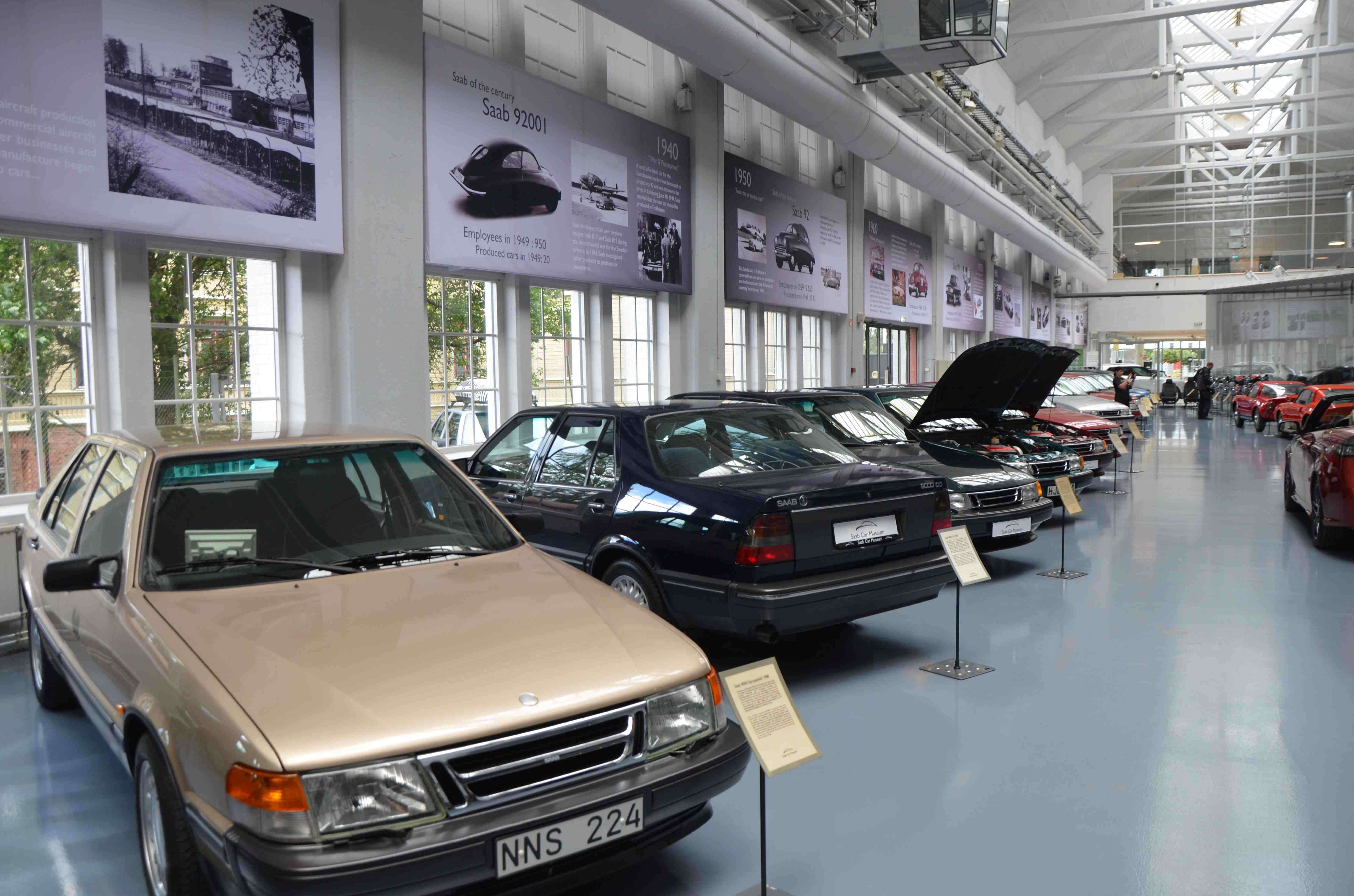 På dag to av turen var det som nevnt Saab museet som sto på planen. For meg som har eid 12-15 Saab biler var det mye interessant bilhistorie å se. Ikke alle kan klassifiseres som veterankjøretøy, men definitivt i kategorien bilhistorisk i og med at fabrikken gikk konkurs og ble nedlagt for mer enn ti år siden. I museet kan en se alt fra de historiske to-takterne til de siste og mest moderne modellene.