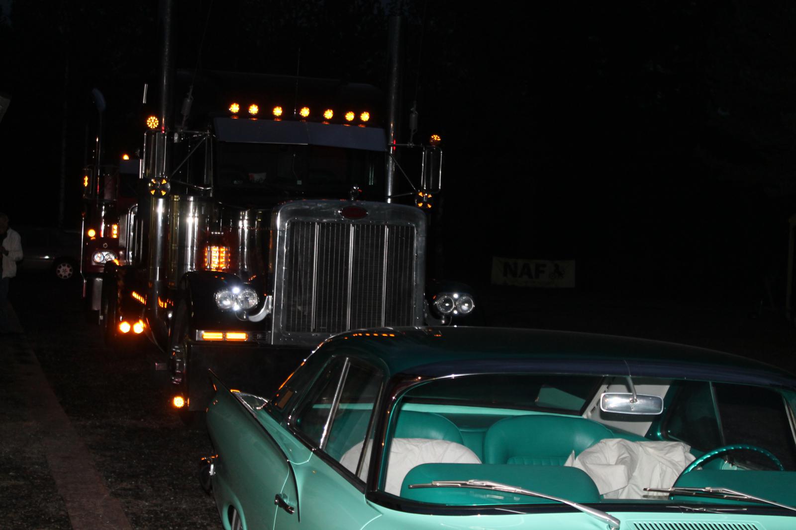 En god del forskjellige biler var også på plass. Små og store. En kortvokst 12mm fyr fra Konnerud stilte sammen med en kompis med de to største. Peterbilt og Kenworth med masse lys og lyd.
