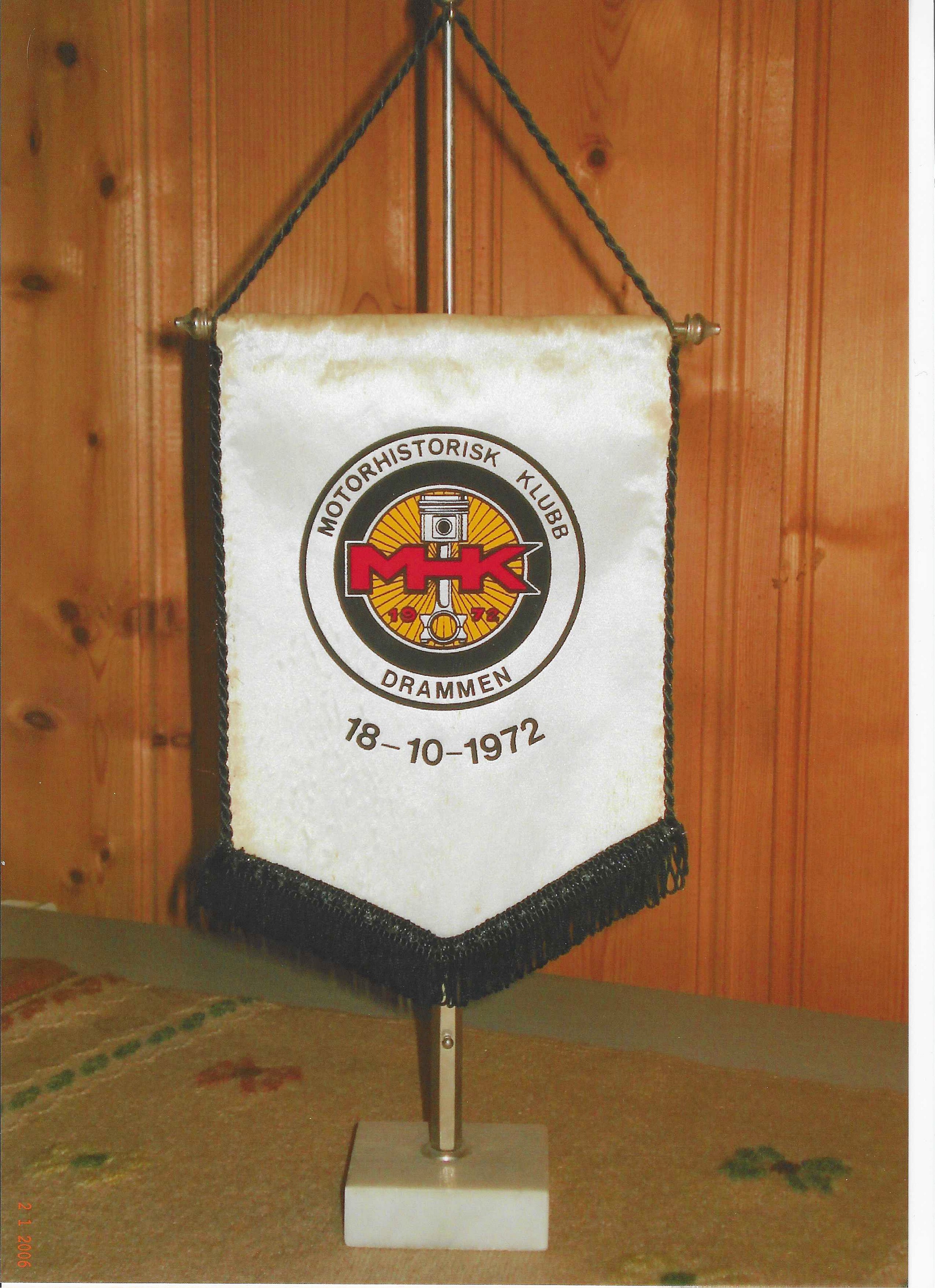 Etter at klubben formelt var stiftet, omtalte man bare klubben under navnet "Gammelbilkluben", men man så etterhvert behovet for å formalisere navnet og på et av de første møtene på klubbhuset på Åskollen bestemte man at det skulle arrangeres en navnekonkurranse om klubbnavn og klubbmerke. Det kom inn en 8 - 10 gode forslag , men man falt ned på klubbens sekretær Bjørn Sand's forslag om at klubben skulle hete "Motorhistorisk klubb Drammen" og klubbmerket dertil, var så bra at det fortsatt lever som klubbens logo den dag i dag! Klubbavisa, som allerede hadde kommet ut med noen eksemplarer, ble også etterhvert omdøpt fra "Gammelbilposten" til "Motorhistorikeren". (PS: Alle utgaver av "Gammelbilposten" og "Motorhistorikeren" finner du i arkivet på her på hjemmesida vår. Link her>> /Truls Bj)
