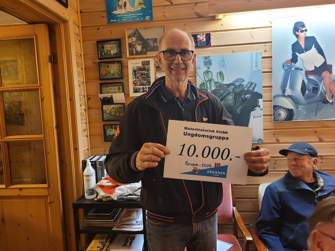 På vegne av klubben og Ungdomsgruppa takket redaktøren etter beste evne de generøse herrer for en overdådig gave. Det er Vespa Club Drammens ønske at deres donasjoner skal kunne skape glede utenfor deres egen kjernevirksomhet og det ønsket skal vi oppfylle.