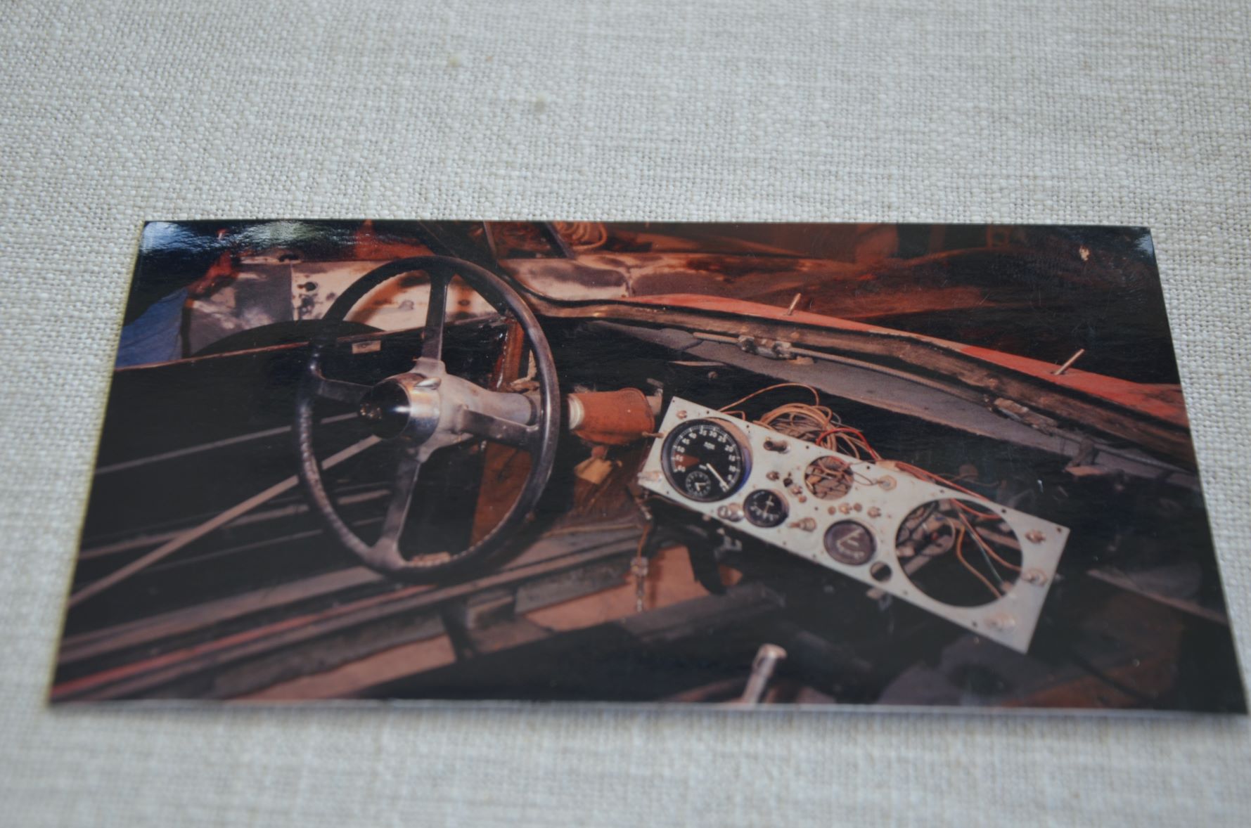 Harald kom via kjente i USA over et restaureringsobjekt av en Jaguar XK 120 som han reiste over og kjøpte i 1999. Ja, for det var virkelig et restaureringsobjekt. Noe en tydelig kan se på bildene. Det skal en god porsjon mot og innsatsvilje til for å starte på et slikt prosjekt. Legg spesielt merke til detaljene på bildene av bilen før jobben startet. En kan bli temmelig målløs av å se resultatet slik det fremstår i dag. Jeg la spesielt merke til bildet av dashbordet. Eller kanskje rettere sagt mangel på dashbord. Men i dag har virkelig Xk’n et aldeles nydelig dashbord restaurert fra originalt. Her har virkelig Harald gjort en fantastisk jobb. Kanskje ikke så rart da jeg erfarte at han egentlig er møbelsnekker. Da bilen ankom Åmot i 1999 var det temmelig godt timet i og med at en ny garasje sto klar. Men Harald var ikke helt klar til å starte jobben enda. Derfor ble bilen, eller kanskje vi skal kalle det objektet på det tidspunktet, heist opp og lagret på loftet i garasjen. Men i 2002 startet det store prosjektet med fullstendig restaurering. Et prosjekt som skulle vise seg og vare i 20 år. Bilen ble nemlig ikke ferdig før i år.