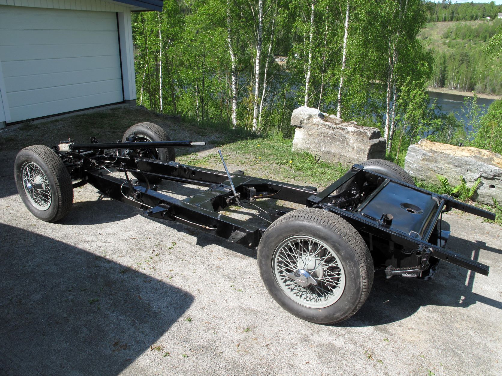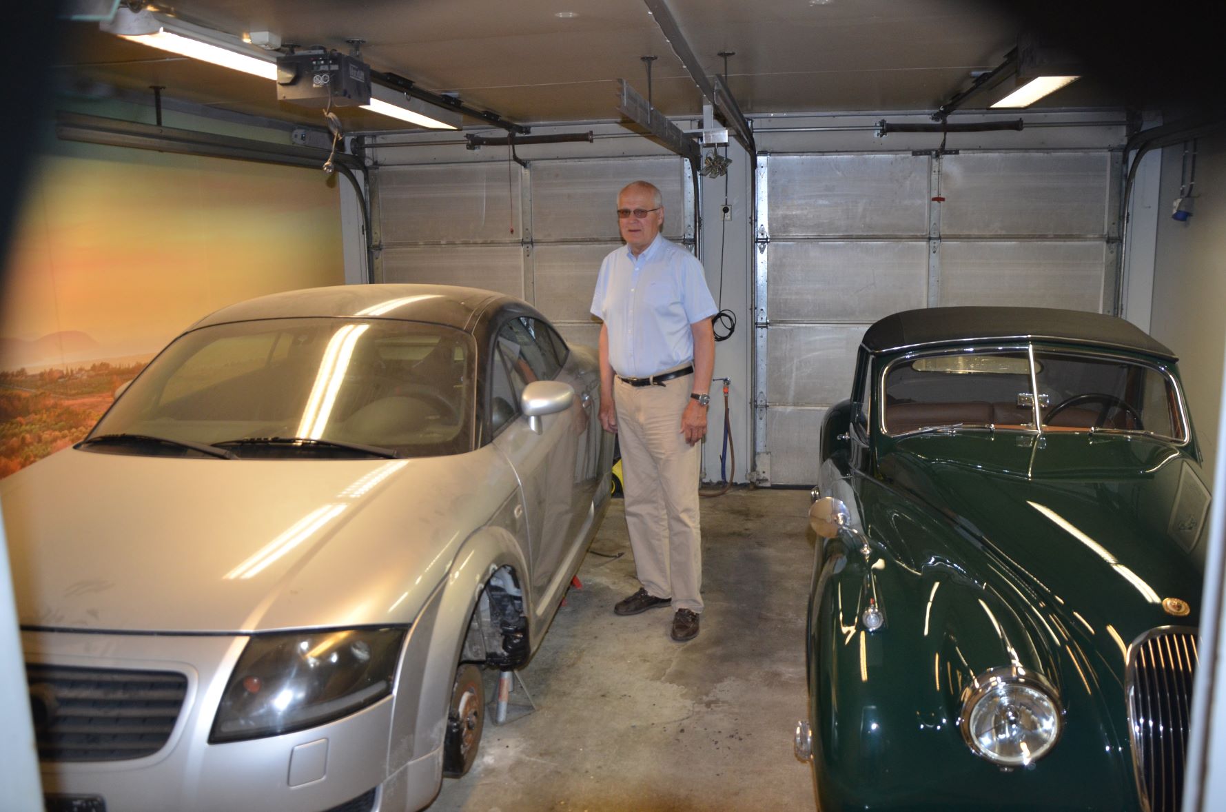 En skulle kanskje tro at man er fornøyd og kanskje litt lei etter 20 år med restaureringsjobben. Men ikke Harald. Nå er han i gang med å hjelpe sin sønn med å restaurere en Audi TT. Riktig nok en mye nyere og mer moderne bil enn Jaguaren. Men kvaliteten på arbeidet blir nok det samme. Jeg fikk se hele bakstillingen til Audien stående nyrestaurert og lakkert på en bukk innerst i garasjen. Også her lyste det god kvalitet.
