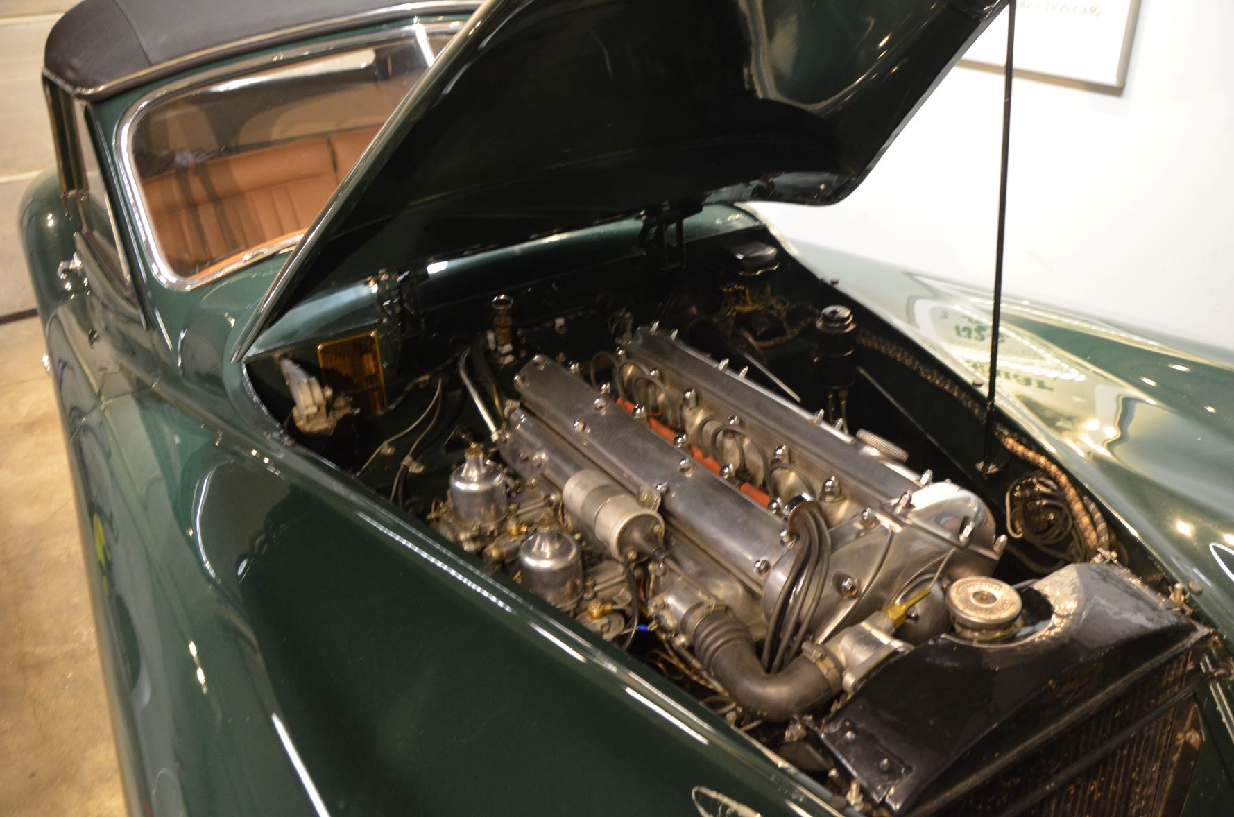 Harald tilstår at han alltid har likt å skru. Derfor kom han til at en restaureringsjobb på en bil kunne være en passende syssel som pensjonist etter at han solgte sin egen møbelfabrikk. Etter å ha besøkt Harald og sett bildene av restaureringsprosessen helt frem til det strålende resultatet som befinner seg i garasjen fra 1999, kan jeg bekrefte at han har bestått prøven som bilrestaureringsekspert. Jaguaren er en fryd å se for oss som liker veteranbiler. Bilen er restaurert til 100 % originalstand. Jeg har mange ganger besøkt internasjonale veteranbilmesser i utlandet. Jeg har sett mange veteranbiler som f. eks Jaguar XK. Harald sitt eksemplar hadde hevdet seg meget god i sammenligning med biler restaurert av proffe firmaer med prislapper på hundrevis av tusener Euro. Her er ingen ting overlatt til tilfeldighetene. Han har selv restaurert alle komponenter i bilen med unntak av skinnsetene som har vært en tur i Polen. Panser, dører og bagasjelokk er i aluminium på denne bilen. Harald nevner spesielt jobben med å montere kalesjen. Han forteller at en proff montør bruker åtte dager på monteringen. Harald er medlem av Vestfold Jaguar Klubb. Her har han hentet mye informasjon og inspirasjon fra gode kamerater med lidenskap for Jaguar.