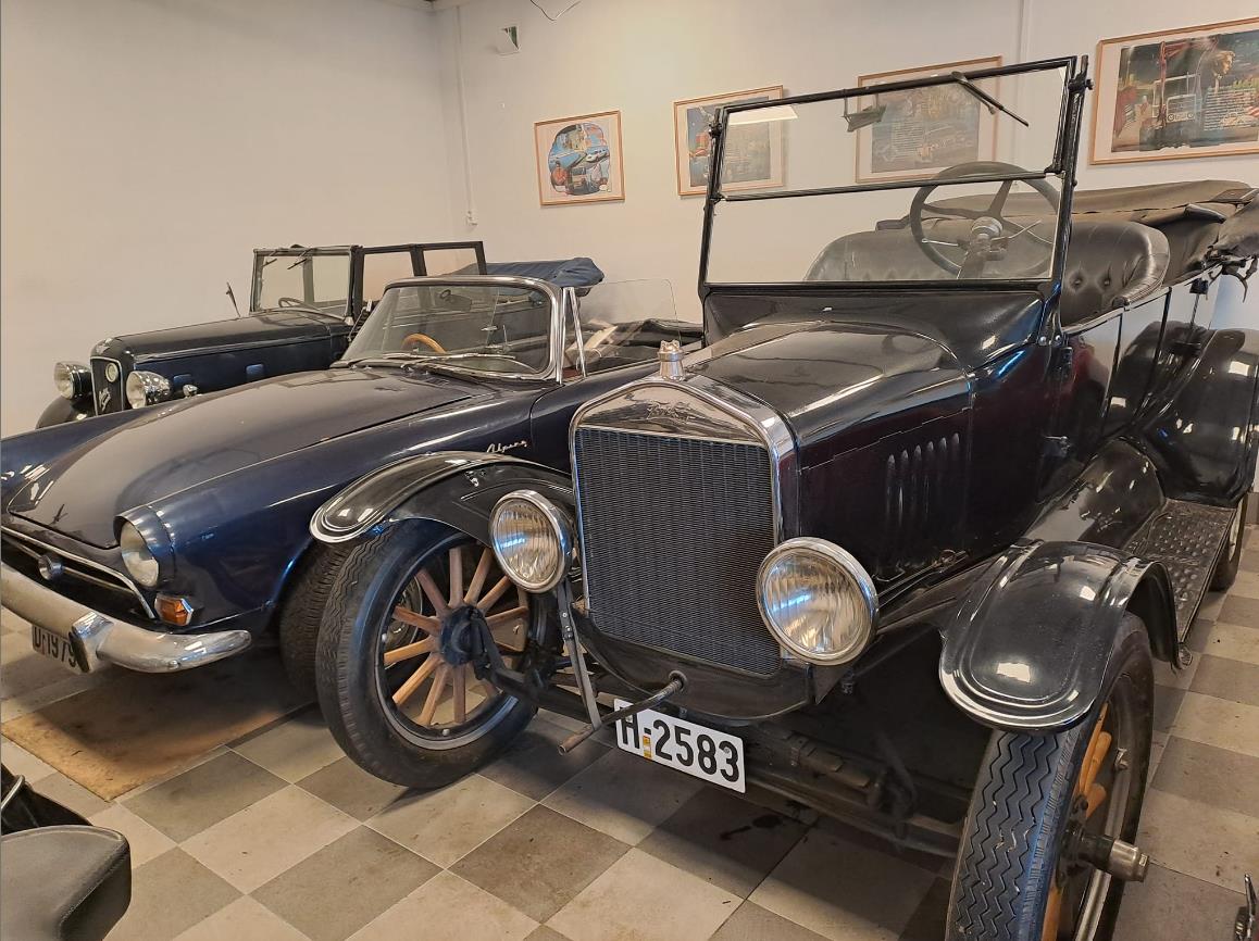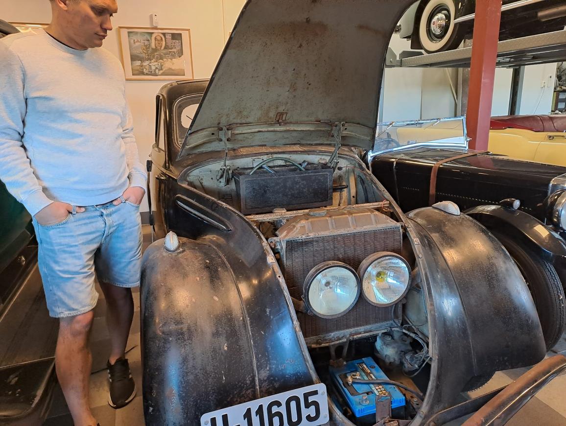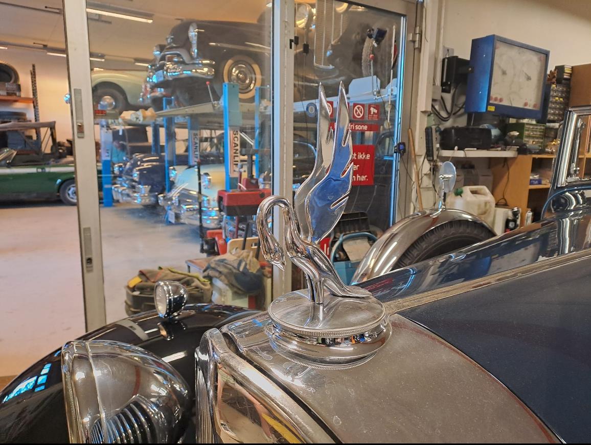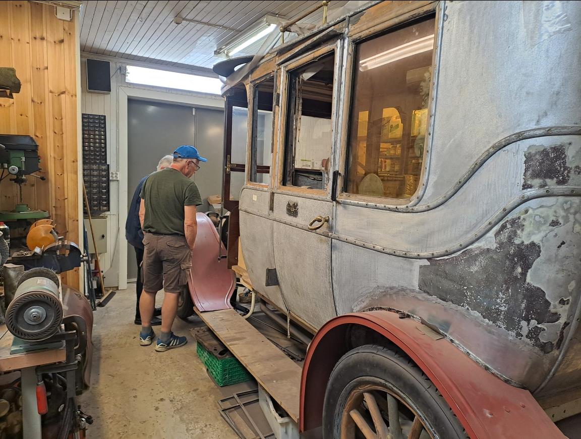 Som dere ser av bildene så har han snekkerverksted og salmakerrom, noe som kommer til nytte når det kommer til biler fra tidlig 1900-tallet med mye treverk og stasvogner med flotte stoffer og skinn. Tror jeg hørte at den eldste var en 1911 modell. Husker ikke merke på den." Korriger meg på modell" om det er feil.
