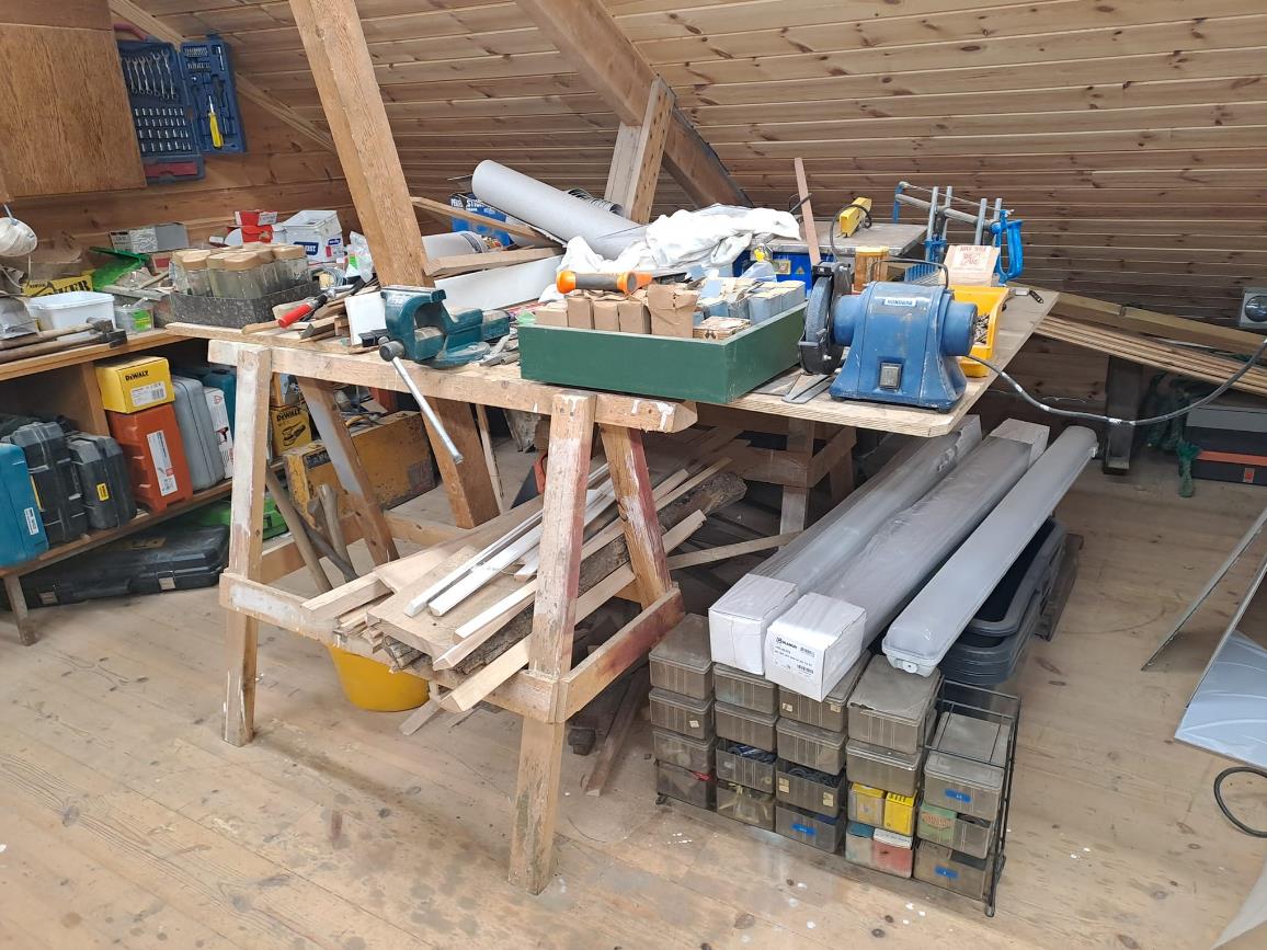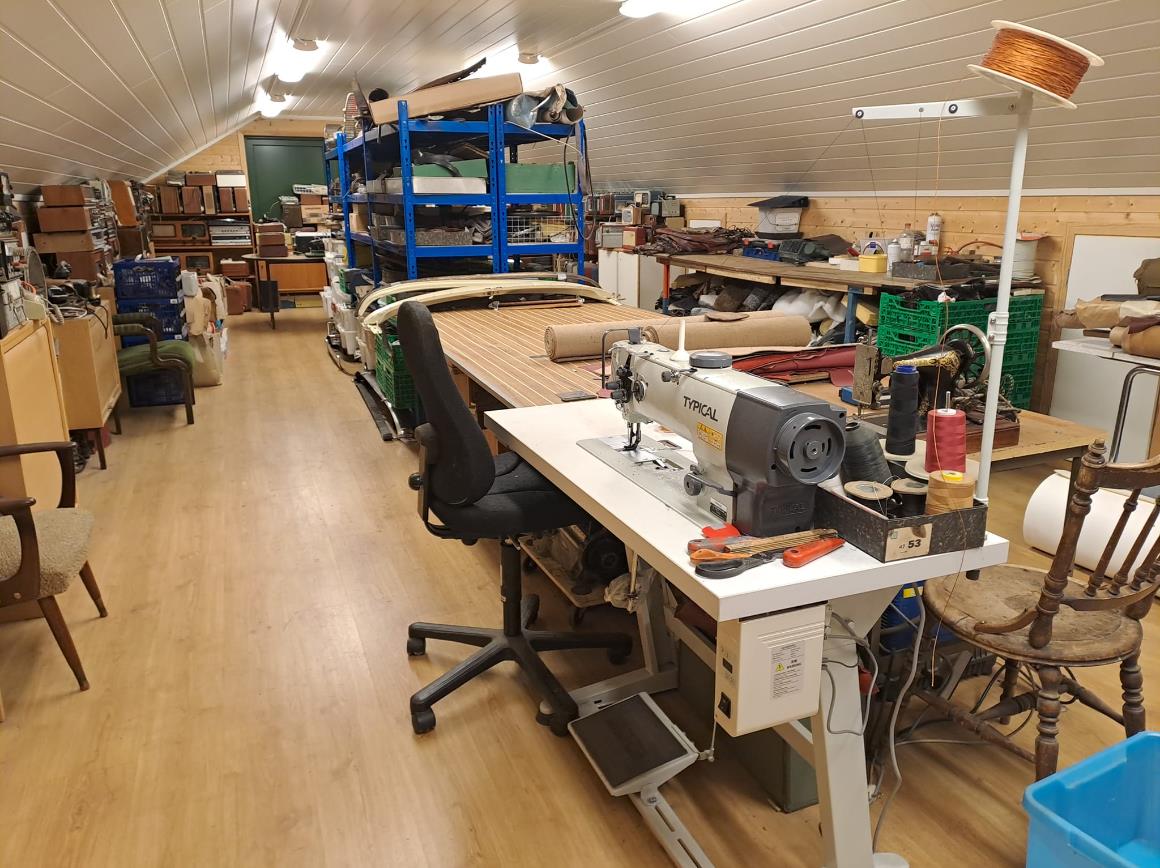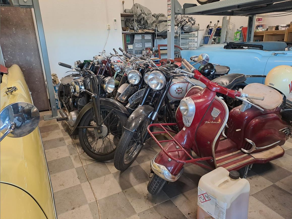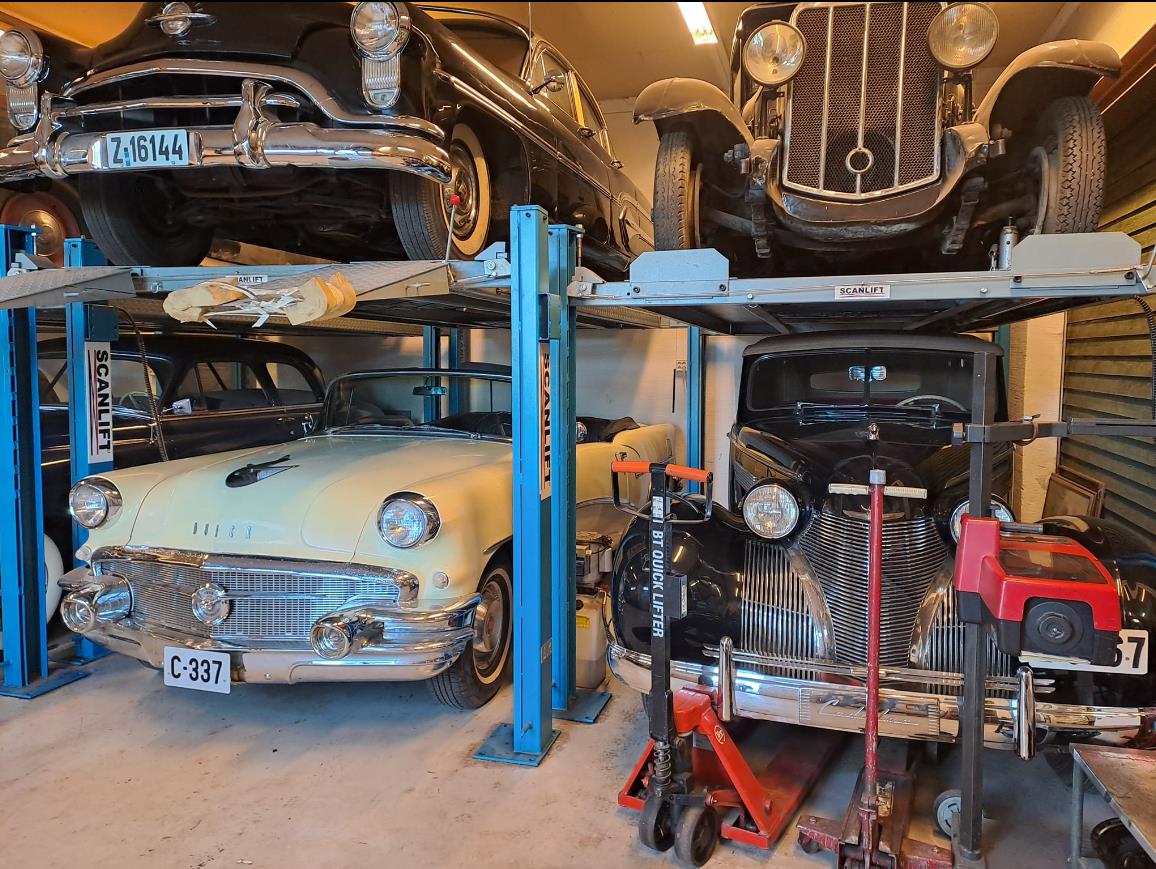Som dere ser av bildene så har han snekkerverksted og salmakerrom, noe som kommer til nytte når det kommer til biler fra tidlig 1900-tallet med mye treverk og stasvogner med flotte stoffer og skinn. Tror jeg hørte at den eldste var en 1911 modell. Husker ikke merke på den." Korriger meg på modell" om det er feil.