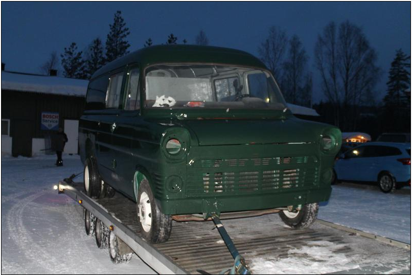 Klubbens yngste har de siste patr årene arbeidet intenst på sin Ford Transit. De har sveiset rust - mye rust - de har overhalt bremser og laget eksosanlegg for å nevne noe. Nå nærmer prosjektet seg fullførelse, det er sjølve sjarmøretappen som står igjen. Som man ser er bilen lakkert, og fargen forteller mange hva det skal bli av denne bilen. Politibil selvsagt. Det vet nok de fleste fra før. Bilen har en fortid som brannbil i Tyskland og er allerede utstyrt med både sirene og opplegg til blålys. Gratulerer med vel utført arbeide, det blir spennende å følge innspurten.