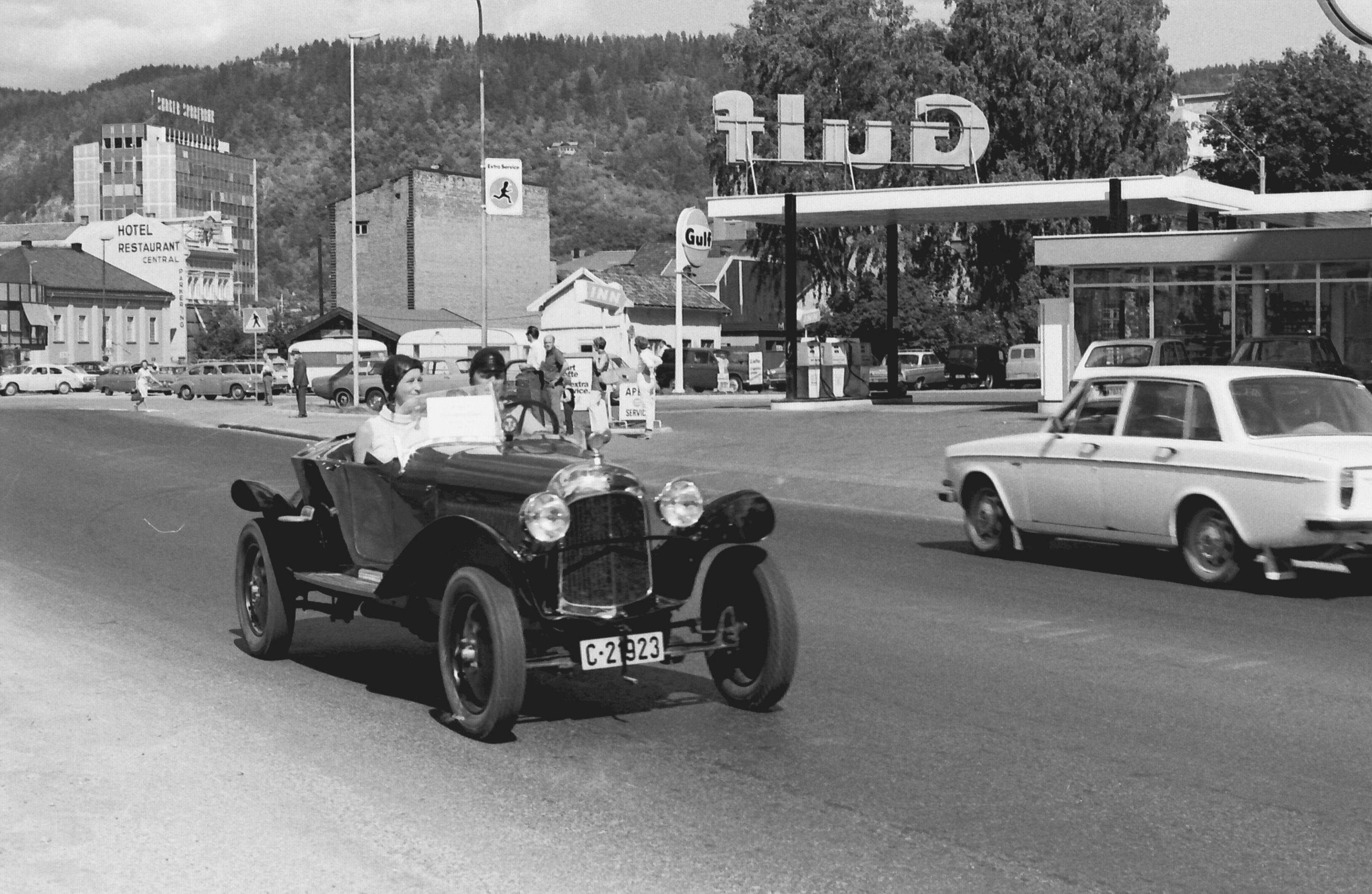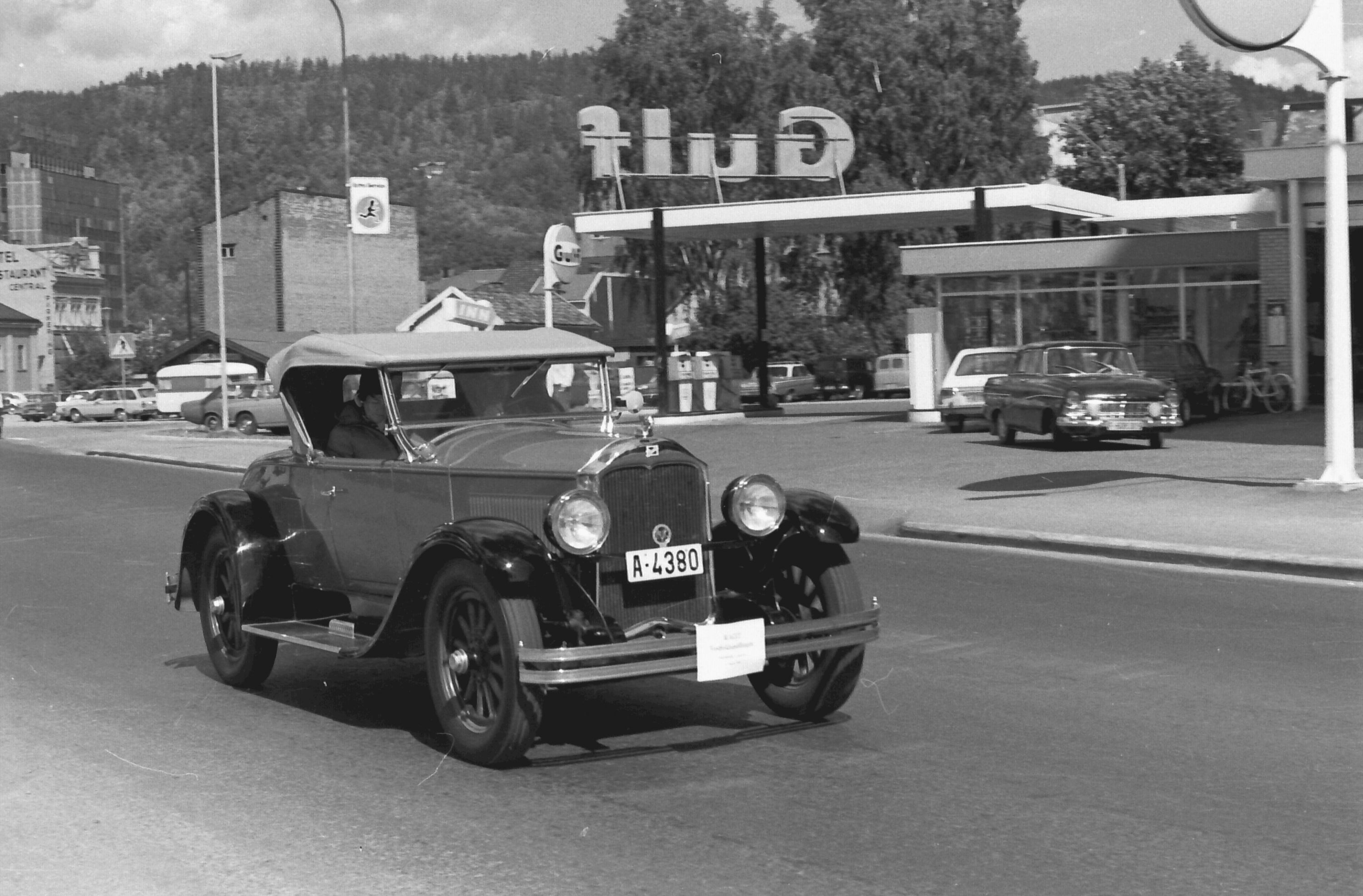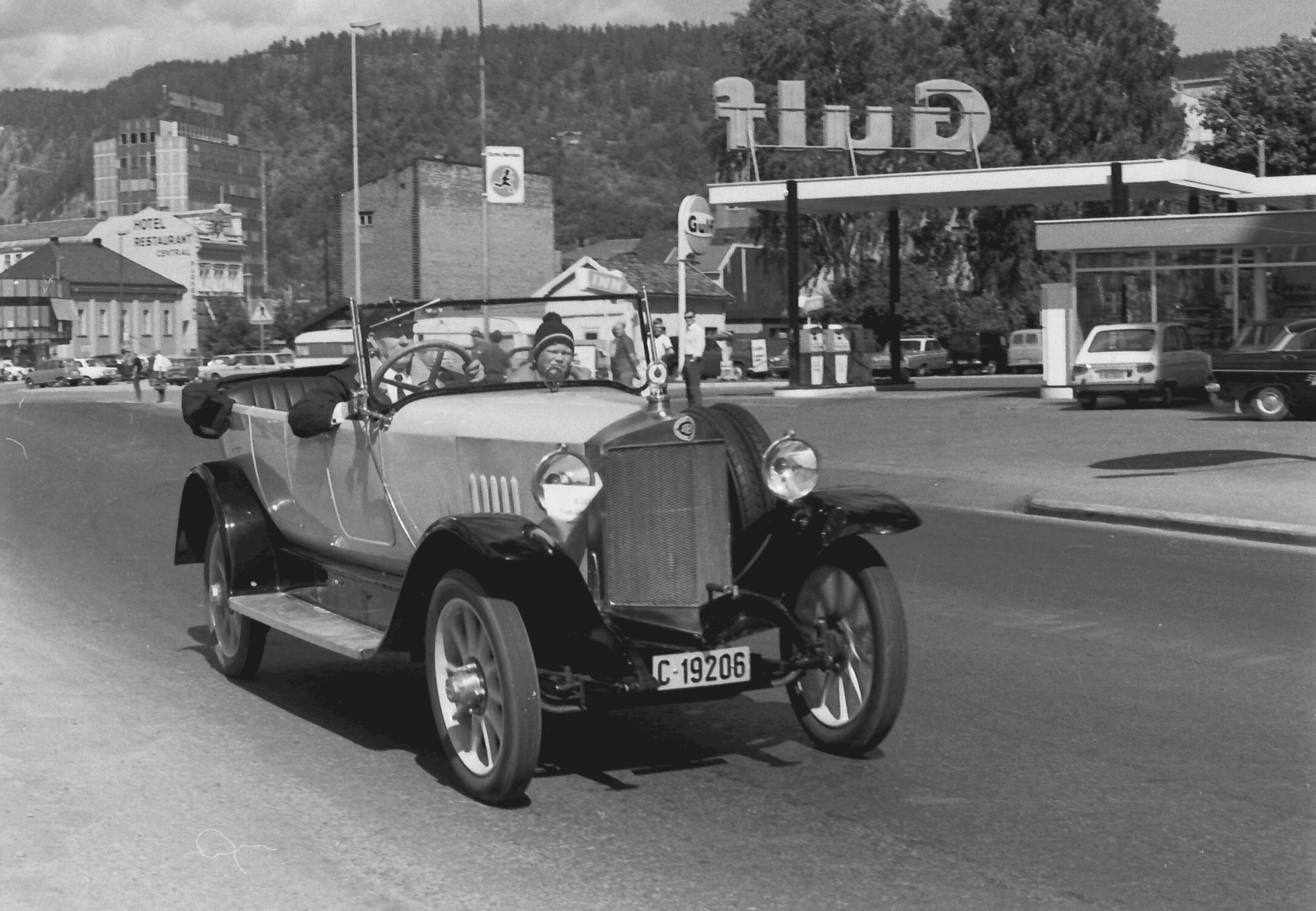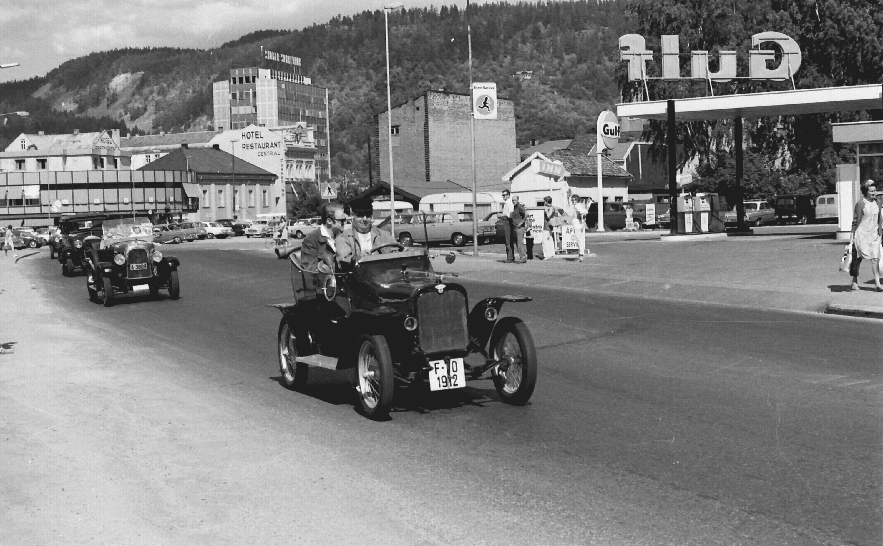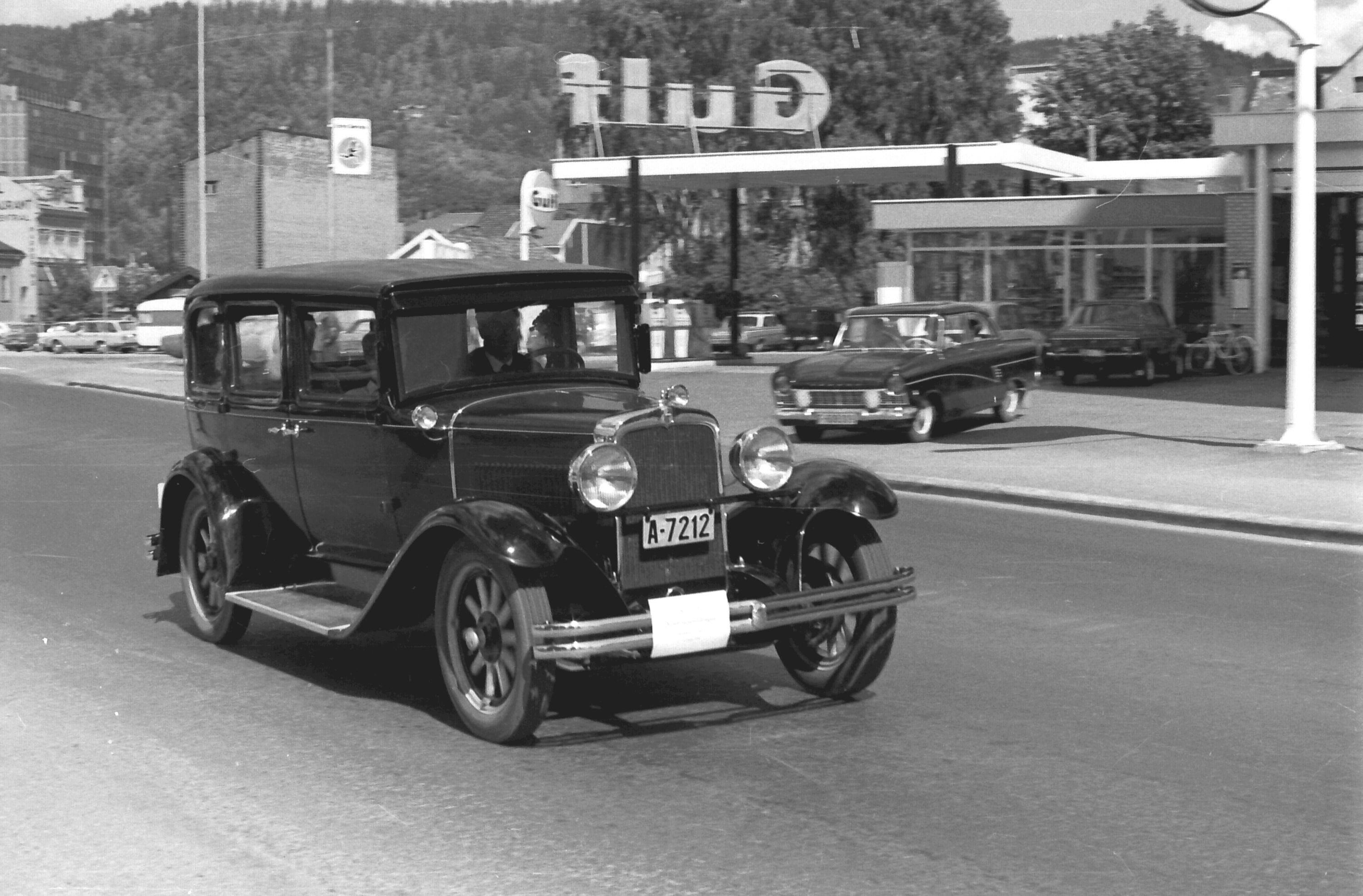 Norsk Veteranvogn Klubb på tur gjennom Drammen i 1970