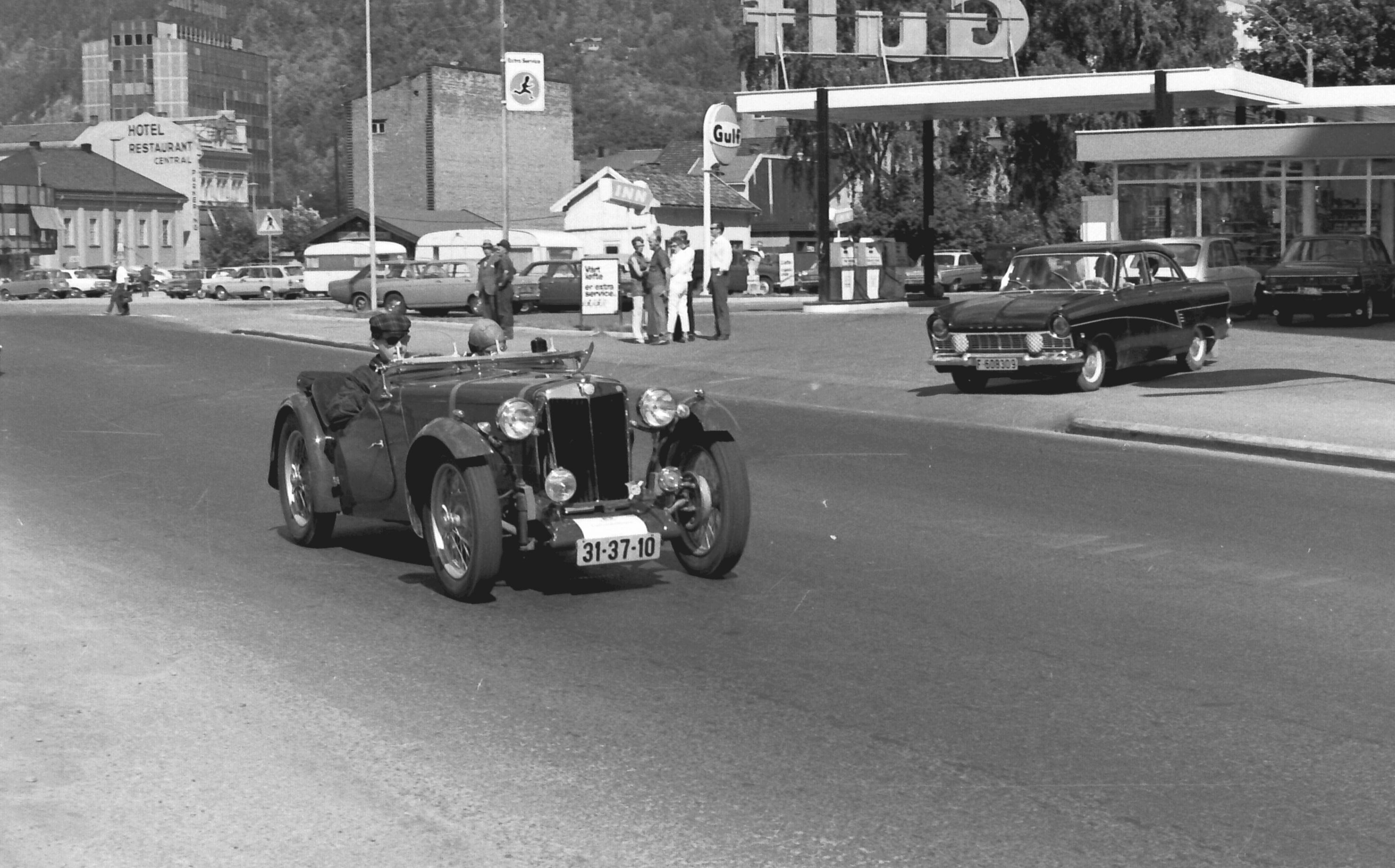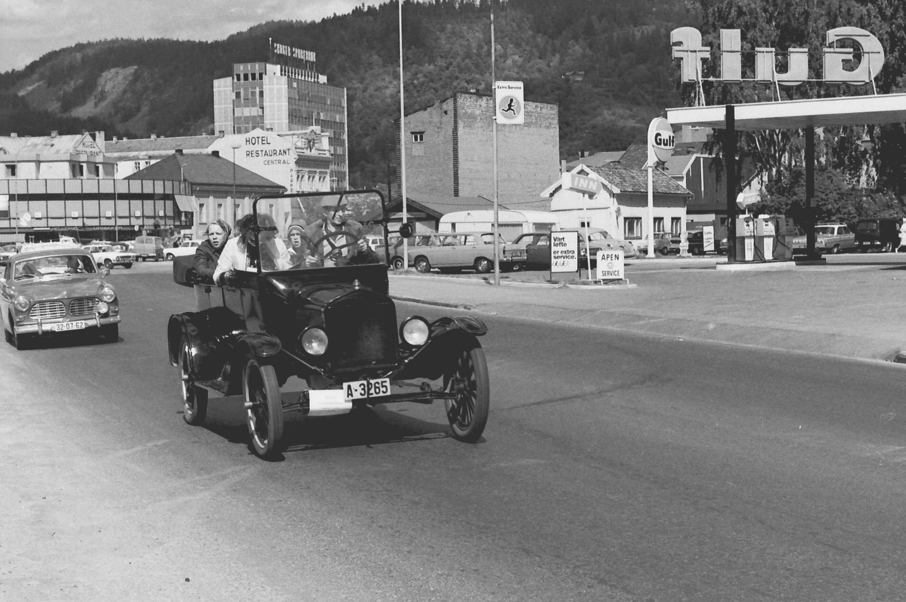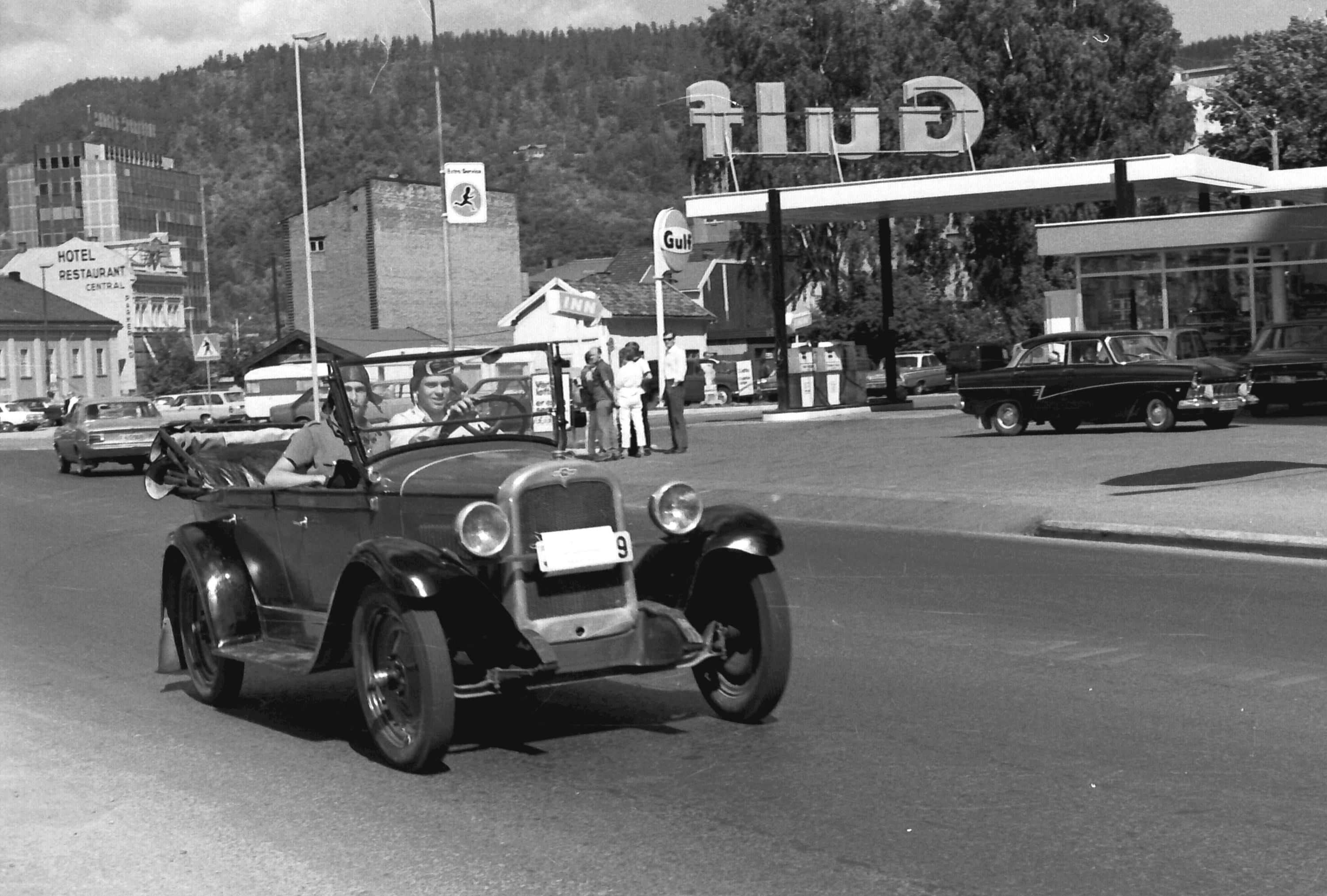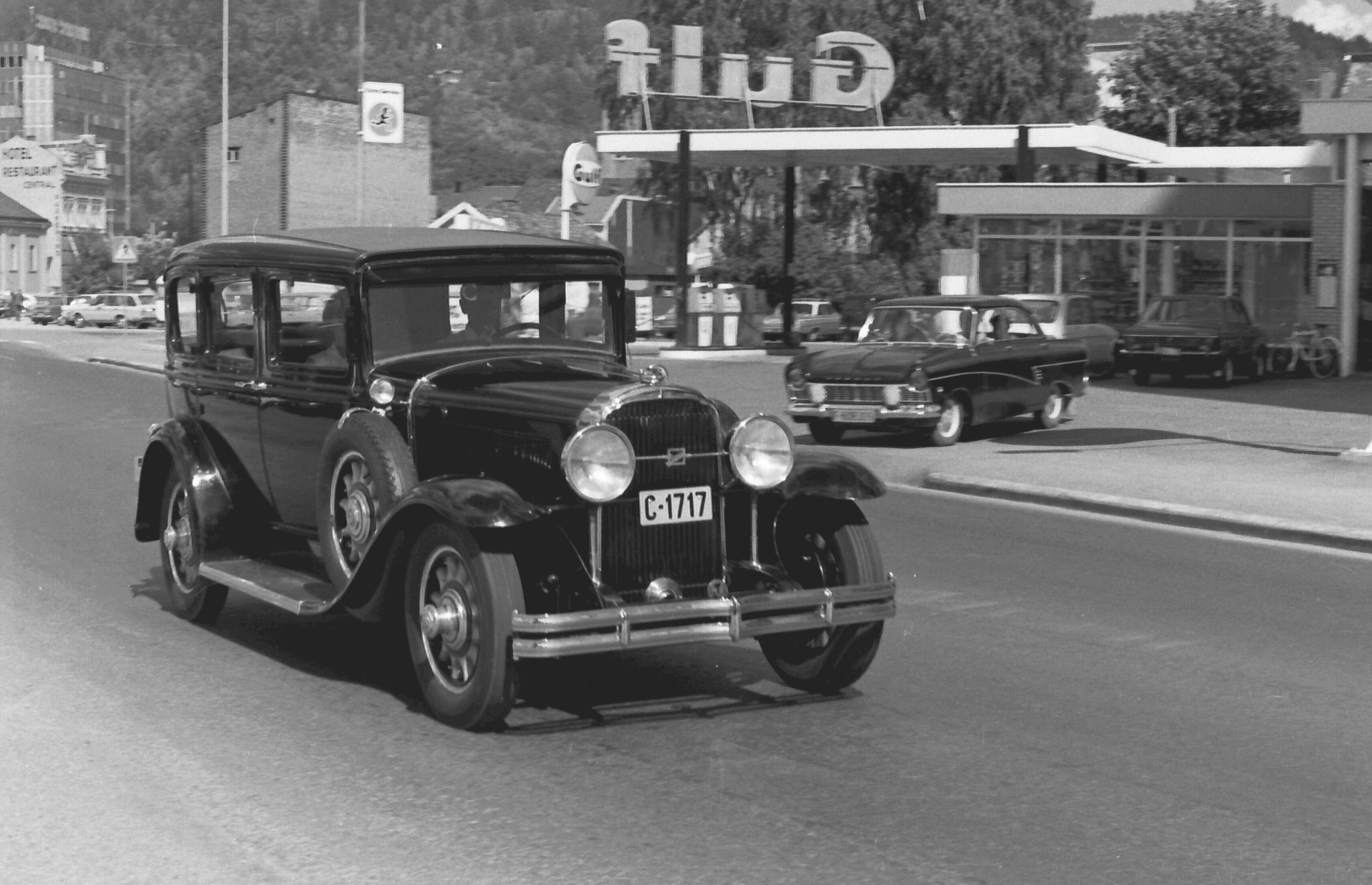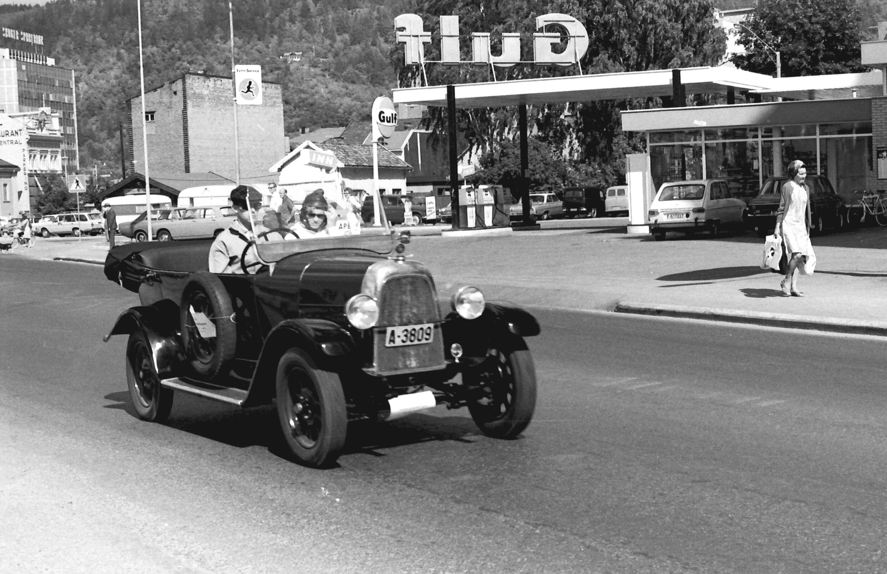 Norsk Veteranvogn Klubb på tur gjennom Drammen i 1970