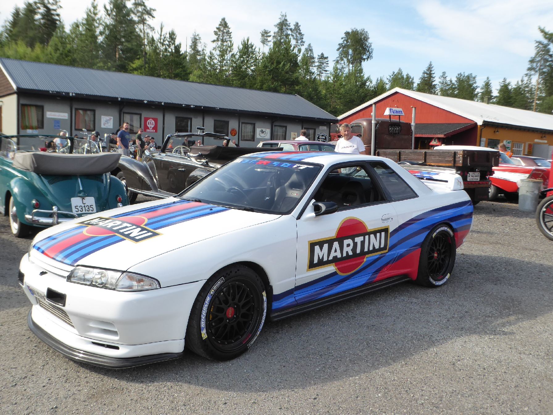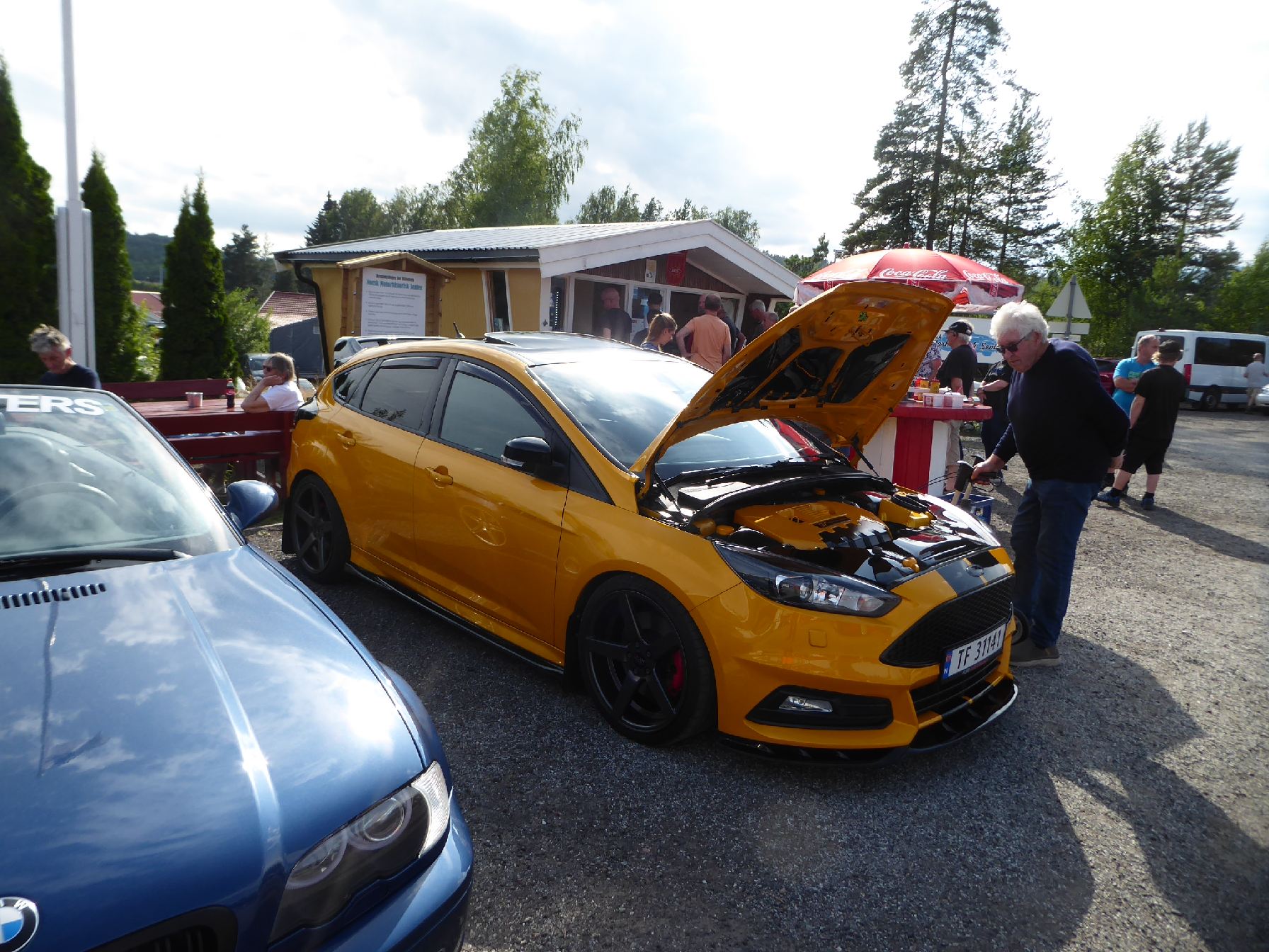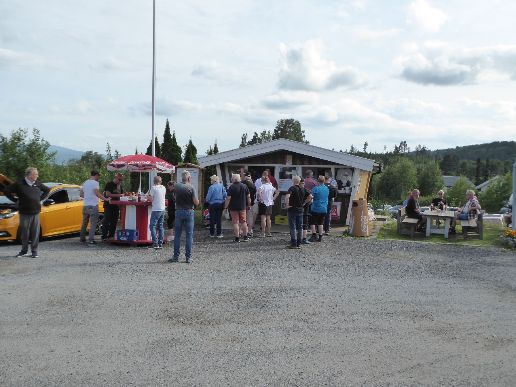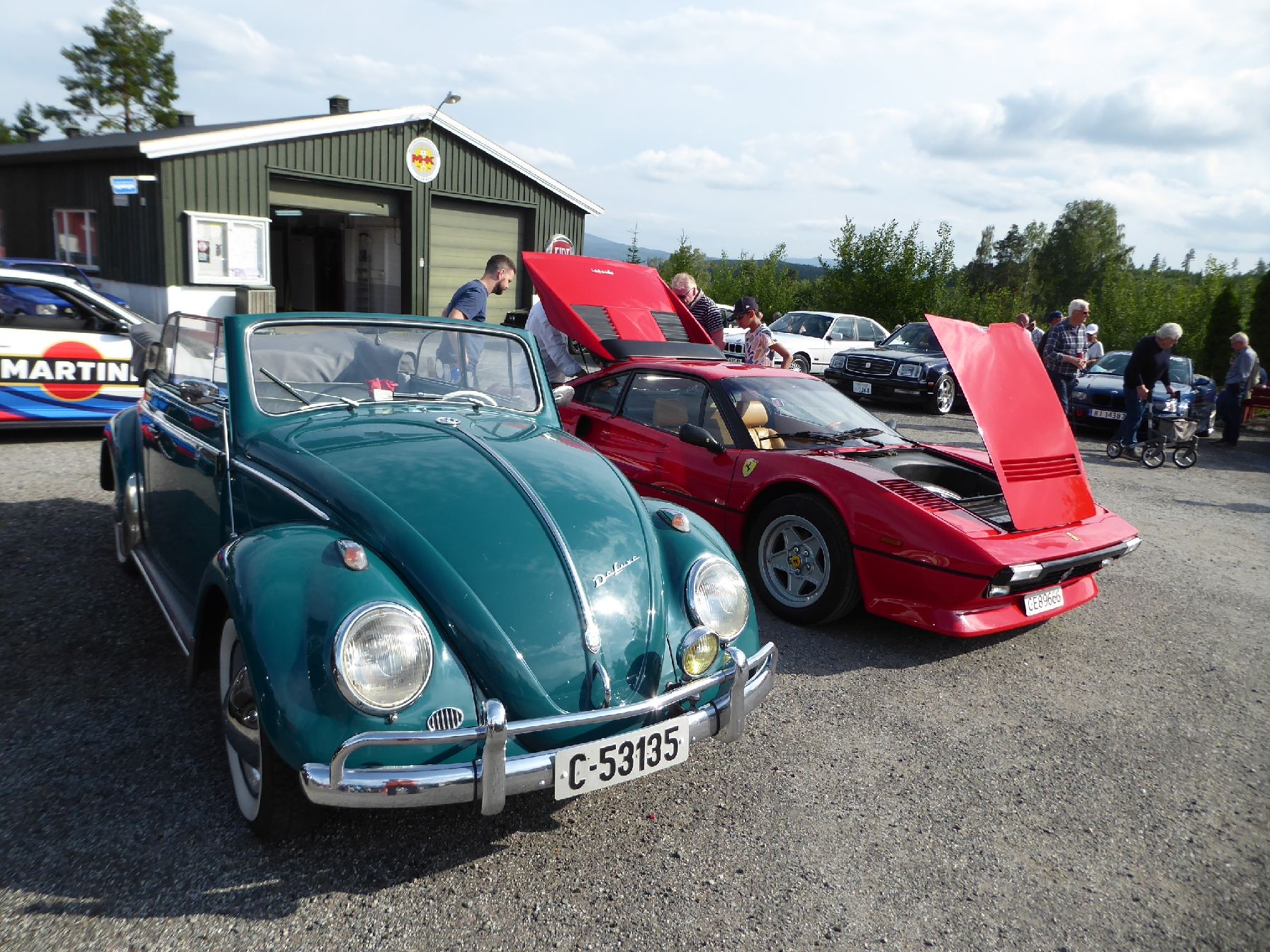 Nok en onsdag med "fullt hus" inne, og lange pølsekøer på Burud! Været ble mye bedre enn yr.no meldte, og etter hvert fylltes inneplassen opp med både veteraner, entusiastblier og tohjulinger. Kveldens spontanbestemte tema var entusiastbiler med sjåfører under 40 år, og kremplassen ble etterhvert fyllt opp med unge entusiasters biler. Her var det mange jeg ikke hadde sett før, og håpet er at vi ser disse ungdommene igjen på Burud i framtida. Vi trenger absolutt å få med yngre krefter, både som besøkende og som kan tenke seg å være med å ta i et tak på driften av Burud!