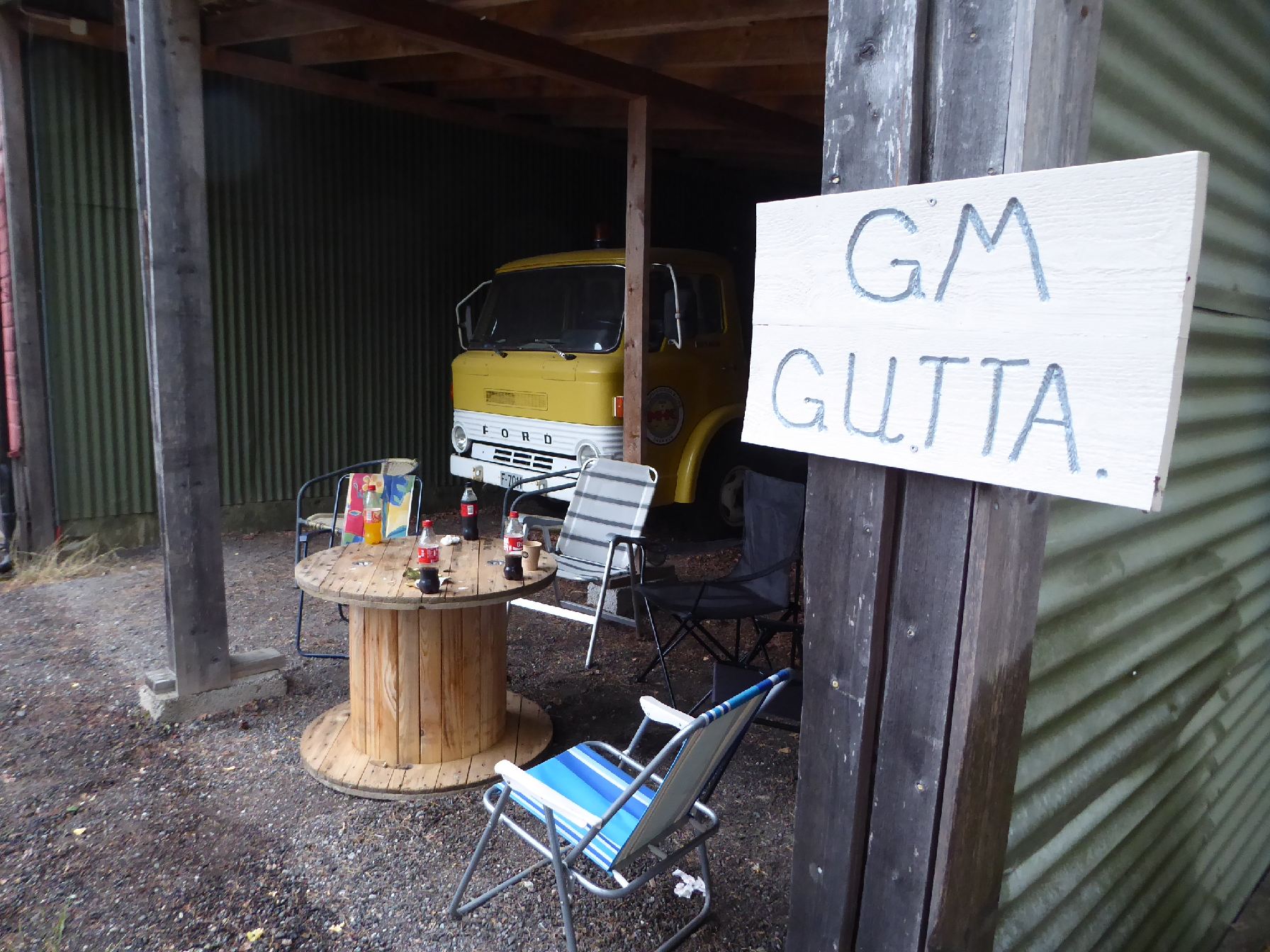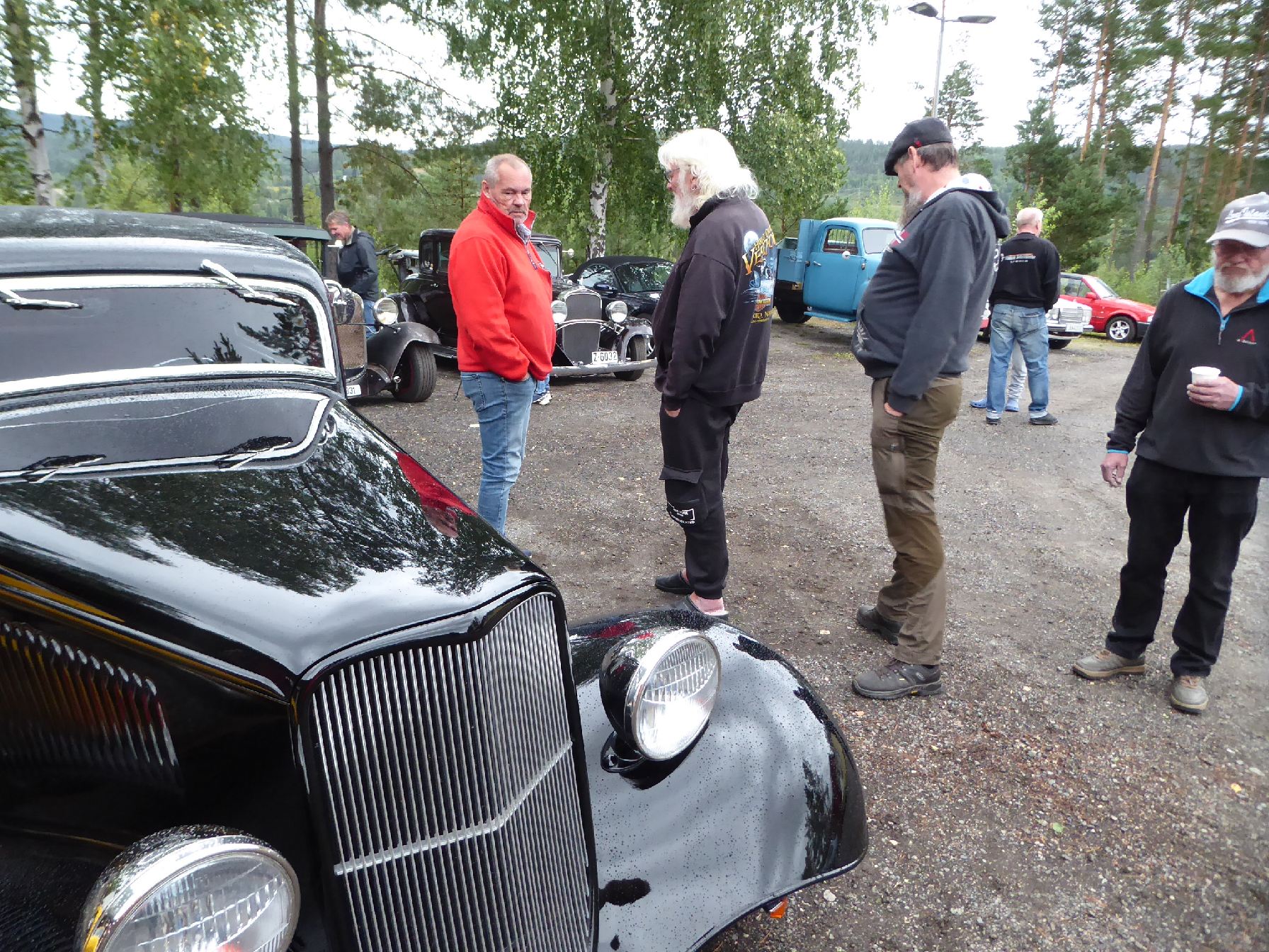 Det var opphold fram til åpningen klokka 17, men da kom de første regndråpene gitt. Det ble ikke akkurat noe skybrudd, men det det dryppet da ned noen millimeter over Burudmoen denne kvelden. Folk lot likevel til å kose seg så det ut som, og når regnbygene tiltok søkte folk ly under taket på Bensinstasjonen, i muséet eller i verkstedhallen. Innimellom regnbygene var det kø i kiosken....