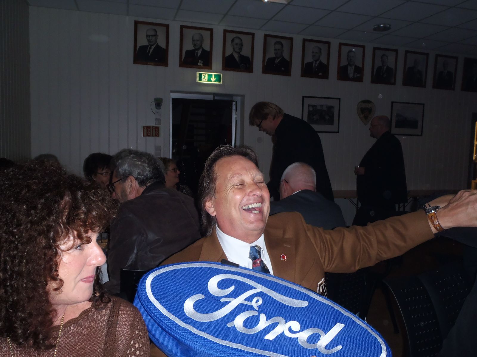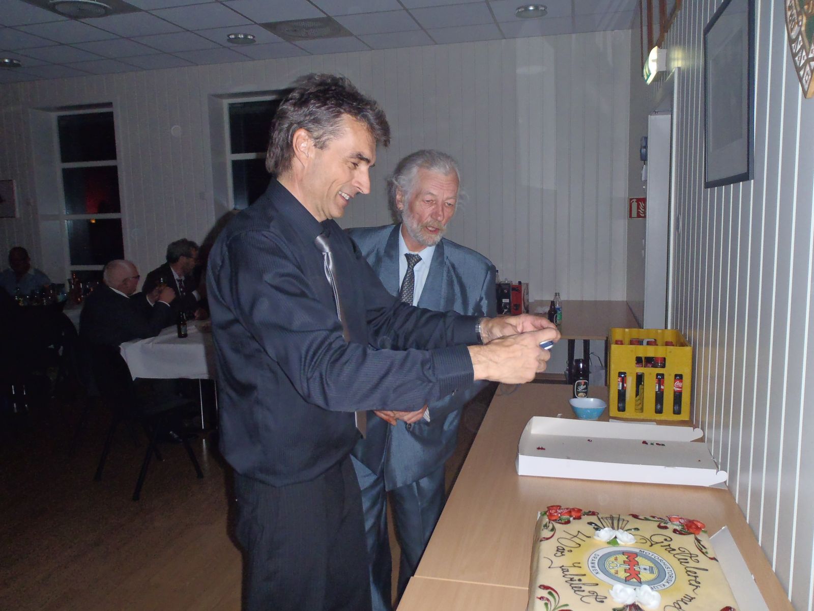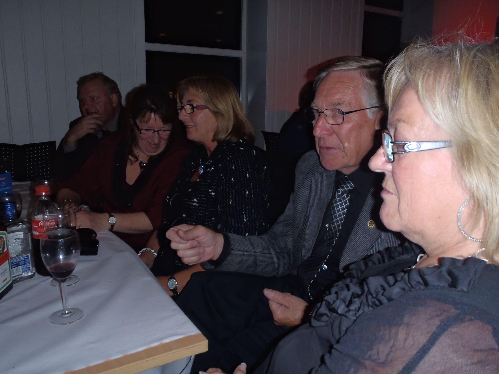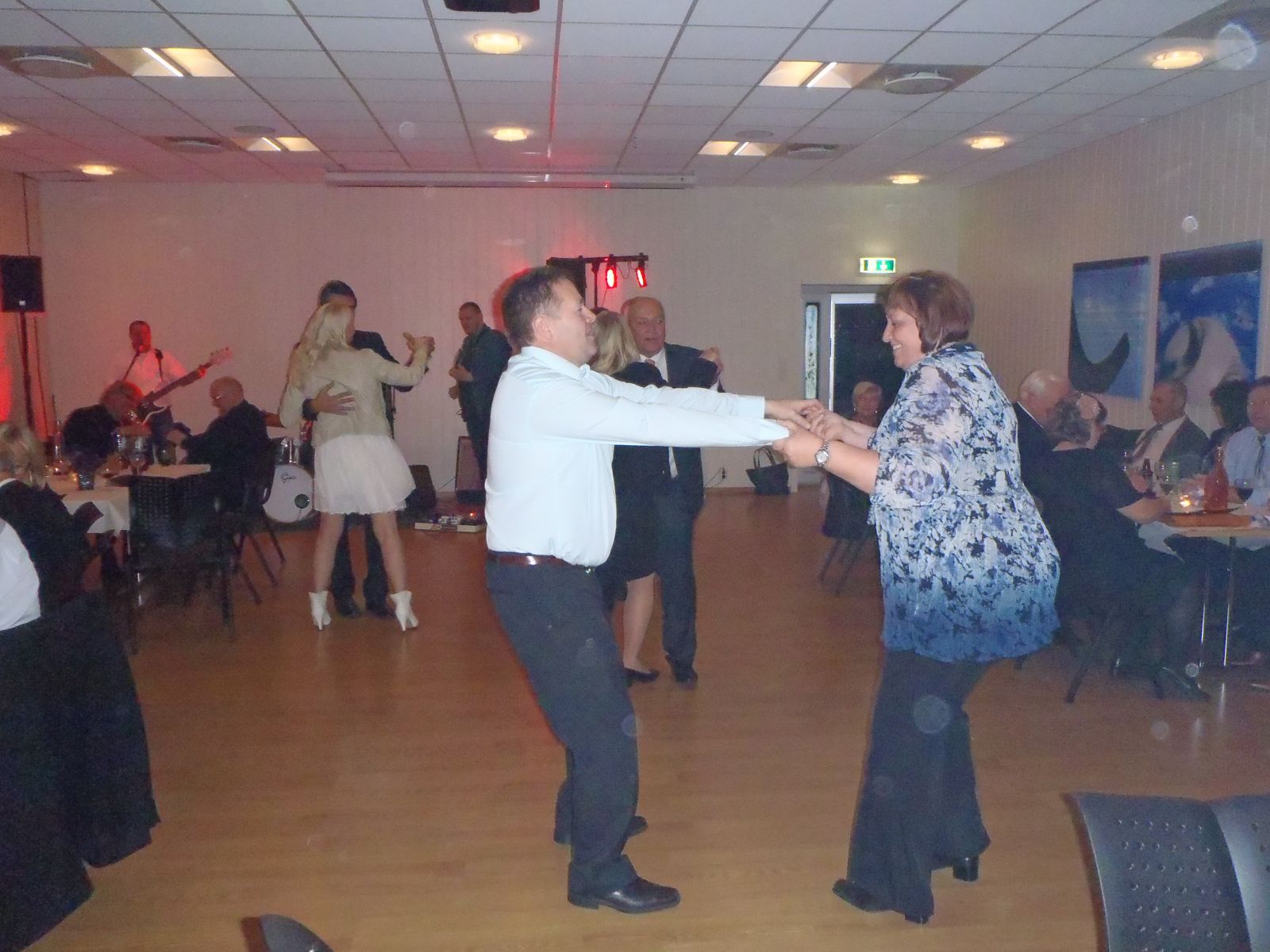 Ut over kvelden fikk de som ønsket det svingt seg til levende musikk og det ble servert kaffe, kake med avec. Vi hadde fått bestillt en flott kake med vårt klubbemblem. Loddsalg ble det også og alle loddene ble solgt. Ikke dårlig.
