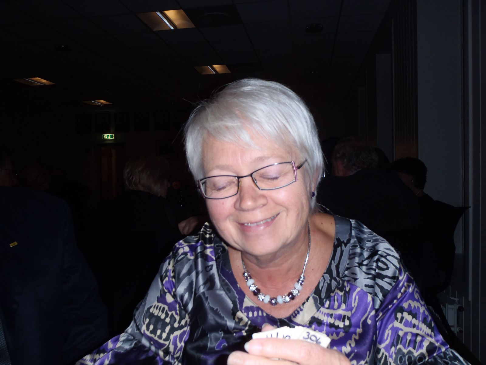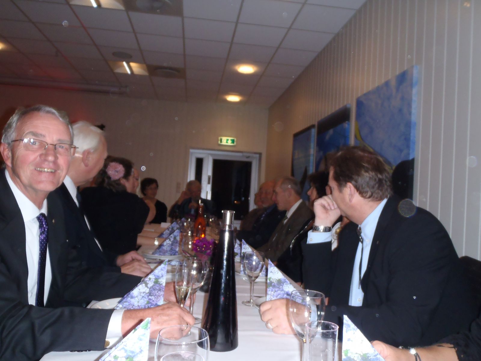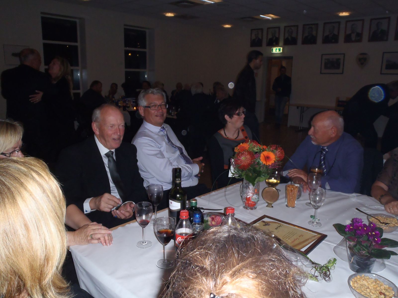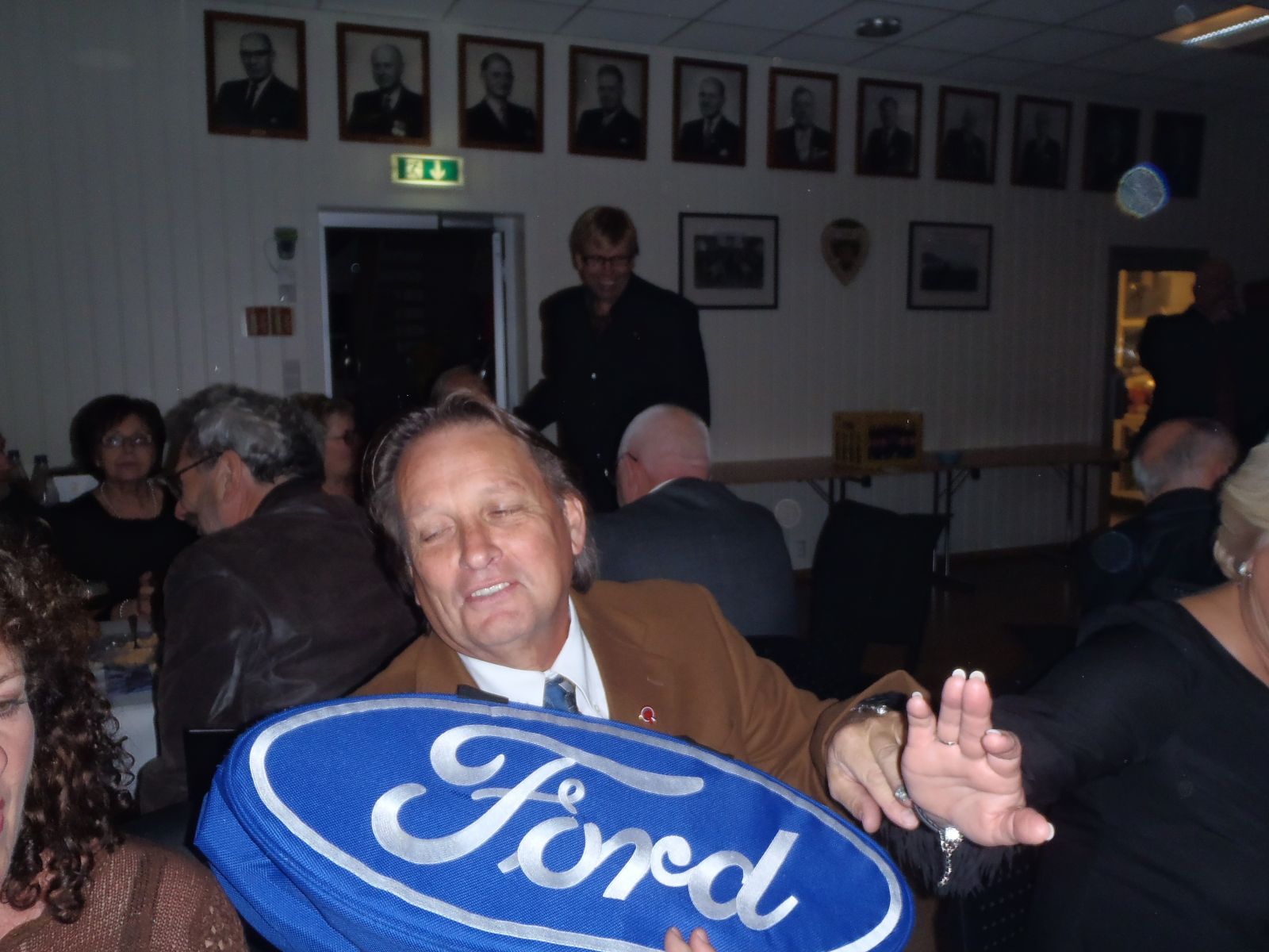 Ut over kvelden fikk de som ønsket det svingt seg til levende musikk og det ble servert kaffe, kake med avec. Vi hadde fått bestillt en flott kake med vårt klubbemblem. Loddsalg ble det også og alle loddene ble solgt. Ikke dårlig.