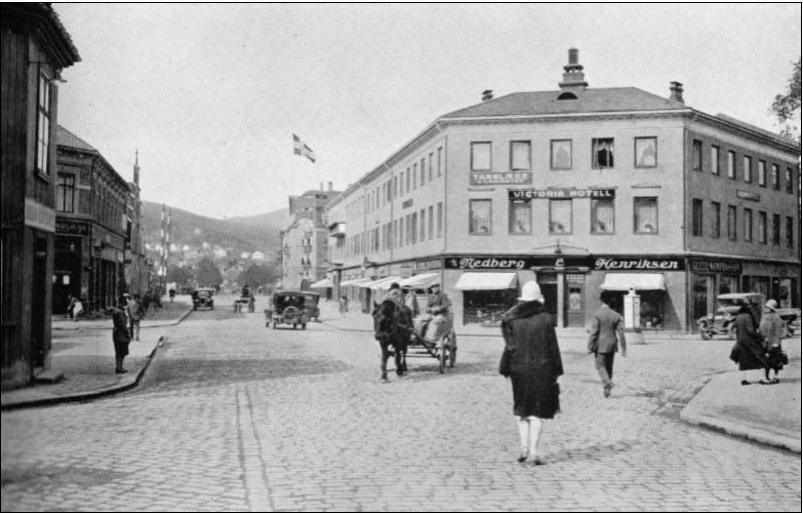 Kollidering har vel skjedd siden tidenes morgen. Man kolliderte sikkert med hest og kjerre, man kolliderer med bil, og nå for tiden kan man lese om alvorlige personskader etter kollisjon front mot front på tråsykkel...... Bildet til Arve Wiborg viser en liten smell i ovennevnte kryss i 1955. Tiltrakk seg mange skuelystne som man ser. Den nærmeste bilen er en ganske ny Vauxhall, den neste antagelig en 1930 Citroen og varebilen som står med rompa til er en Renault Colorale som også var ganske ny da bildet ble tatt. Den uheldige Vauxhall-eieren var Birger Haugen. Han drev Skotøymagasinet Solid på Bragernes Torg. Forretningen lå mellom Emil Jensen og gamle Drammens Sparebank. Birger Haugen er død, man hans kone Lillemor f. Haftorn lever fortsatt.