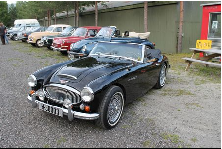 En liten hjulbeint grisefanger med fastmontert ekorn under nesa insisterte på at Mini-treffet i Solbergelva måtte besøkes etter avsluttet arbeid på Burud. Så gjort. På Buskeruds flateste plen fant vi en masse små biler og deres lykkelige eiere. Vi var litt sent ute så vi fikk ikke se alle, men ble av den harde kjerne fortalt at der hadde det vært mange.