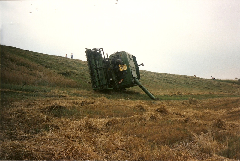 Skurtresker har vi aldri hatt bilde av på denne siden. Merket er John Deere og stedet er Skauer - eller Skoger for de litt finere. Treskeren var kanskje ikke så spennende i seg selv, men for Arve Knutsen som trakterte maskinen i skråbakken så var det nok en tur som ble i overkant spennende. Var lett på foten dengang sier han, og det var sikkert en fordel. Noen ganger skal man ha flaks.....