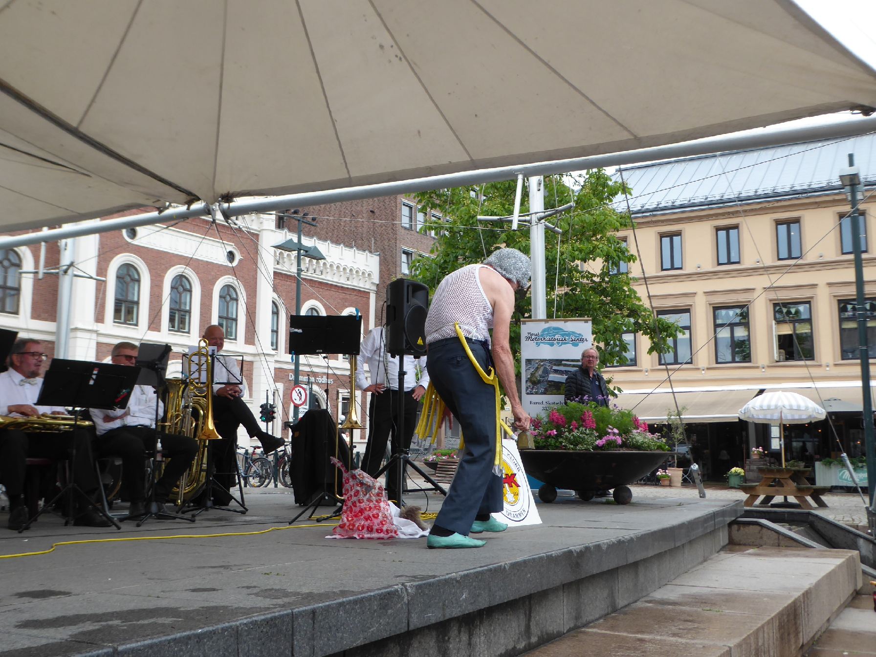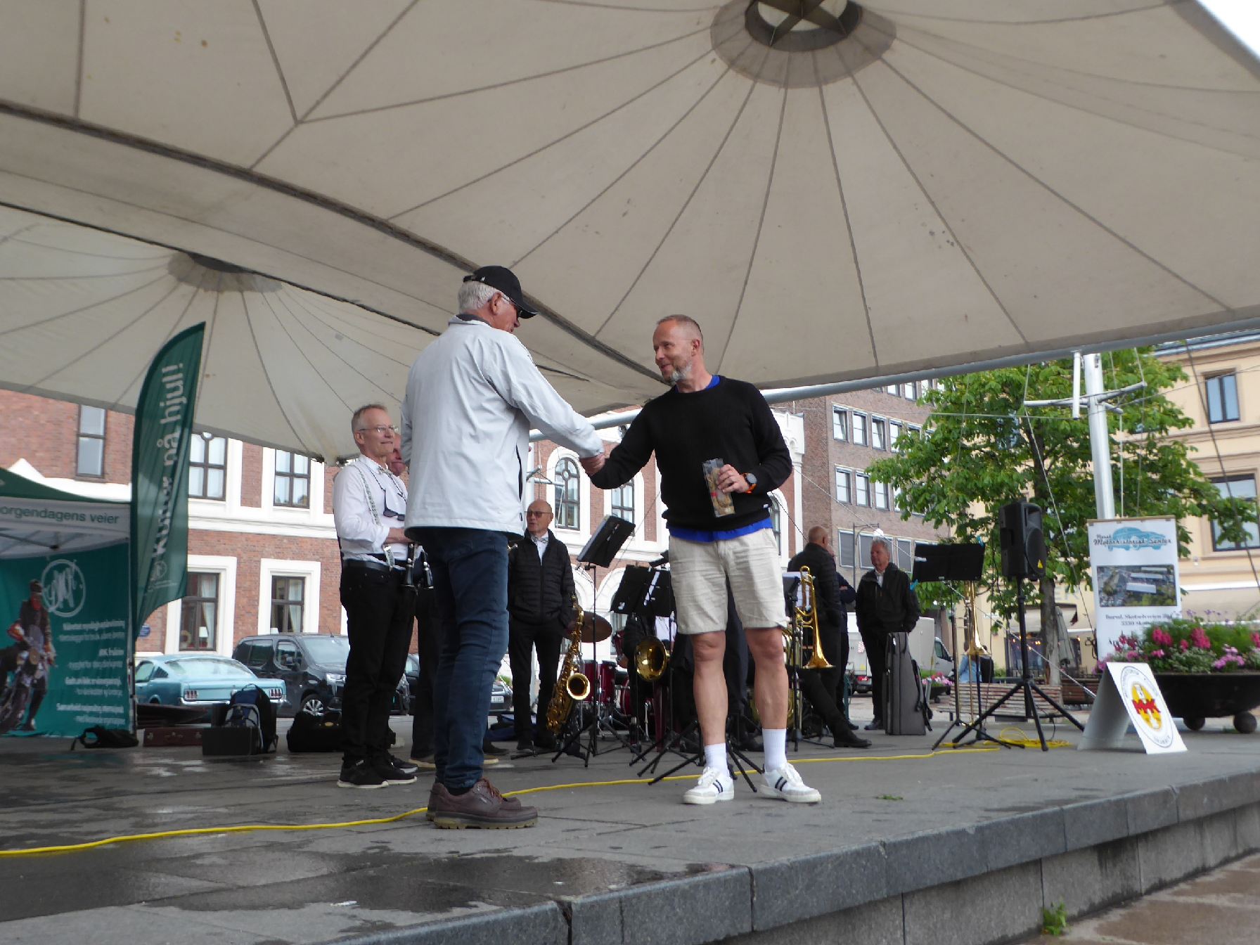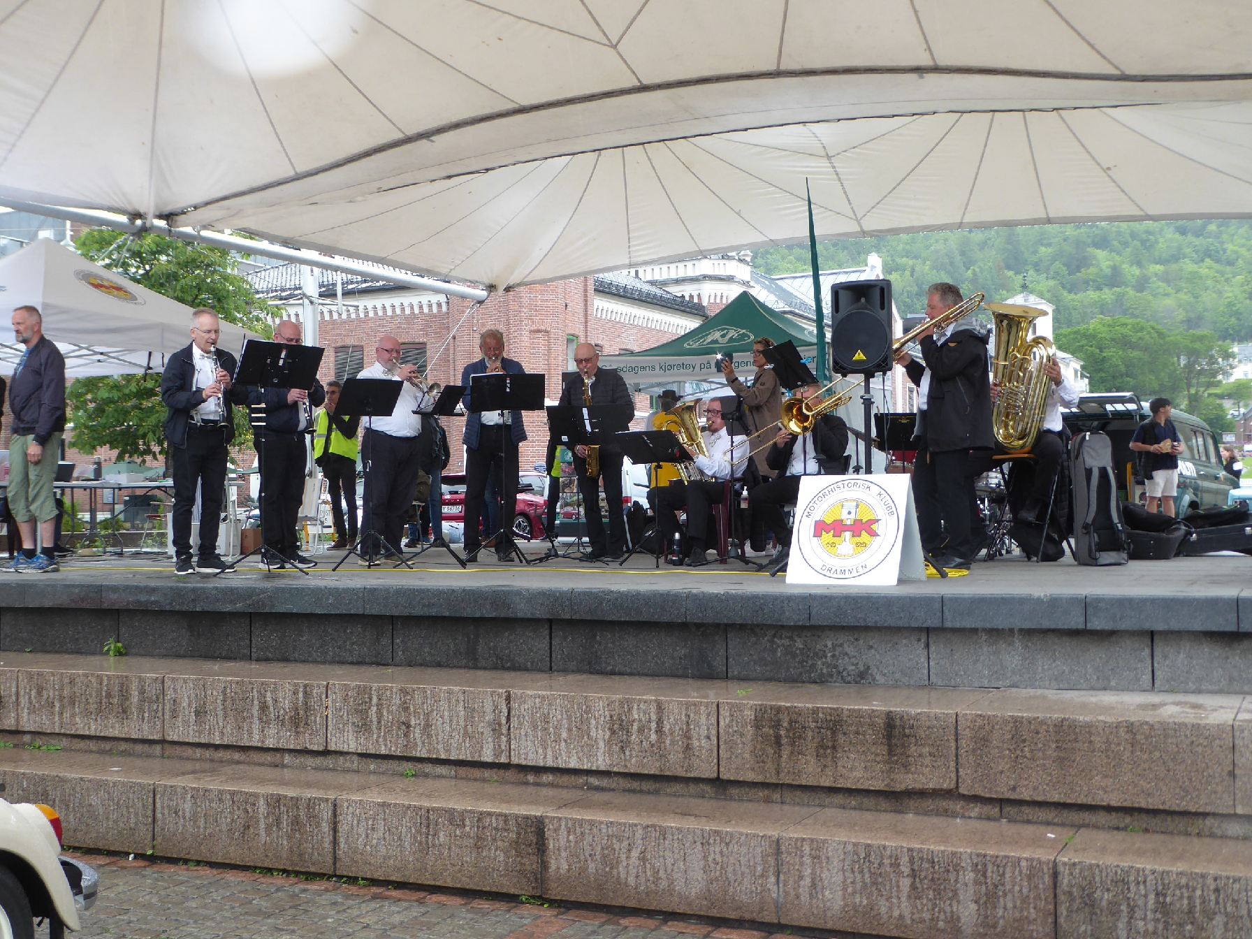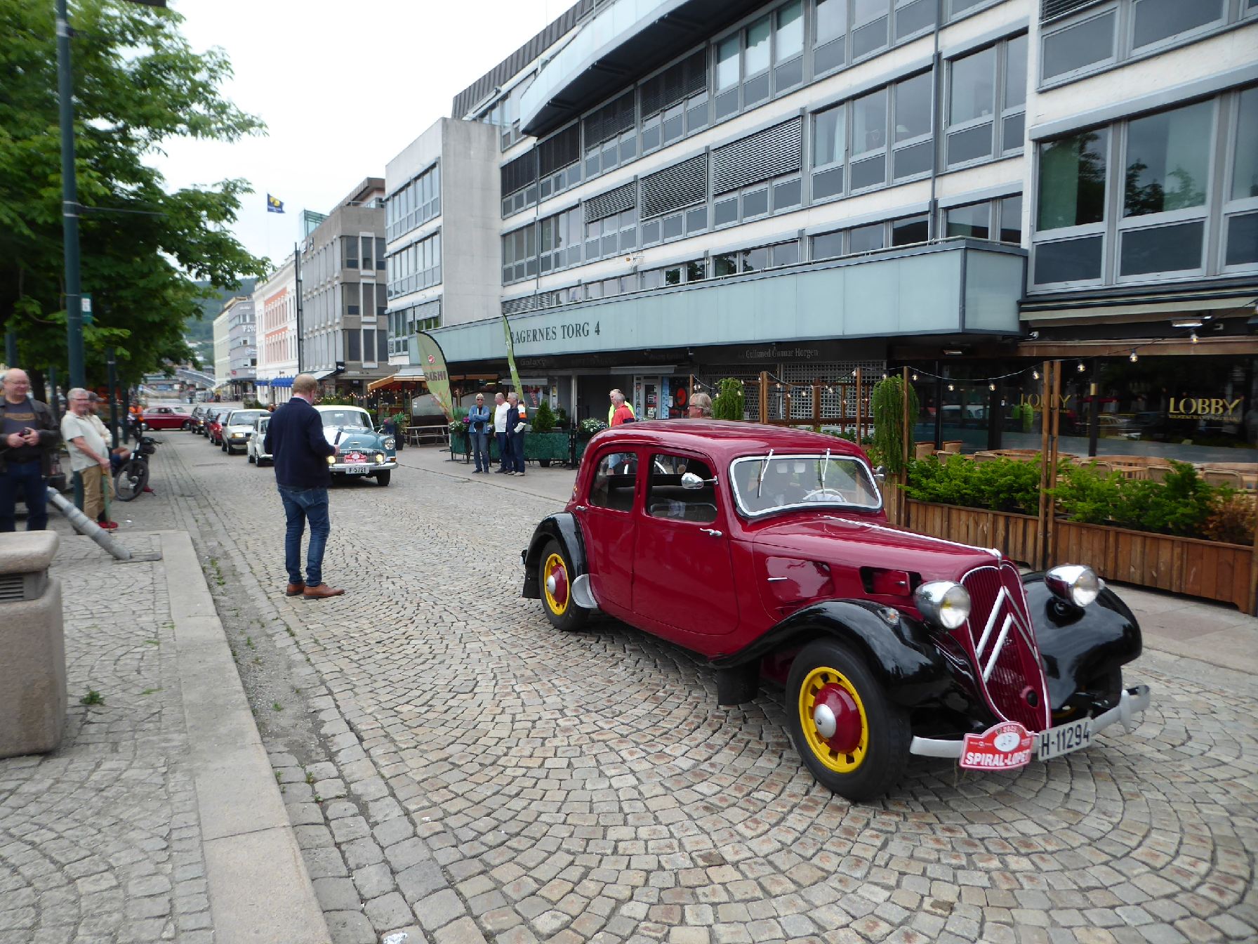 Ved innkomst på torget ble det litt "dekksparking" og erfaringsutveksling mellom deltakerne før Landfaldøens Blæseorkester underholdt fra torgscenen. Et artig og for de fleste, overraskende innslag var Dr. Solbergs foredrag om bilismens innvikning på vår helse, framføring av hylningsdikt til Spiralløpet og avslutningsvis en "dans" til ære for løpet.