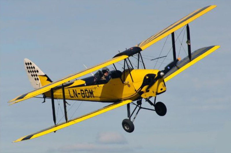 Snorre forklarte at det var en engelsk 1942-modell av merket de Havilland D82A Tiger Moth, en modell som faktisk hadde vært i bruk helt siden første verdenskrig. Flyet ble hentet hjem fra England i 1954 og ble brukt som skolefly og til å trekke opp seilfly med.