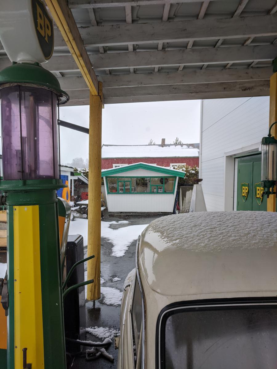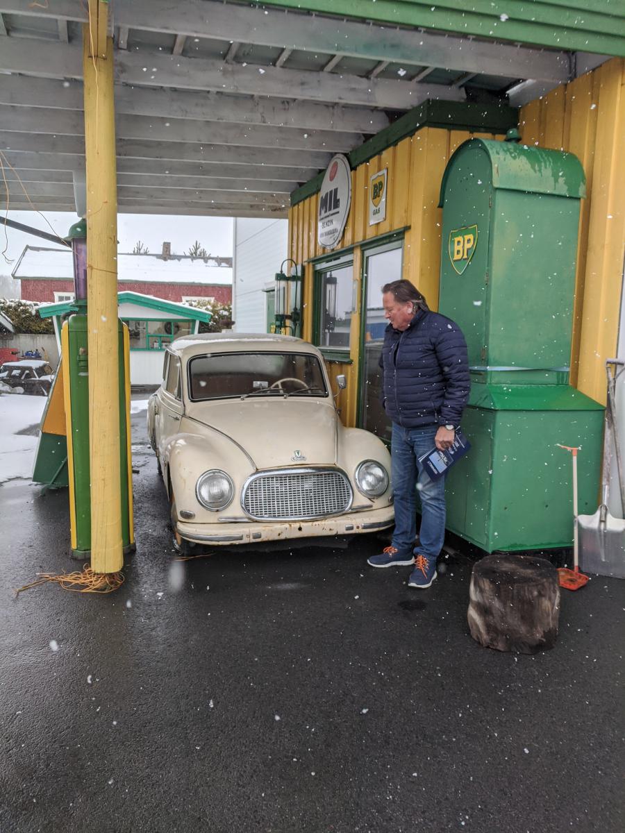 Herrene Horgen og Wang var i det som forhåpetligvis er sesongens siste snøvær ute på en samfunnsgavnlig reise den tolvte april. Vespa-tur-regissør Horgen la inn en ørliten omvei for å besøke Ådalsbruk Motormuseum.