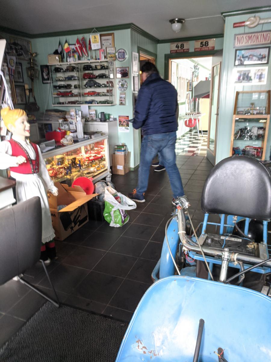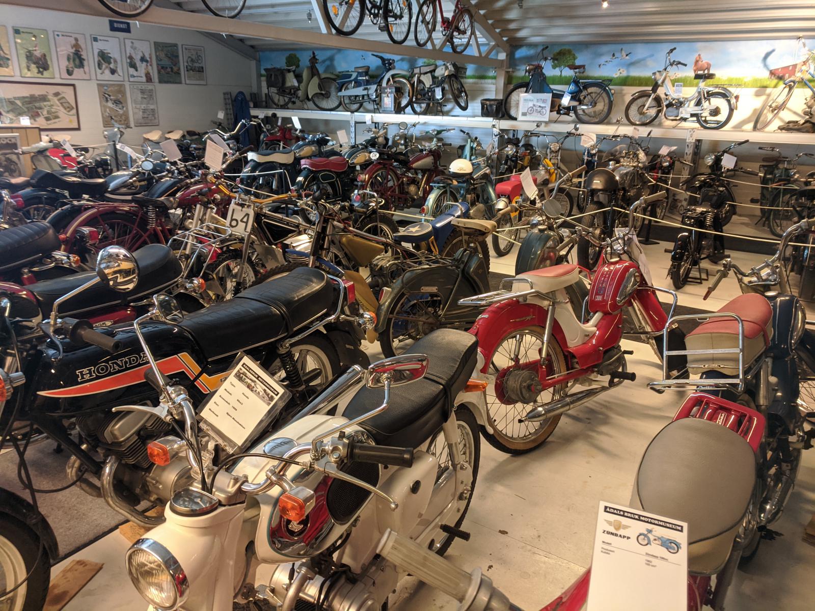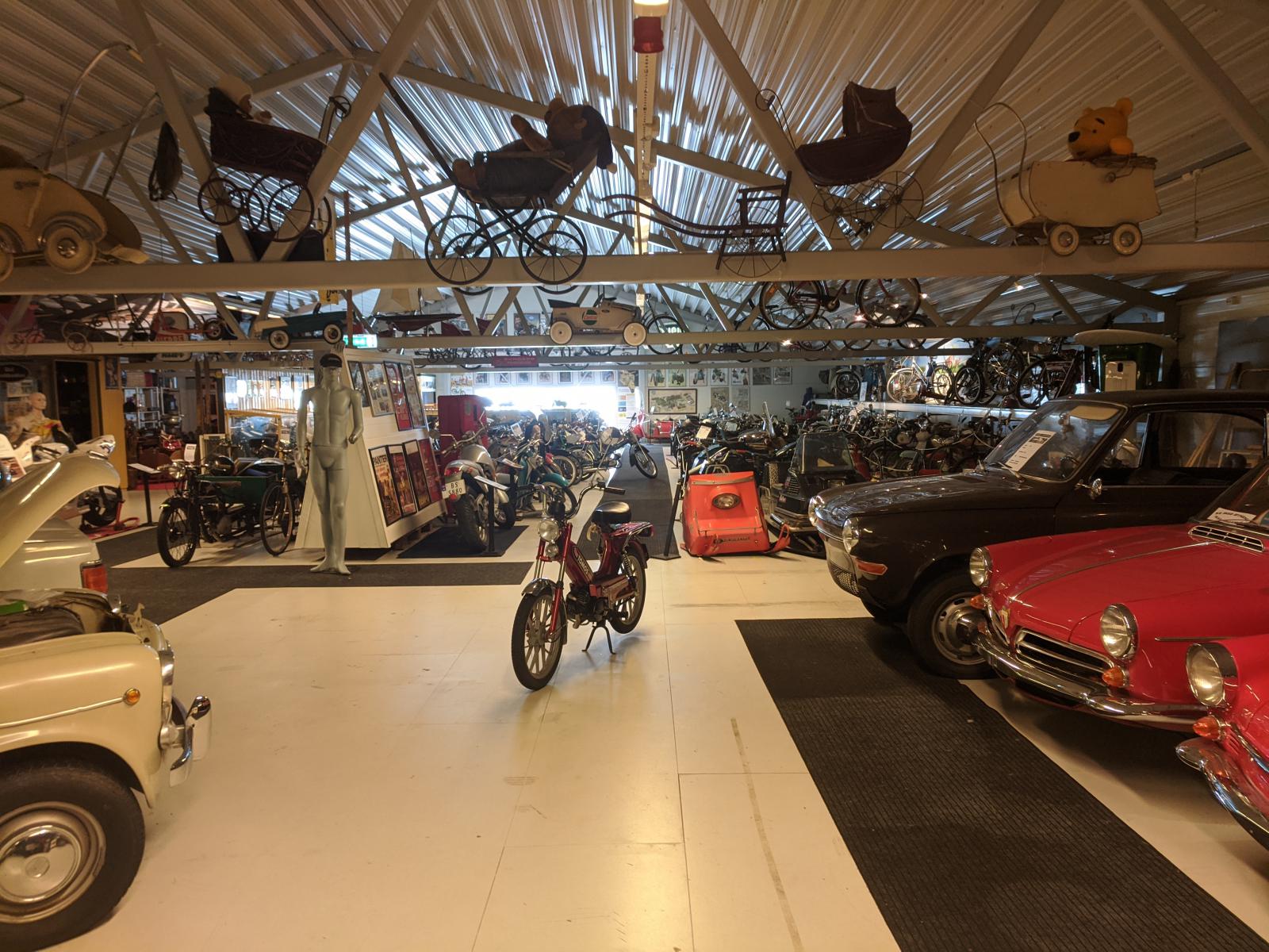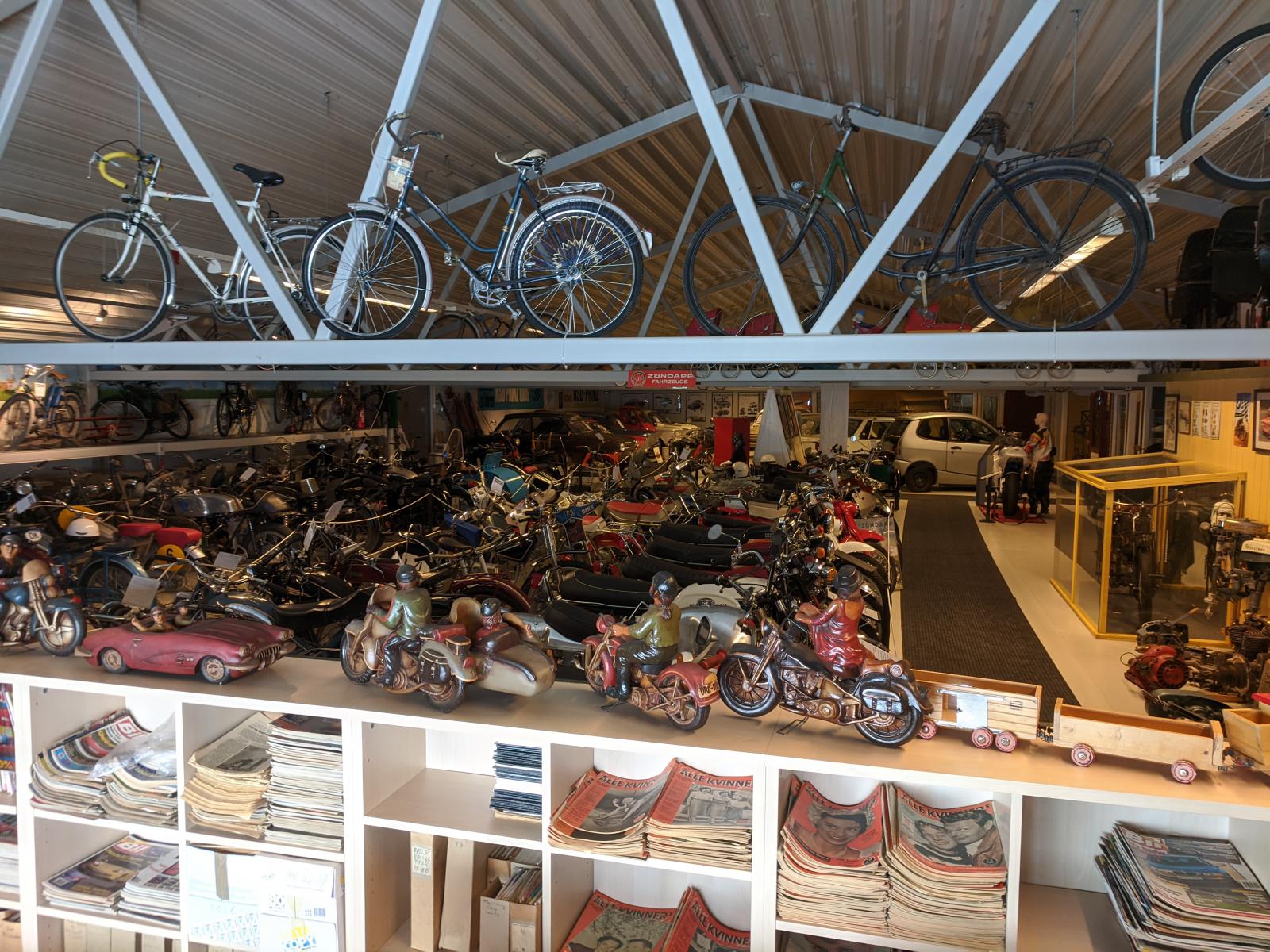 Her finnes et stort antall biler og et enda større antall motorsykler. Her finnes snøscootere, alskens maskiner, tannlegekontor og kafe for å nevne noe. Må heller ikke glemme et legekontor der vårt teatralske medlem Torbjørn Pettersen i Dr. Solbergs skikkelse hadde hatt det som plommen i egget. Her er hundrevis av modellbiler og dokker, telefonsentral, jukebokser, skomakerverksted, motorskole. Bjørn har en enorm samling NSU'er - både biler og motorsykler, han har VW K70 kabriolet og en 1939 Ford V8 som har gått så langt som fem hundre mil.