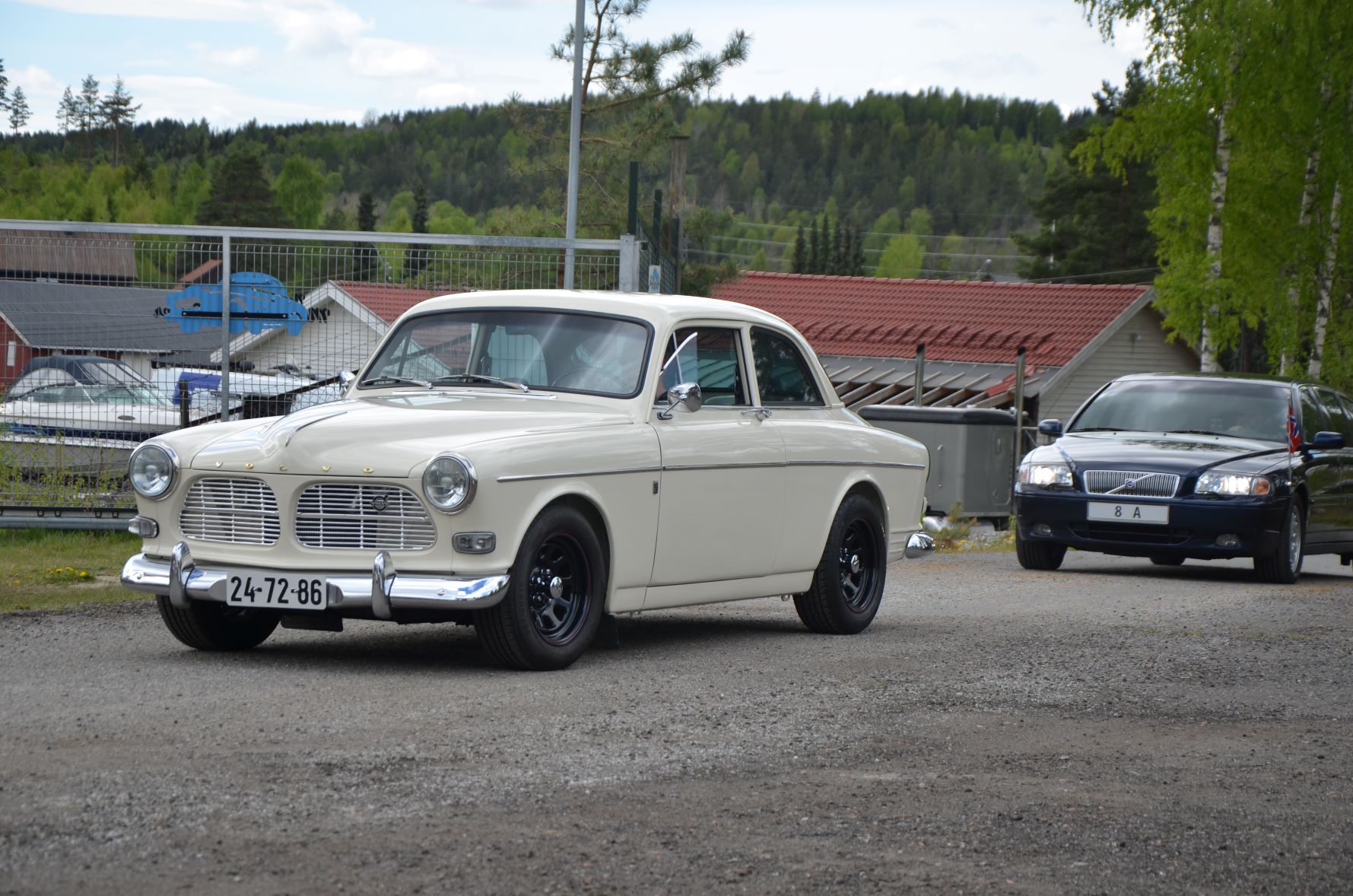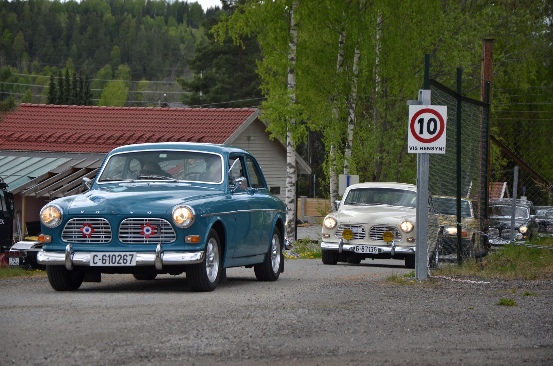 På søndag 15. mai ble det en formiddag med mange eldre svensker på besøk. I tolvtiden rullet det inn en hel rekke med klassiske Volvo Amazon. Her var det mange biler som tilsynelatende var holdt helt i original stand, men også noen med litt godbrom. En herlig blanding av legendariske herregårdsvogner og personbiler. Noen biler kjente jeg igjen fra Burudonsdagene, men også biler som for meg virket ukjente. Hyggelig at også biler vi ikke tidligere har sett på Burud hadde tatt turen. Vi ønsker selvfølgelig alle sammen hjertelig velkomne tilbake.